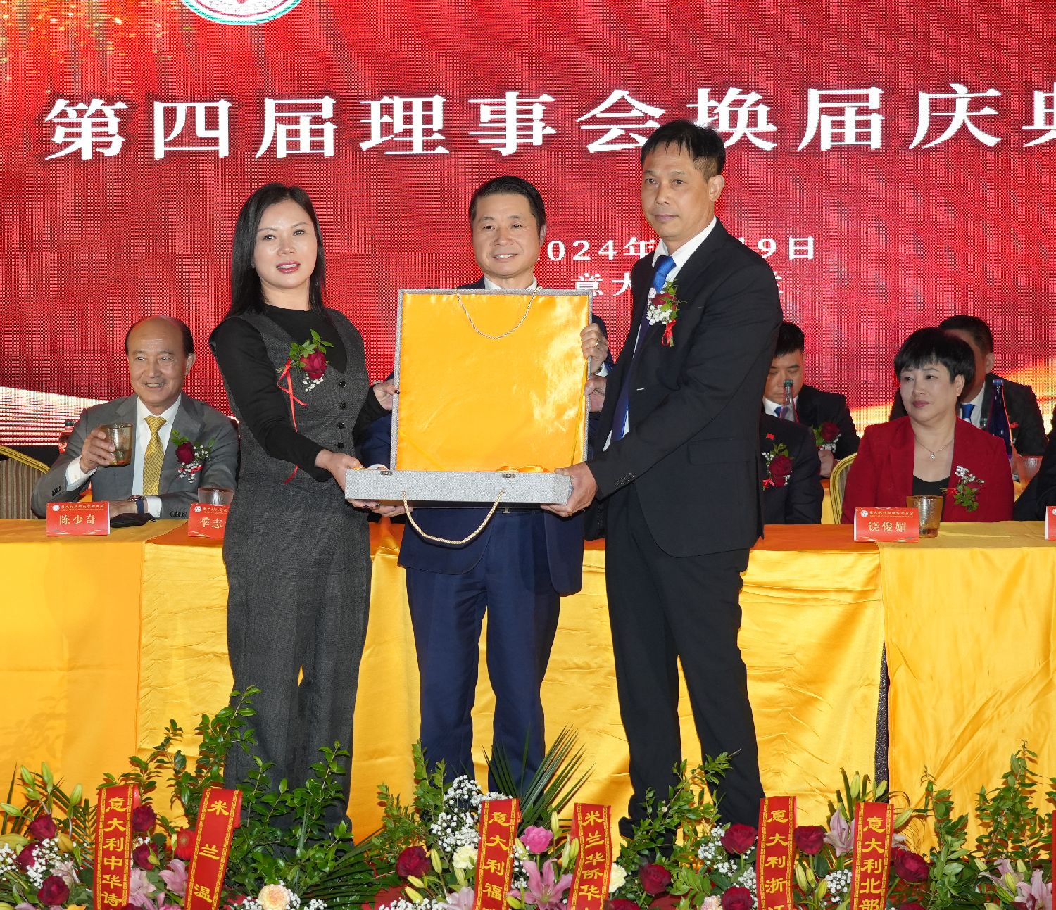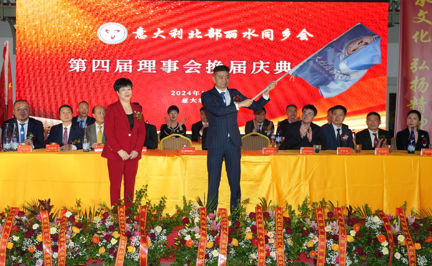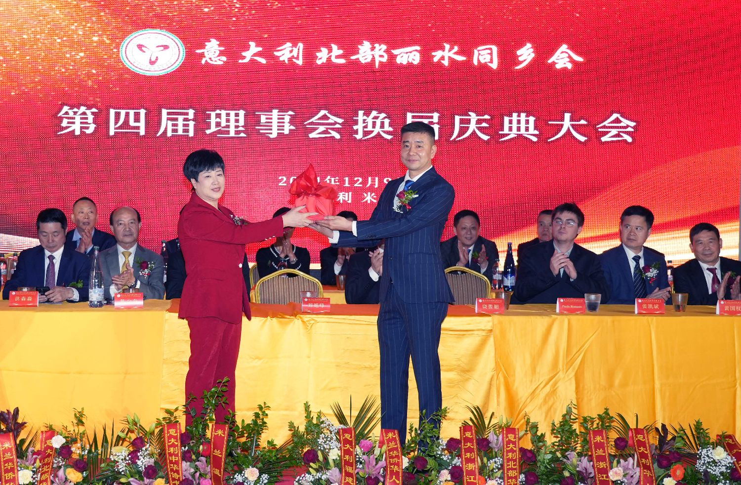 大会进入最后议程:第四届理事会核心成员走上主席台,按下了启动第四届理事会新征程的按钮,标志着意大利北部丽水同乡会进入了一个崭新的历史时期……