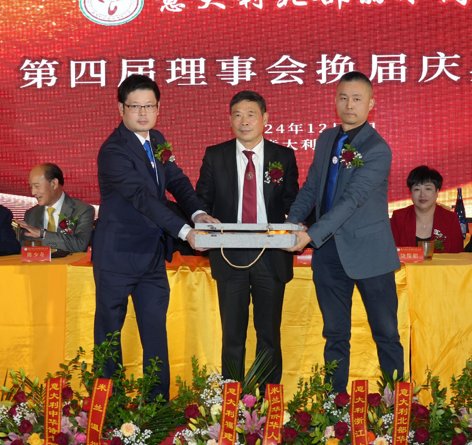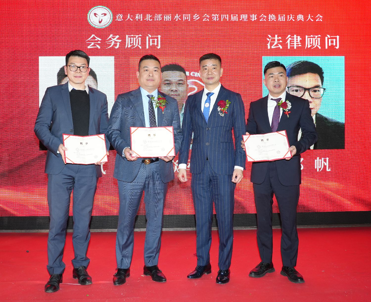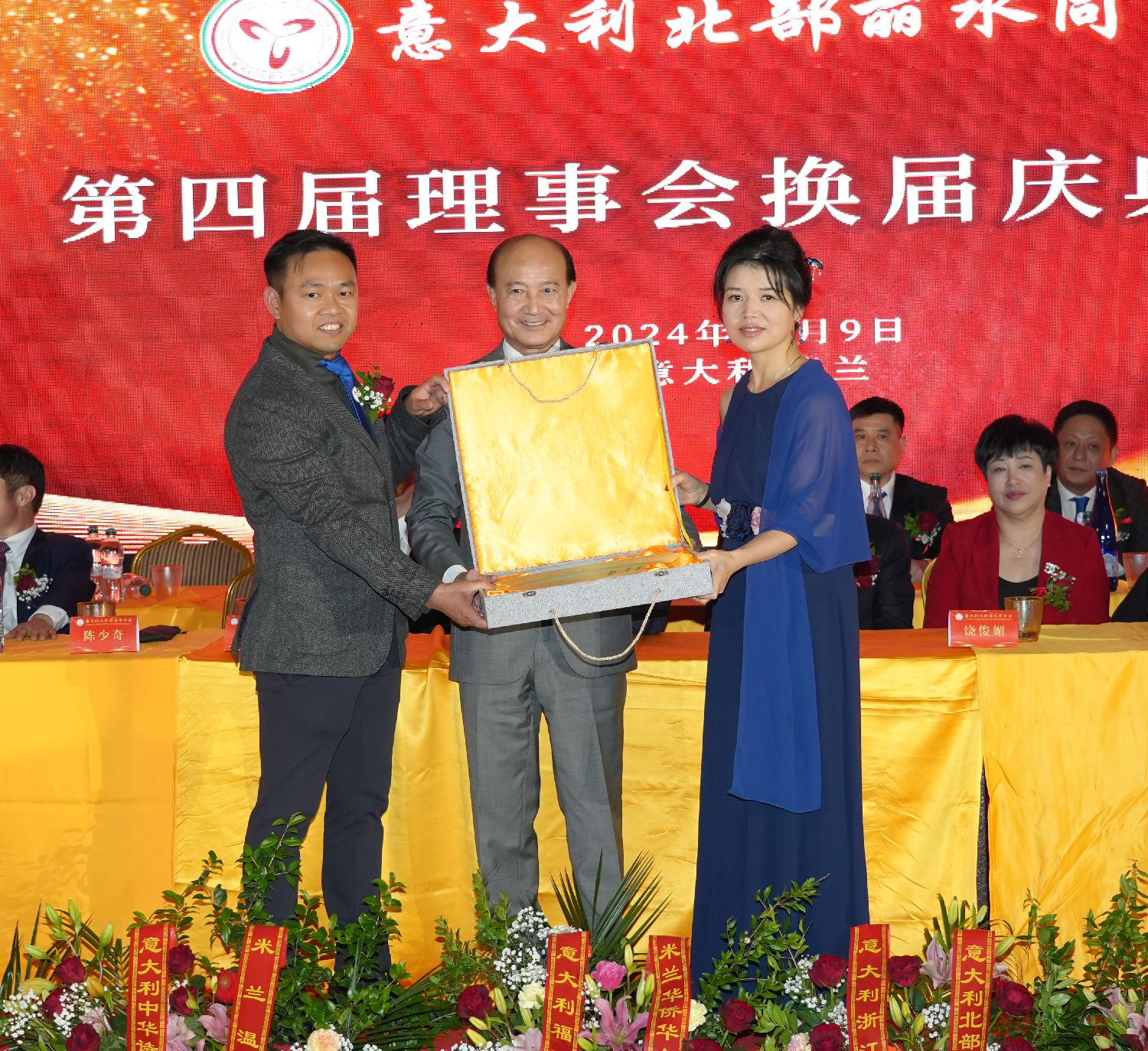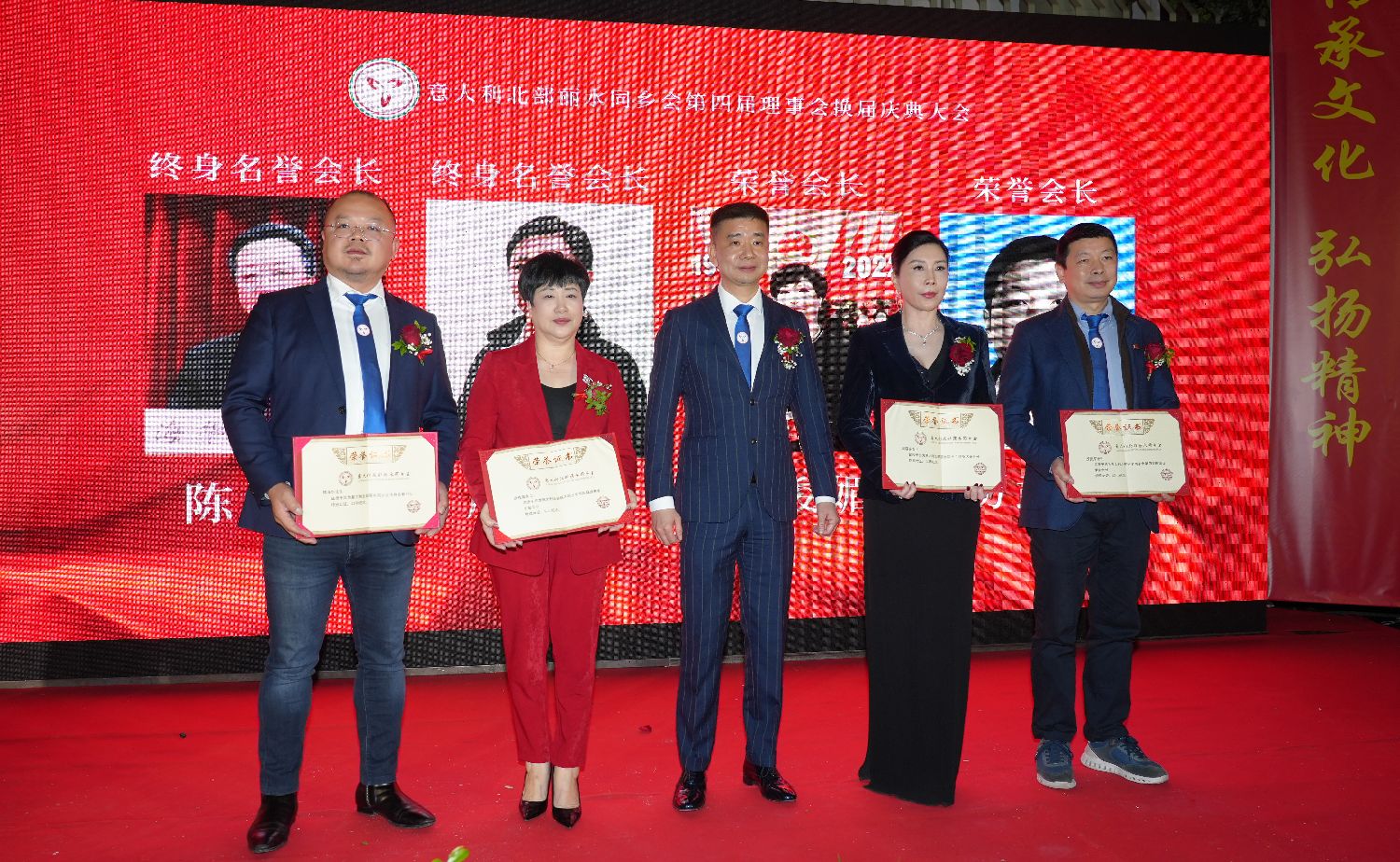 大会进入最后议程:第四届理事会核心成员走上主席台,按下了启动第四届理事会新征程的按钮,标志着意大利北部丽水同乡会进入了一个崭新的历史时期……