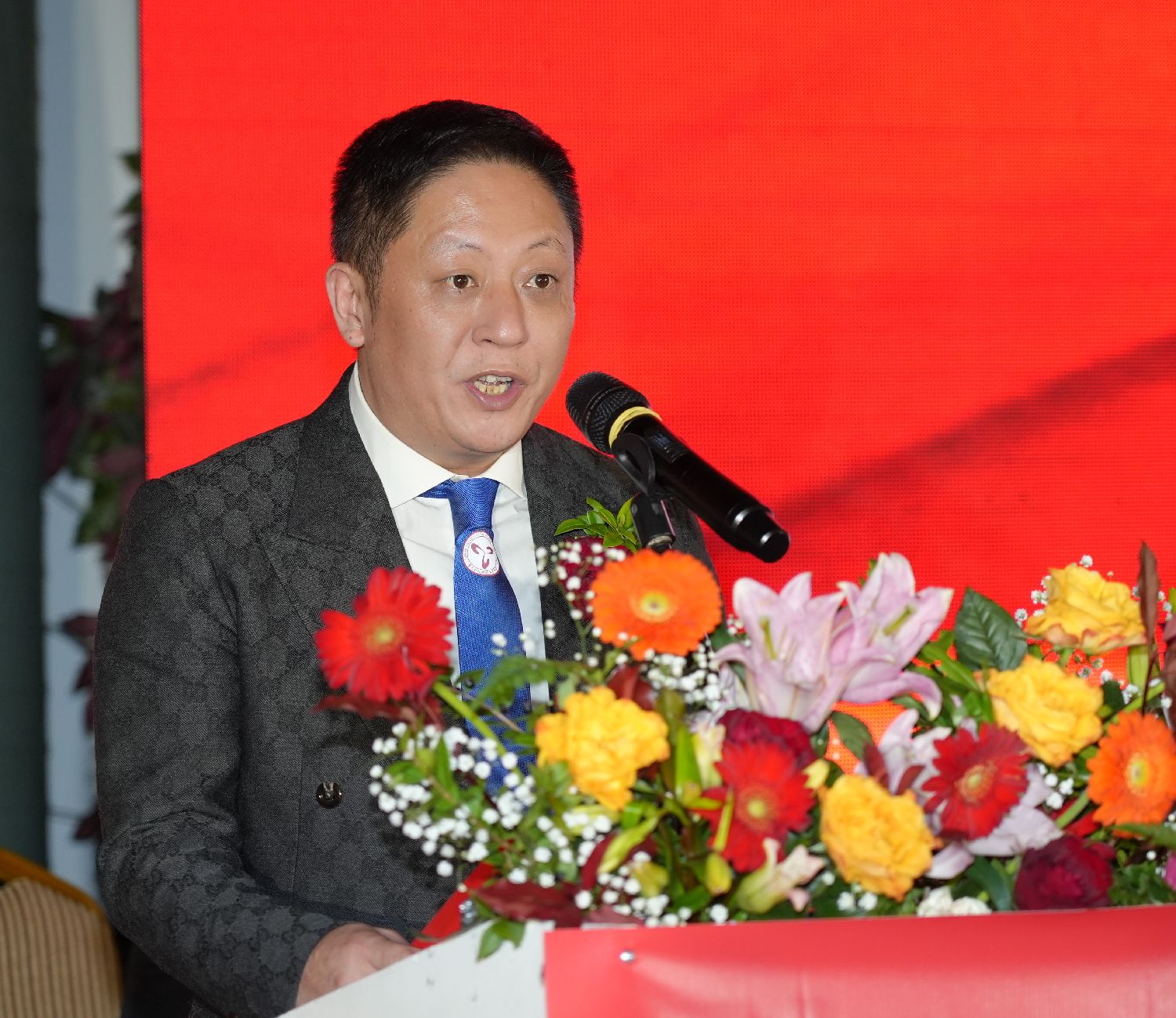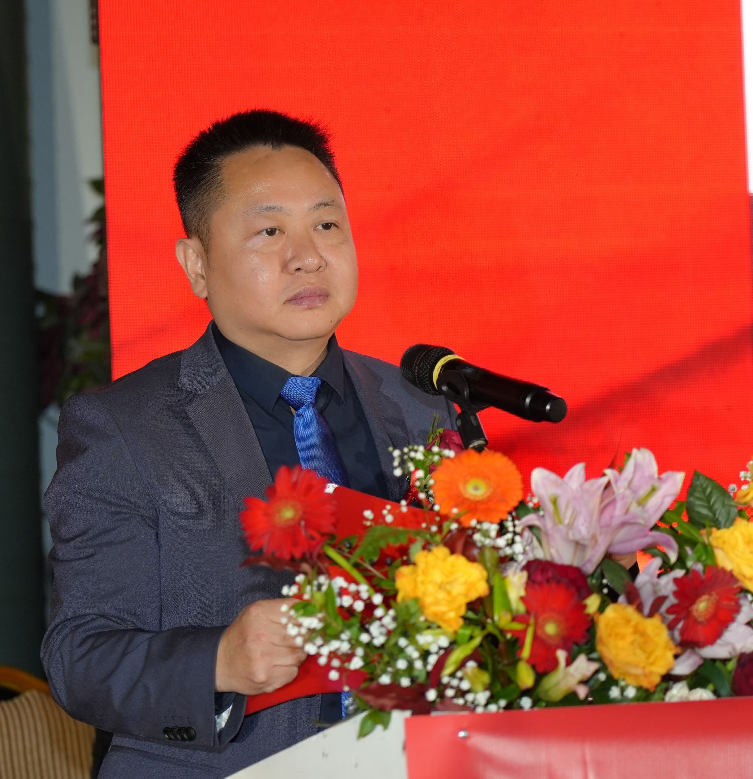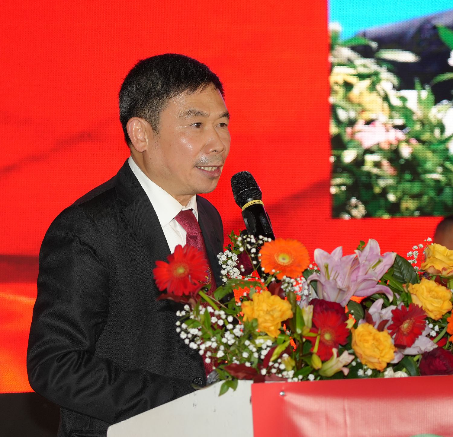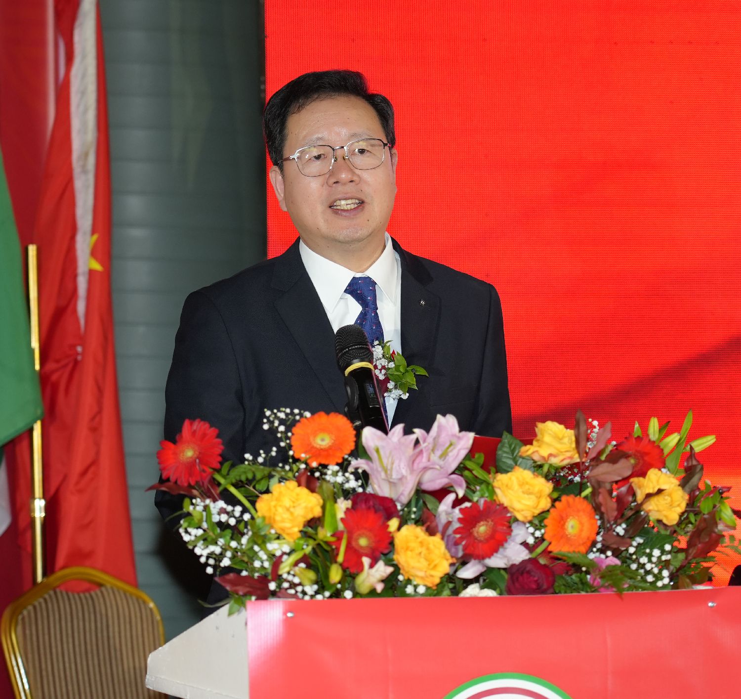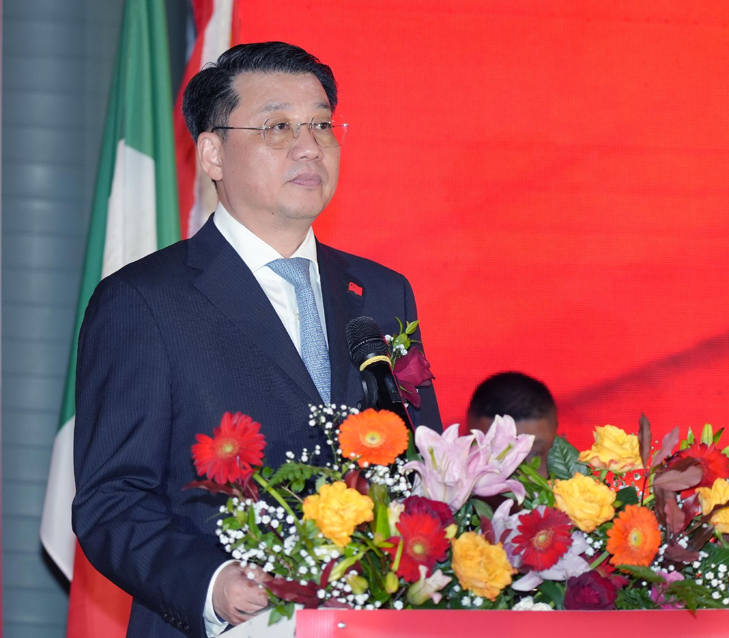 首席执行会长卢汉军宣布庆典大会开幕。会场奏响中意两国国歌。