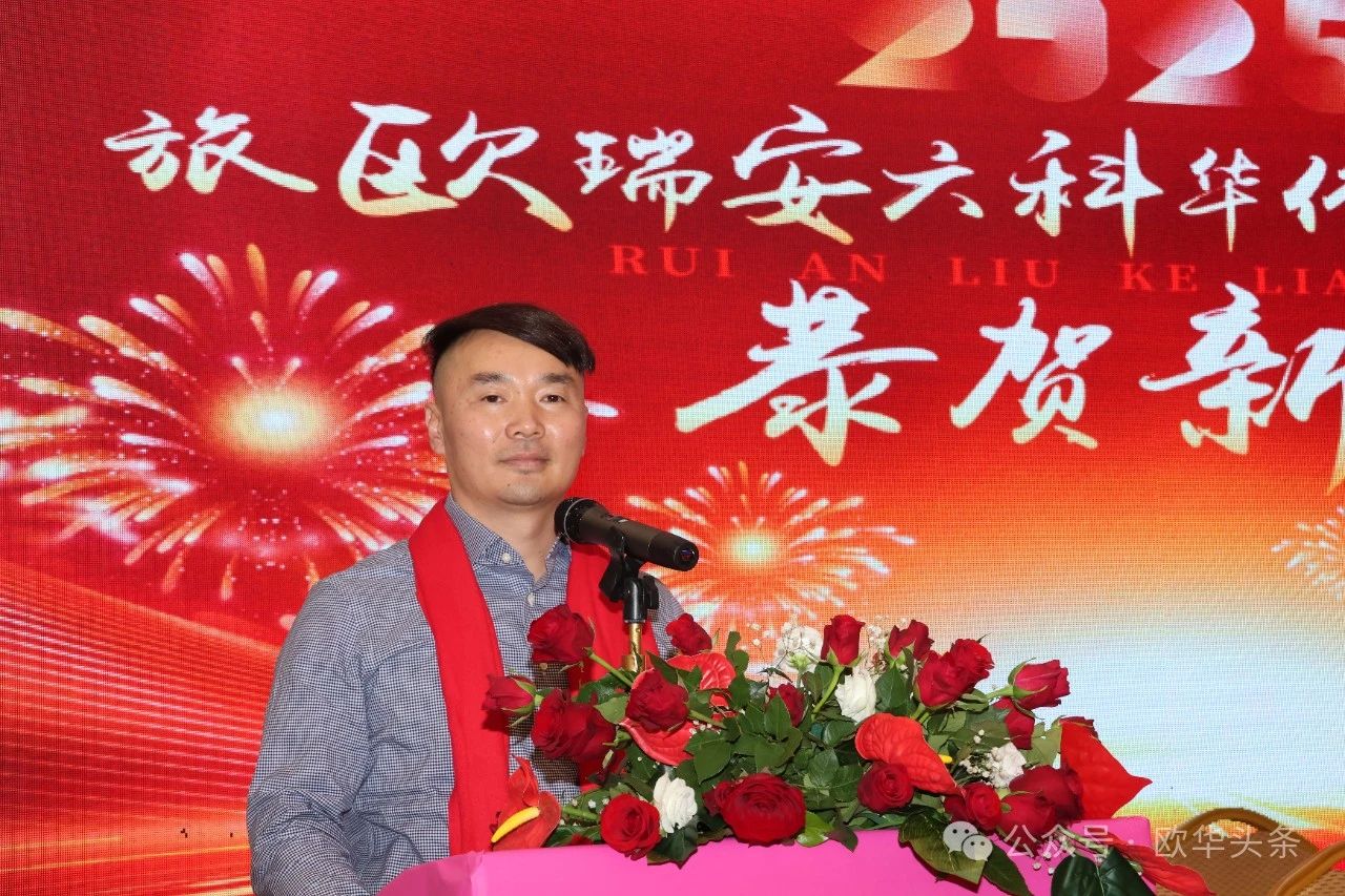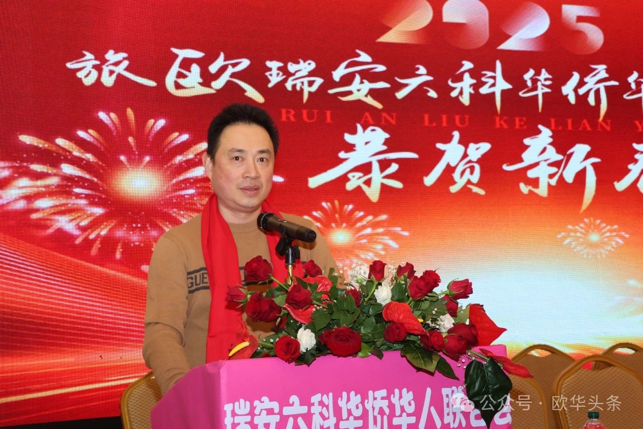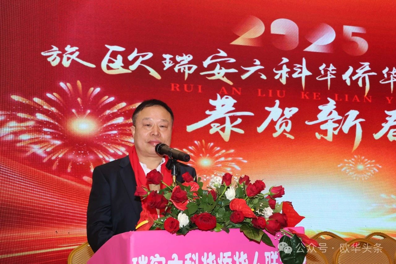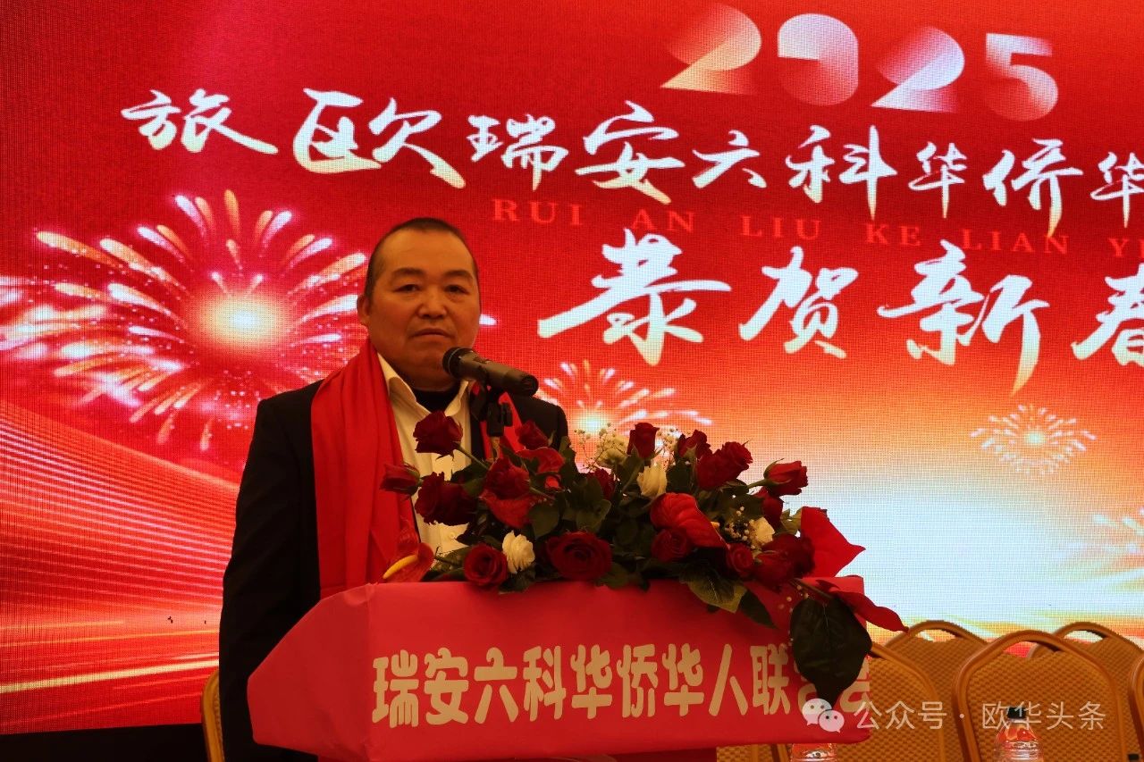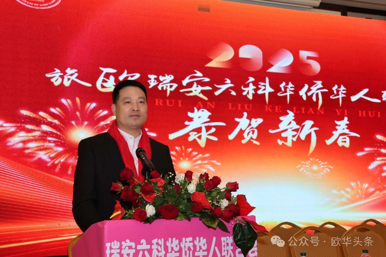 卢华荣会长表示,新一届团队将不负众望,肩负起新的使命,在传承中创新,进一步凝聚乡情,增进友谊,加强与意大利及欧洲各侨团的合作与交流,支持青年一代的成长,发扬瑞安六科的优秀传统,继续关心和支持家乡建设。他呼吁全体乡亲齐心协力,在新一届团队的带领下,让六科华侨华人联谊会在异国他乡继续发扬光大,为乡亲谋福祉,为中意友谊和中欧文化交流贡献更多力量。卢华荣会长的话语情真意切,引发全场热烈的掌声。