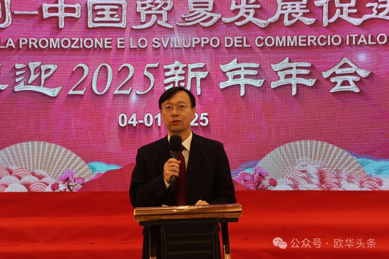 致辞最后,王增理主席向所有与会者致以新年的美好祝福,期望大家在新的一年里取得更大的成就,共同推动中意友谊与合作迈上新的台阶。他的致辞赢得了现场热烈的掌声,为整场年会增添了浓厚的节日氛围。