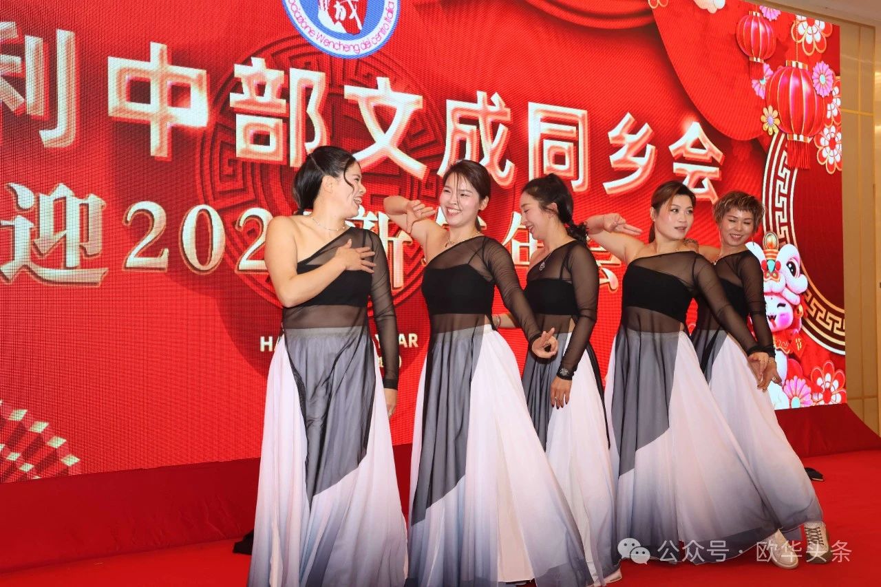 当晚,文成籍侨胞们自发组织了一场自编自导自演的文艺演出,真挚动人的歌舞表演深深打动了在场的每一个人。随后,多位嘉宾倾情献唱,将现场氛围推向高潮,整个年会充满了温情与喜悦,成为一段值得珍藏的美好回忆。