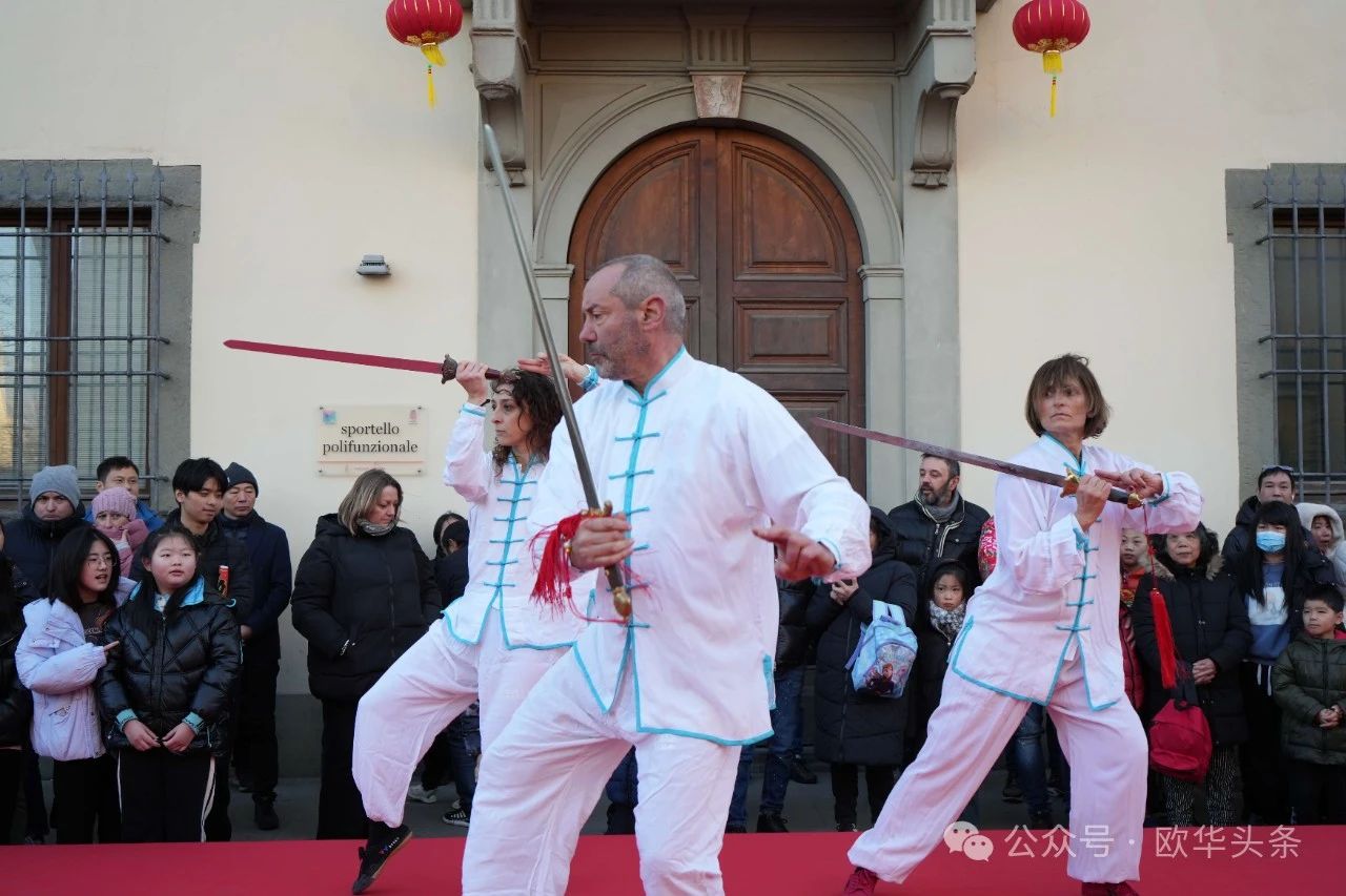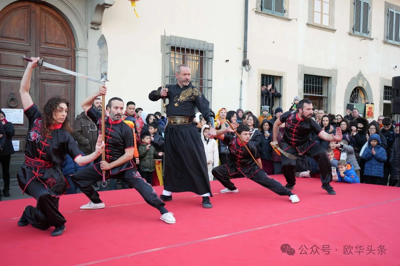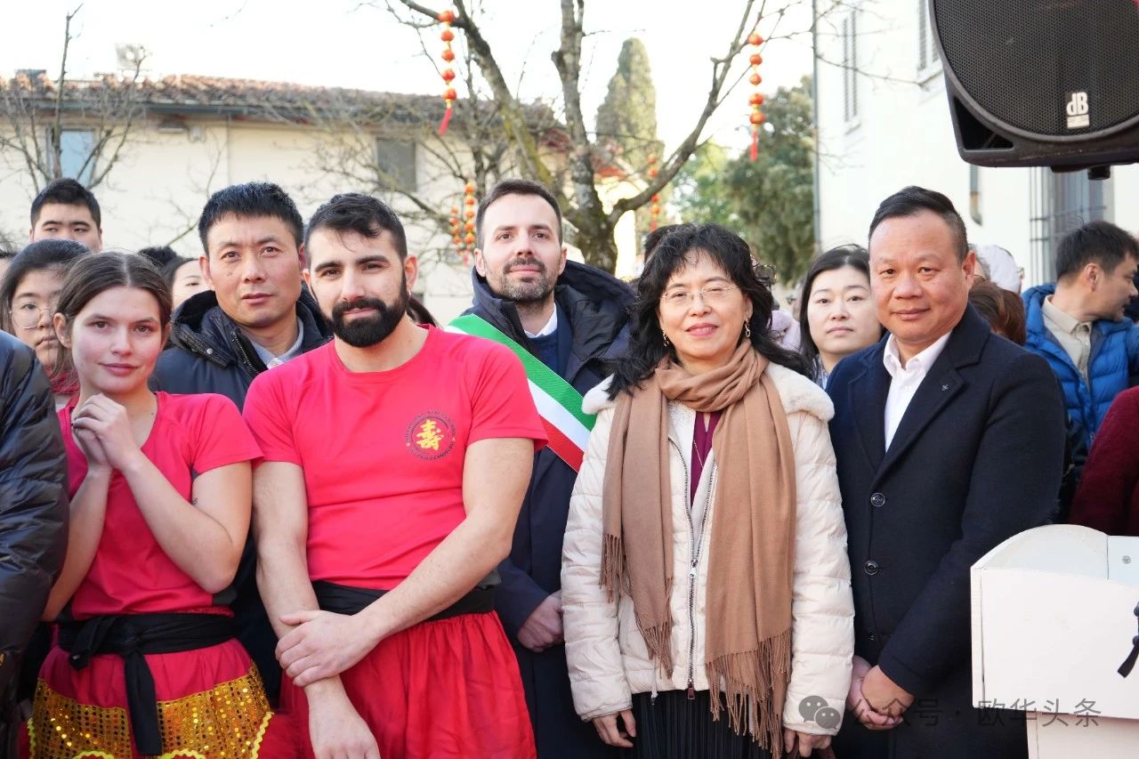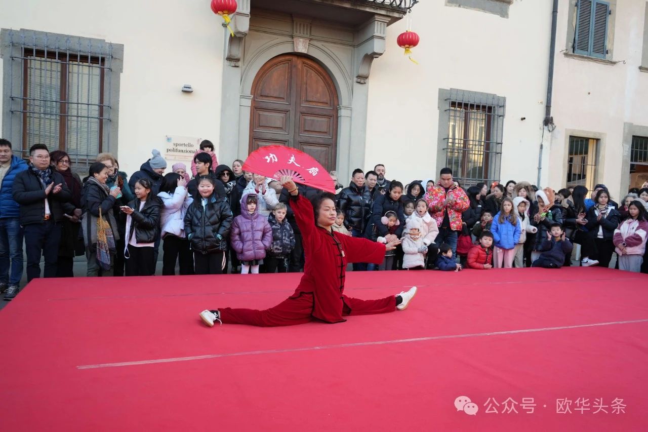 冈比市市长Andrea Tagliaferri、中国驻佛罗伦萨总领事尹琦等嘉宾百忙之中亲临现场,一同欣赏了极具中华传统特色的文艺表演。舞龙舞狮气势磅礴,象征着祥瑞降临;传统功夫刚柔并济,展现了中华武术的深厚底蕴;舞蹈、太极拳、太极扇、古筝演奏、腰鼓舞等节目轮番上演,赢得了观众的热烈掌声。特别是佛罗伦萨华人华侨商贸联谊会育才语言学校的学生们倾情演绎的节目,更是为现场增添了青春活力和喜庆氛围,展现了华裔新生代对中华文化的热爱与传承。