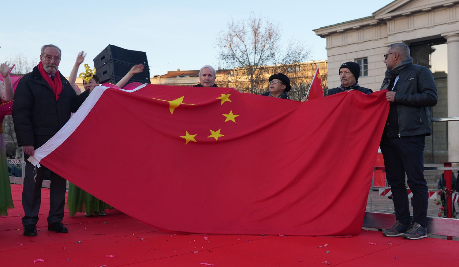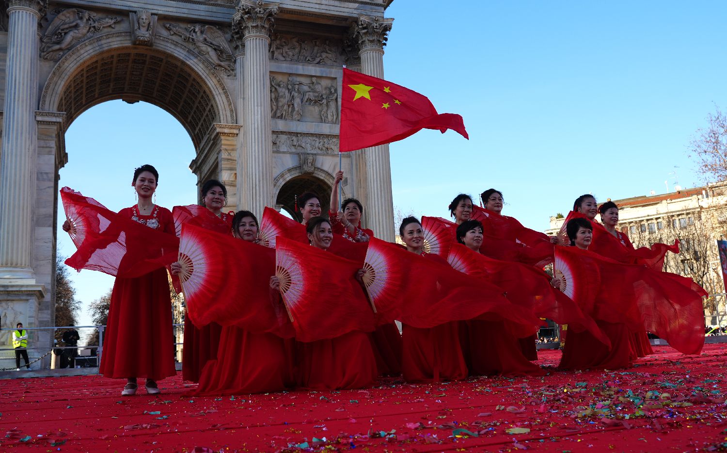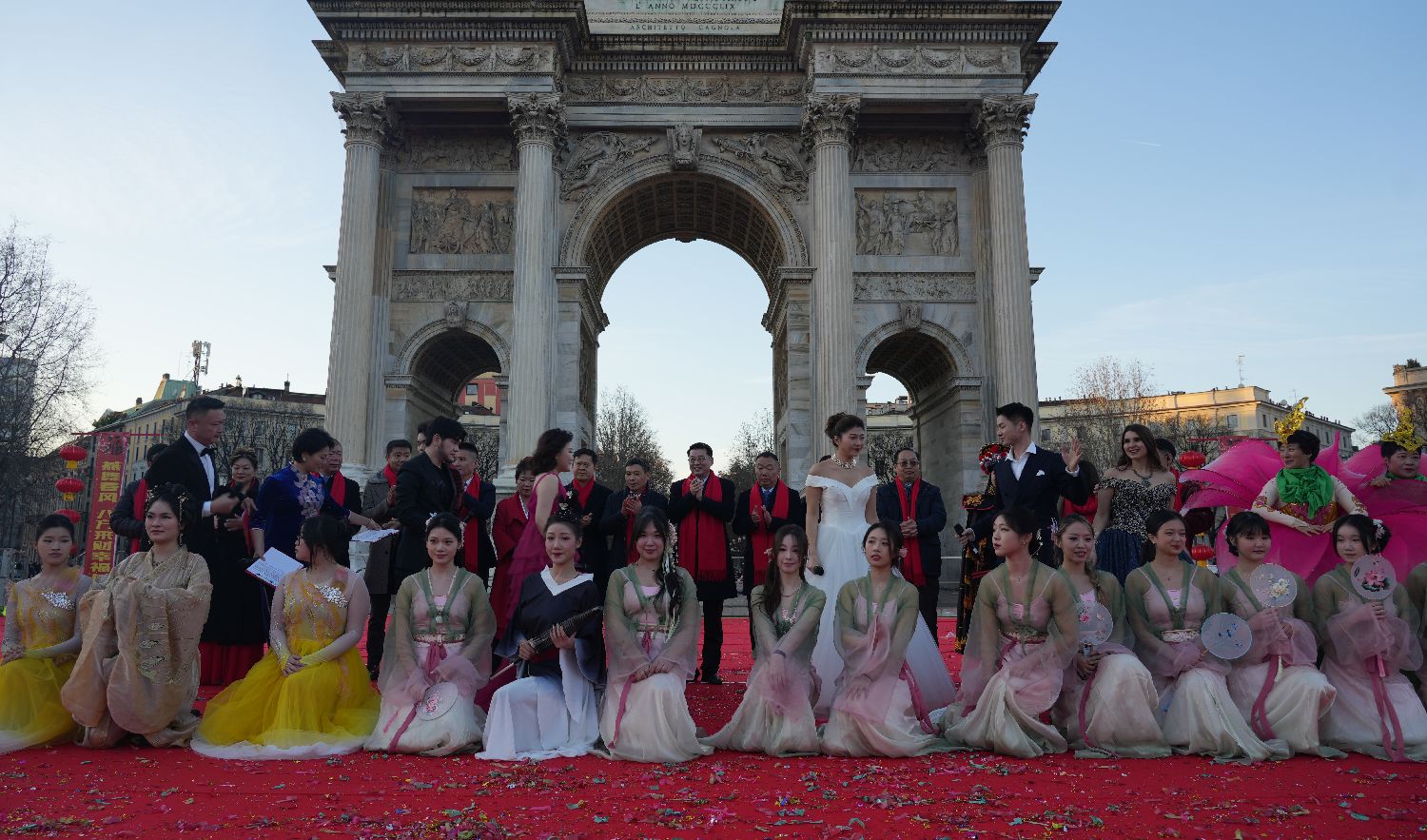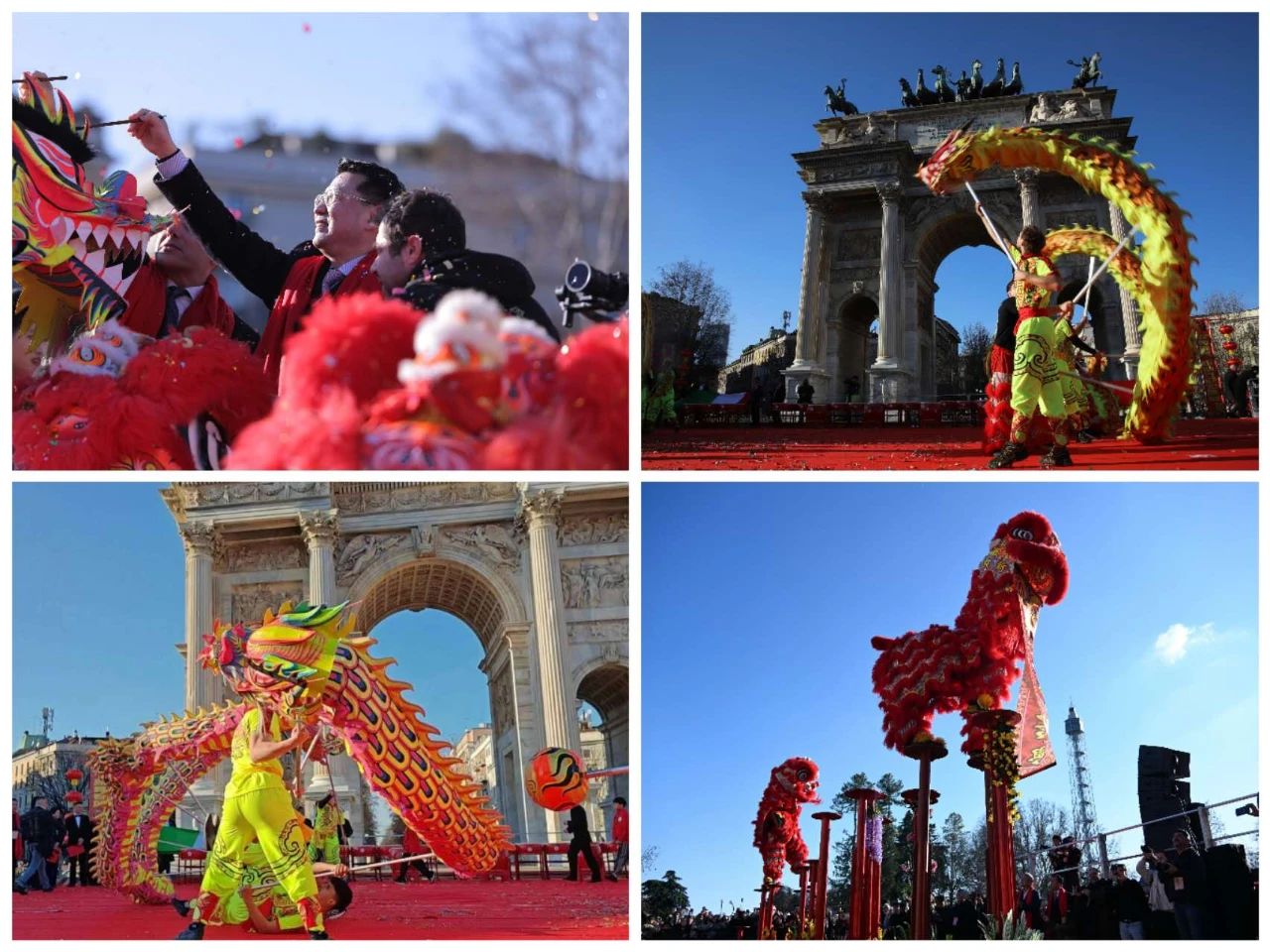2025年2月2日下午,农历蛇年大年初五,这天是迎财神的日子。一扫连日的阴雨,米兰的天空格外晴朗,阳光明媚。在“和平门”广场上,一场盛大的活动——“米兰华埠2025‘喜迎新春、舞龙舞狮’大联欢”在此隆重举行。
