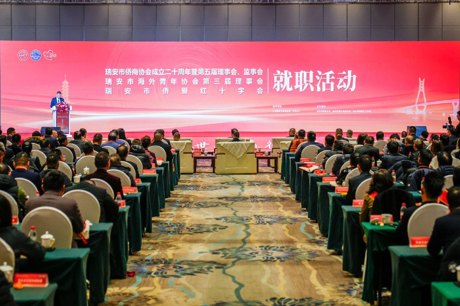 2月6日下午,瑞安市侨商协会第五届会员代表大会、瑞安市海外青年协会第三届会员代表大会、瑞安市侨爱红十字会工作会议及就职活动圆满落幕,浙江省委统战部二级巡视员杨金坤、中国华侨出版社综合编辑室主任姜军,温州市委统战部副部长周燕伟,温州市侨联党组成员、副主席陈瑜,瑞安市市领导李坚、秦肖、应希克、施巨耀、徐龙升等参加活动。300余位来自世界各地的瑞安籍侨界精英齐聚一堂,畅叙友谊乡情,共谋家乡发展大计。意大利瑞安商会在此次活动中表现突出,荣获瑞安市“侨爱奉献奖”团体奖,首席执行会长赵焕青荣获个人奖,成为全场瞩目的焦点。