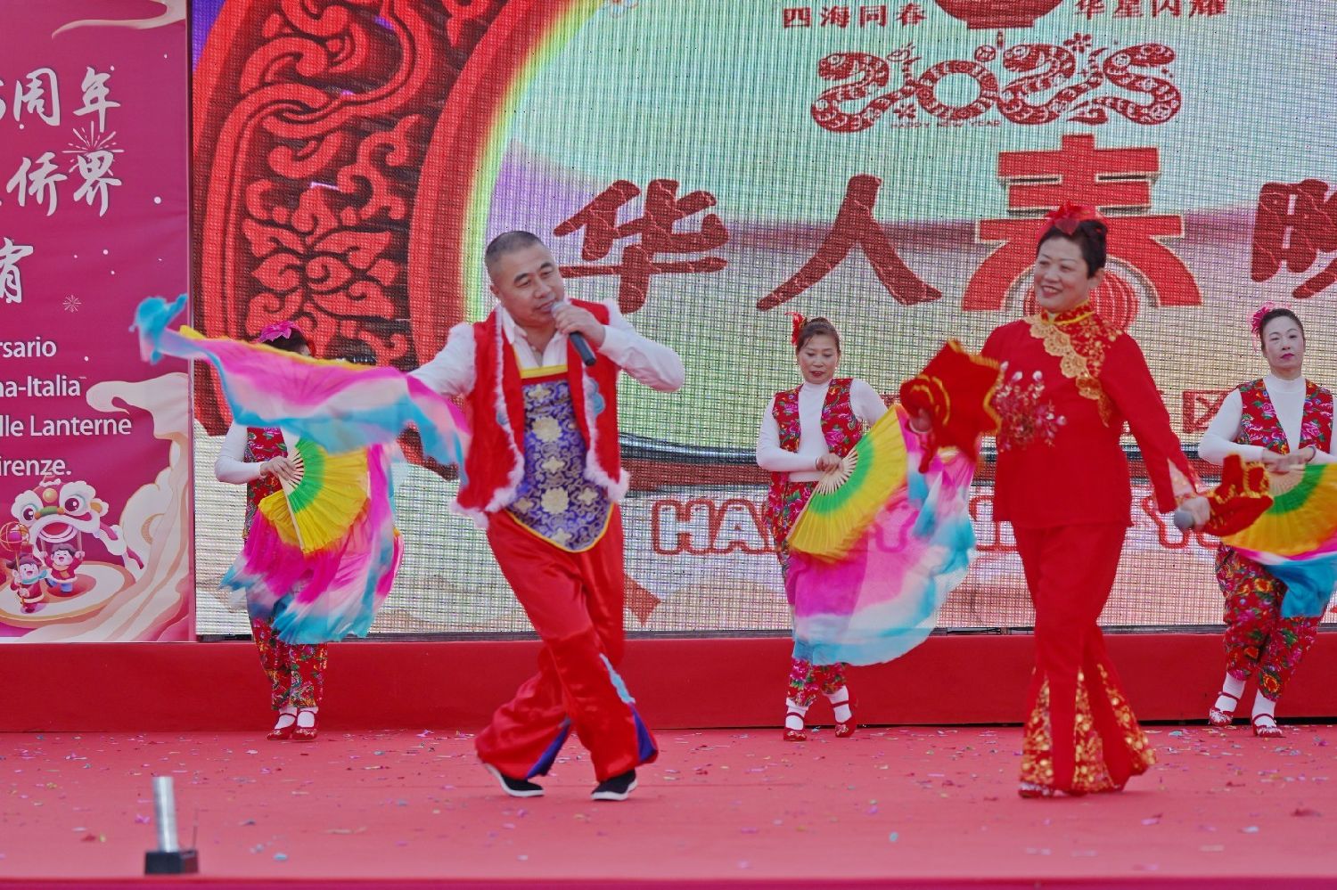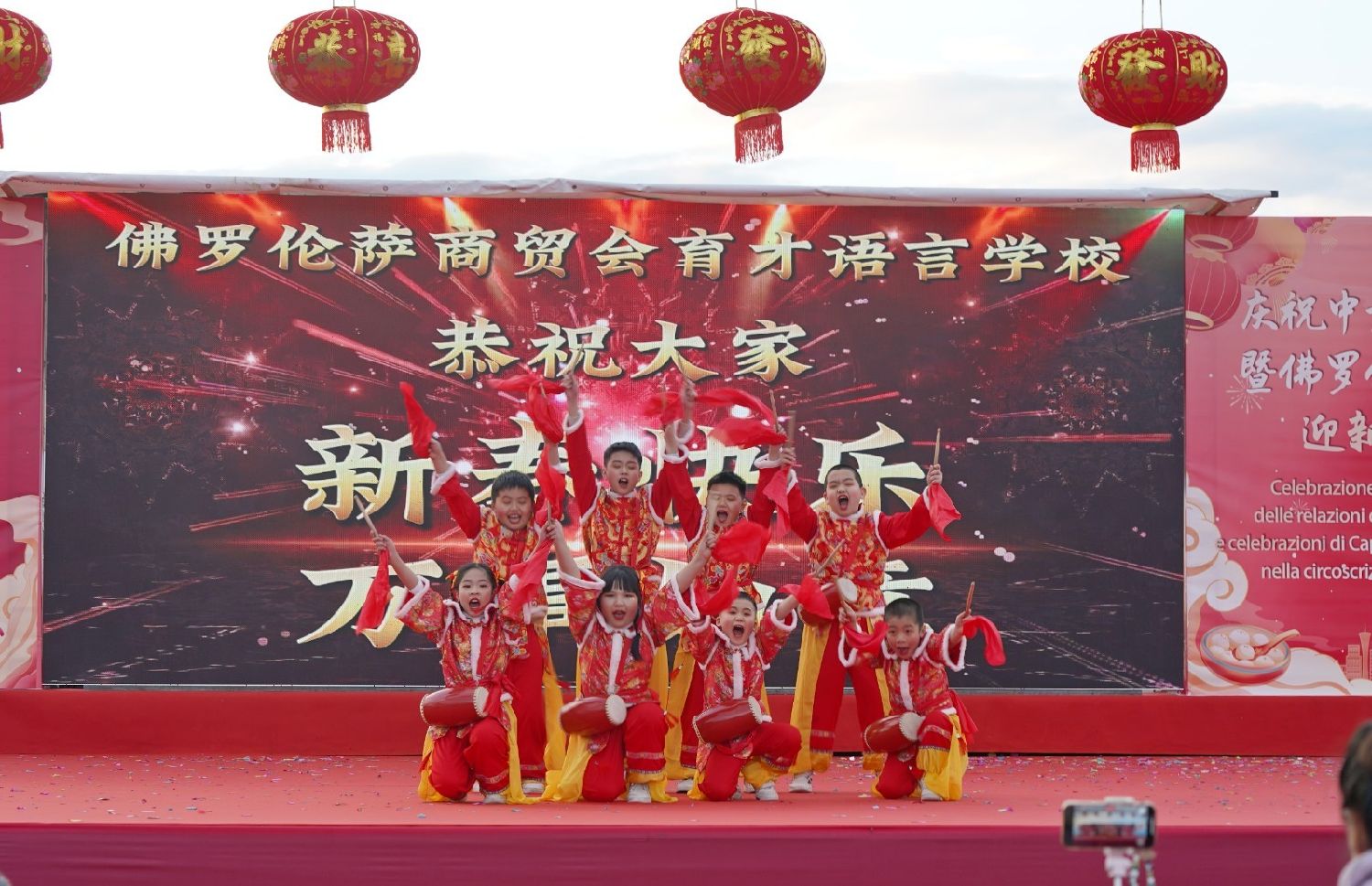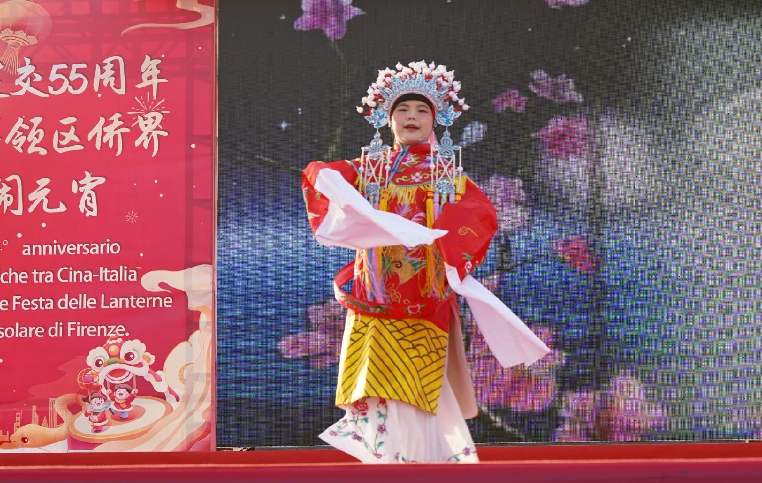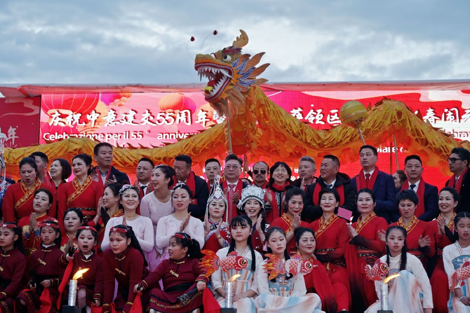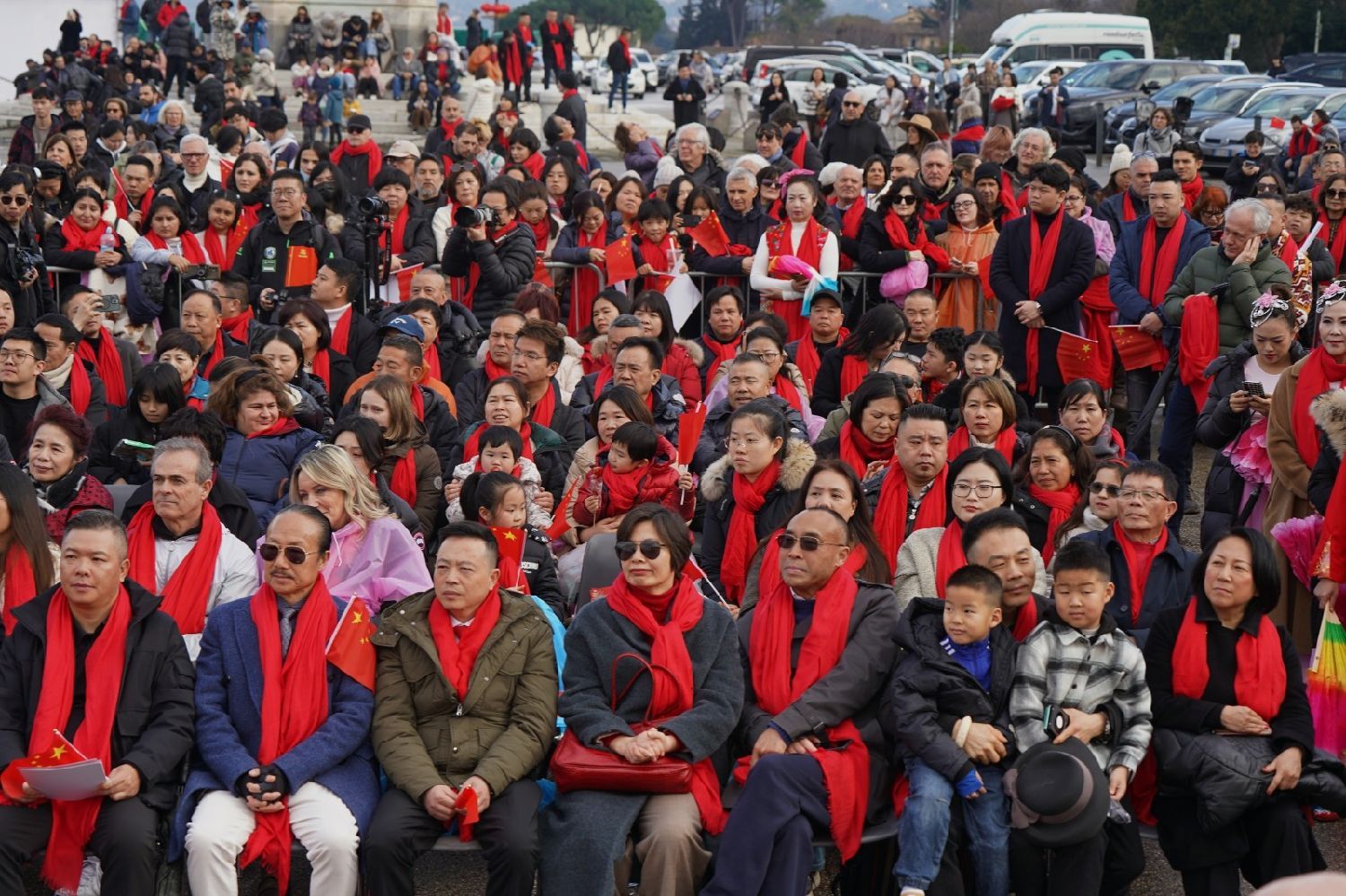 2月9日下午,意大利佛罗伦萨的米开朗基罗广场(Piazzale Michelangelo,华人俗称“皇帝山”)洋溢着浓厚的节日气氛,欢声雷动,热闹非凡。一场盛大的庆祝活动在此隆重上演,这不仅是佛罗伦萨领区侨界欢度新春、共闹元宵的年度盛典,更是纪念中意建交55周年的重要时刻。虽然活动当天上午一度下起了雨,但午后阳光终于普照,给广场增添了融融暖意。四处悬挂的红灯笼,寓意着喜庆与团圆,让现场沉浸在浓浓的节日氛围中。
