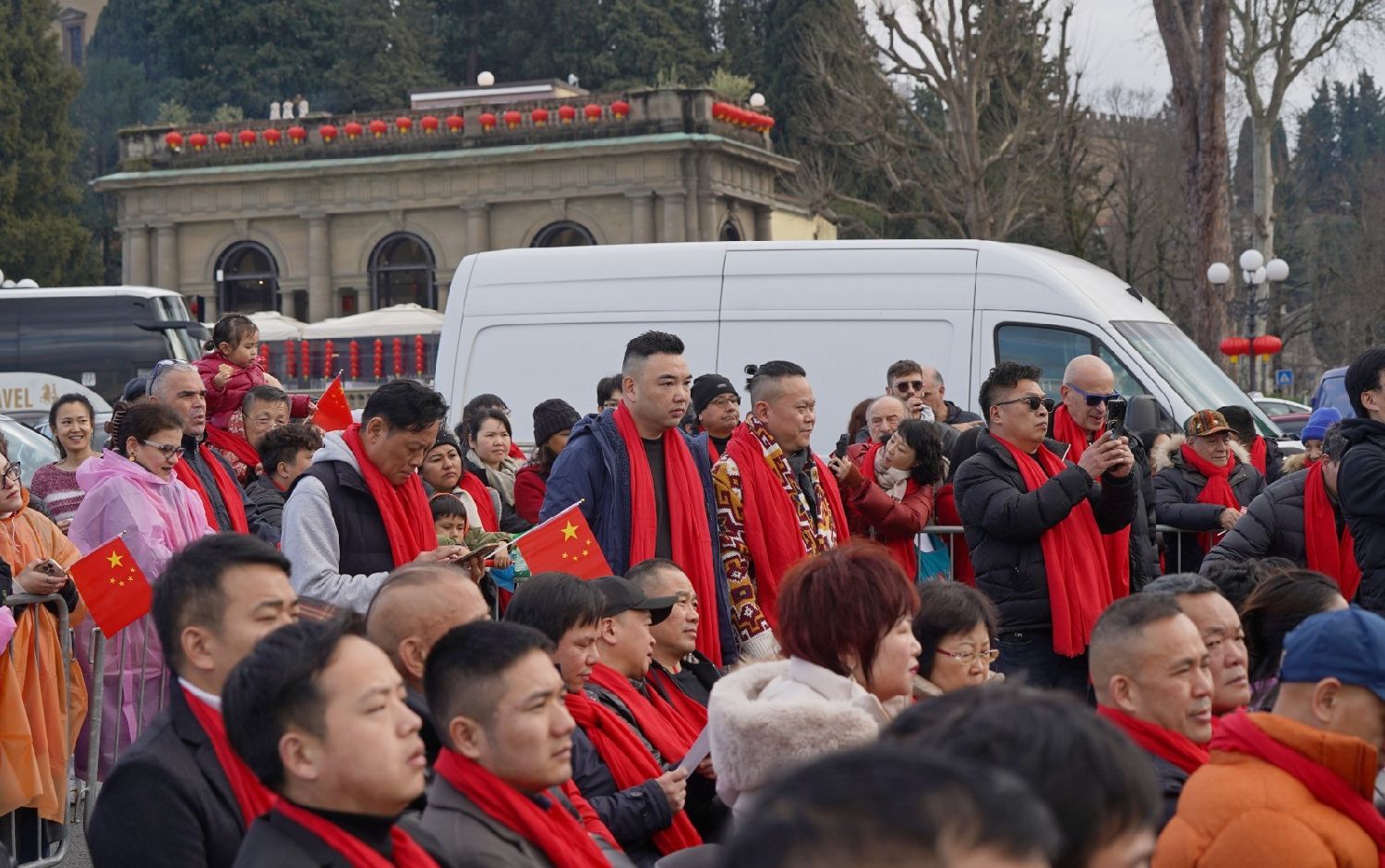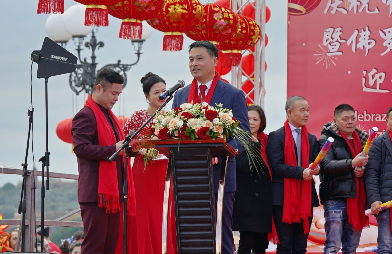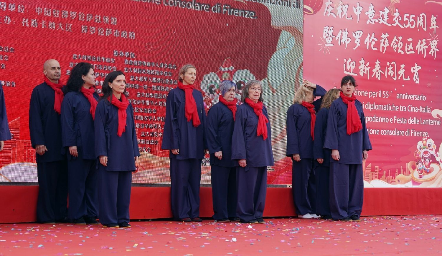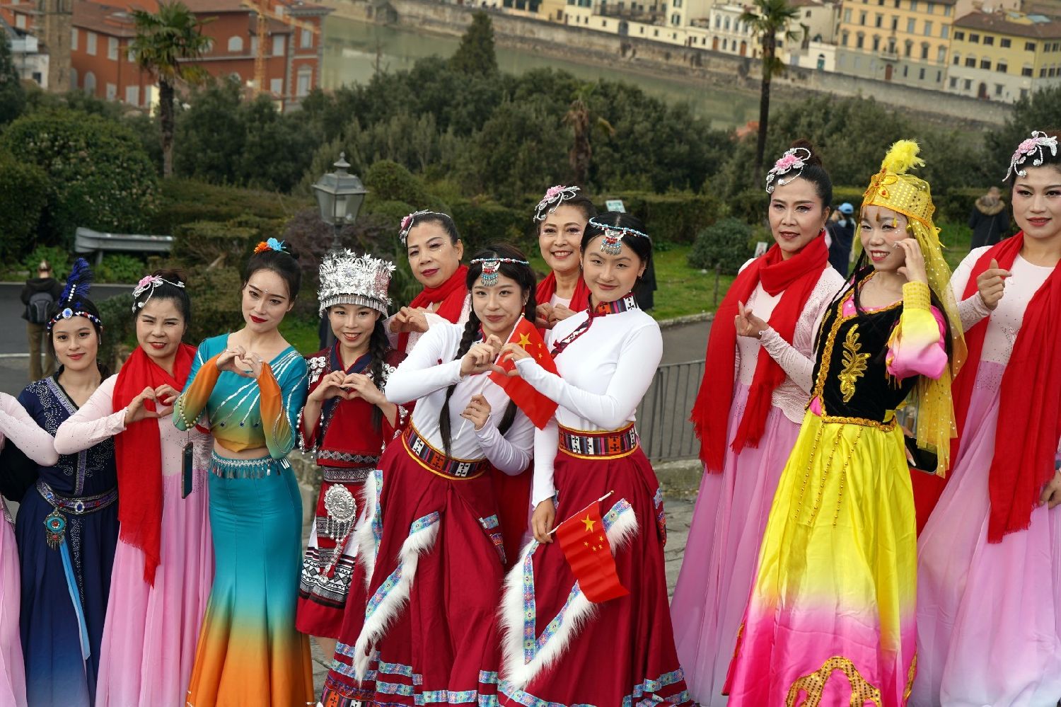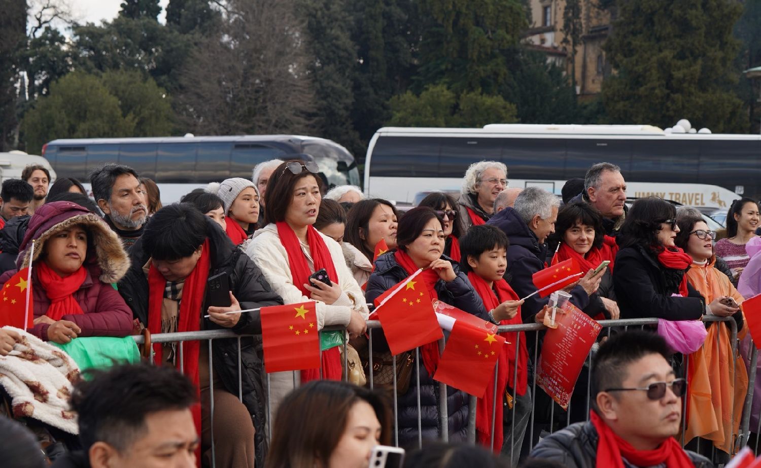 2月9日下午,意大利佛罗伦萨的米开朗基罗广场(Piazzale Michelangelo,华人俗称“皇帝山”)洋溢着浓厚的节日气氛,欢声雷动,热闹非凡。一场盛大的庆祝活动在此隆重上演,这不仅是佛罗伦萨领区侨界欢度新春、共闹元宵的年度盛典,更是纪念中意建交55周年的重要时刻。虽然活动当天上午一度下起了雨,但午后阳光终于普照,给广场增添了融融暖意。四处悬挂的红灯笼,寓意着喜庆与团圆,让现场沉浸在浓浓的节日氛围中。