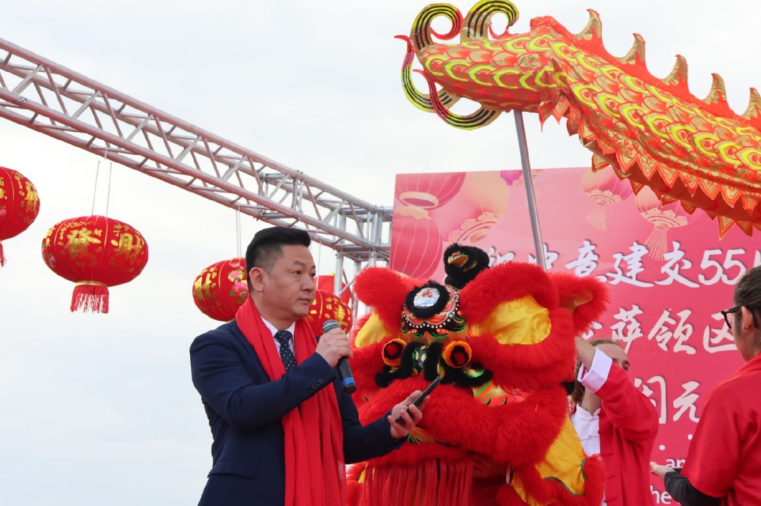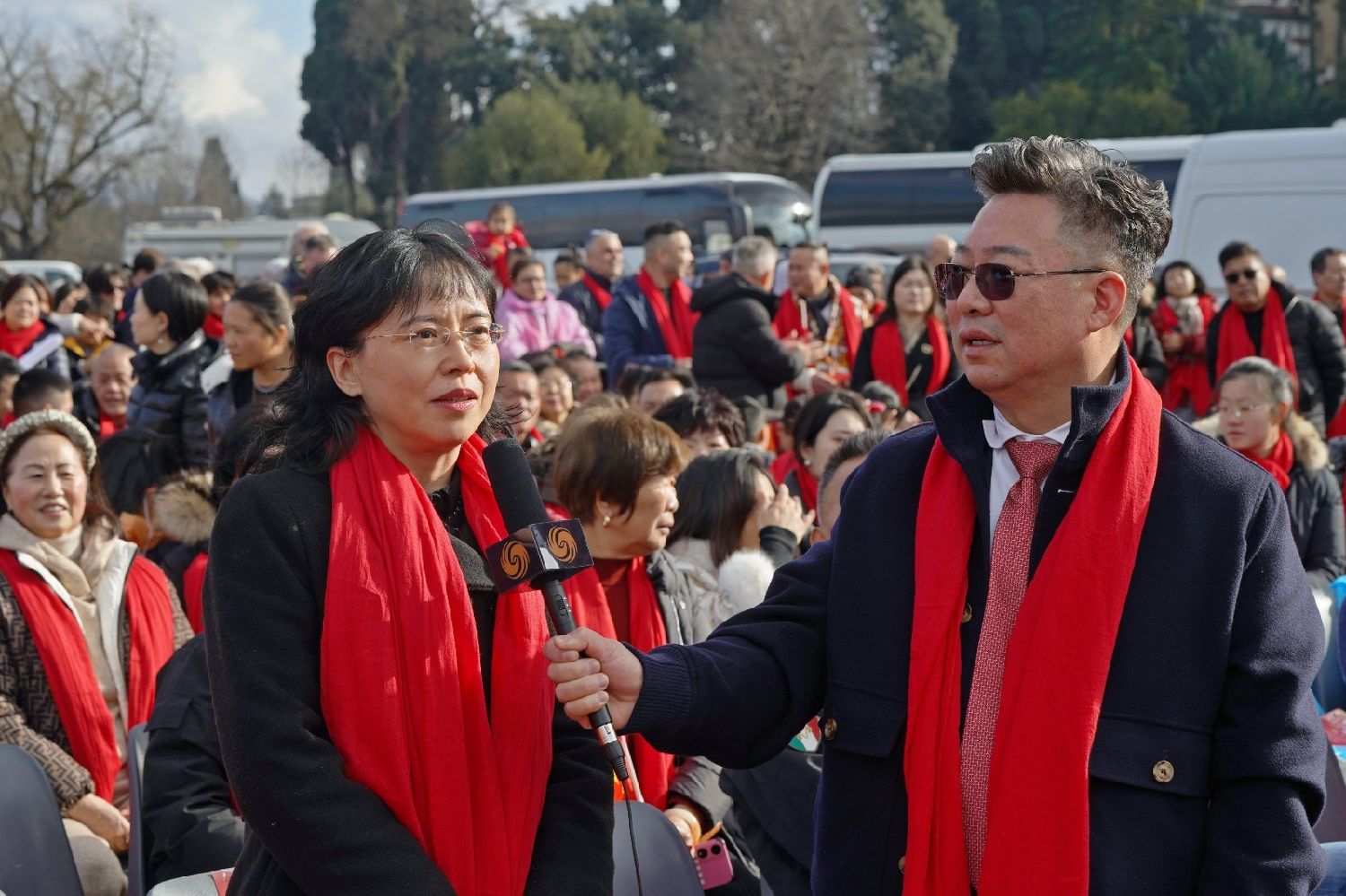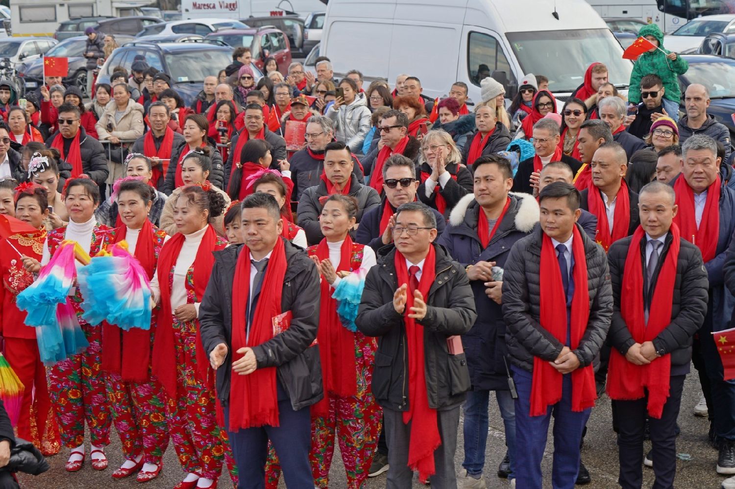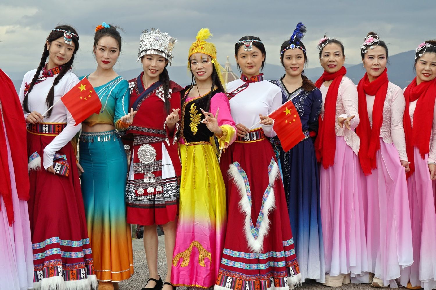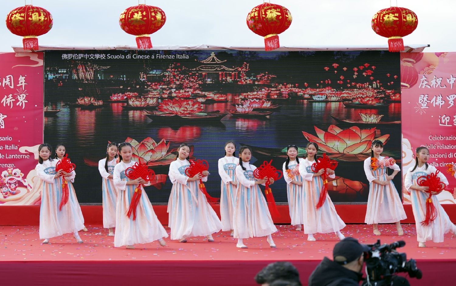 2月9日下午,意大利佛罗伦萨的米开朗基罗广场(Piazzale Michelangelo,华人俗称“皇帝山”)洋溢着浓厚的节日气氛,欢声雷动,热闹非凡。一场盛大的庆祝活动在此隆重上演,这不仅是佛罗伦萨领区侨界欢度新春、共闹元宵的年度盛典,更是纪念中意建交55周年的重要时刻。虽然活动当天上午一度下起了雨,但午后阳光终于普照,给广场增添了融融暖意。四处悬挂的红灯笼,寓意着喜庆与团圆,让现场沉浸在浓浓的节日氛围中。