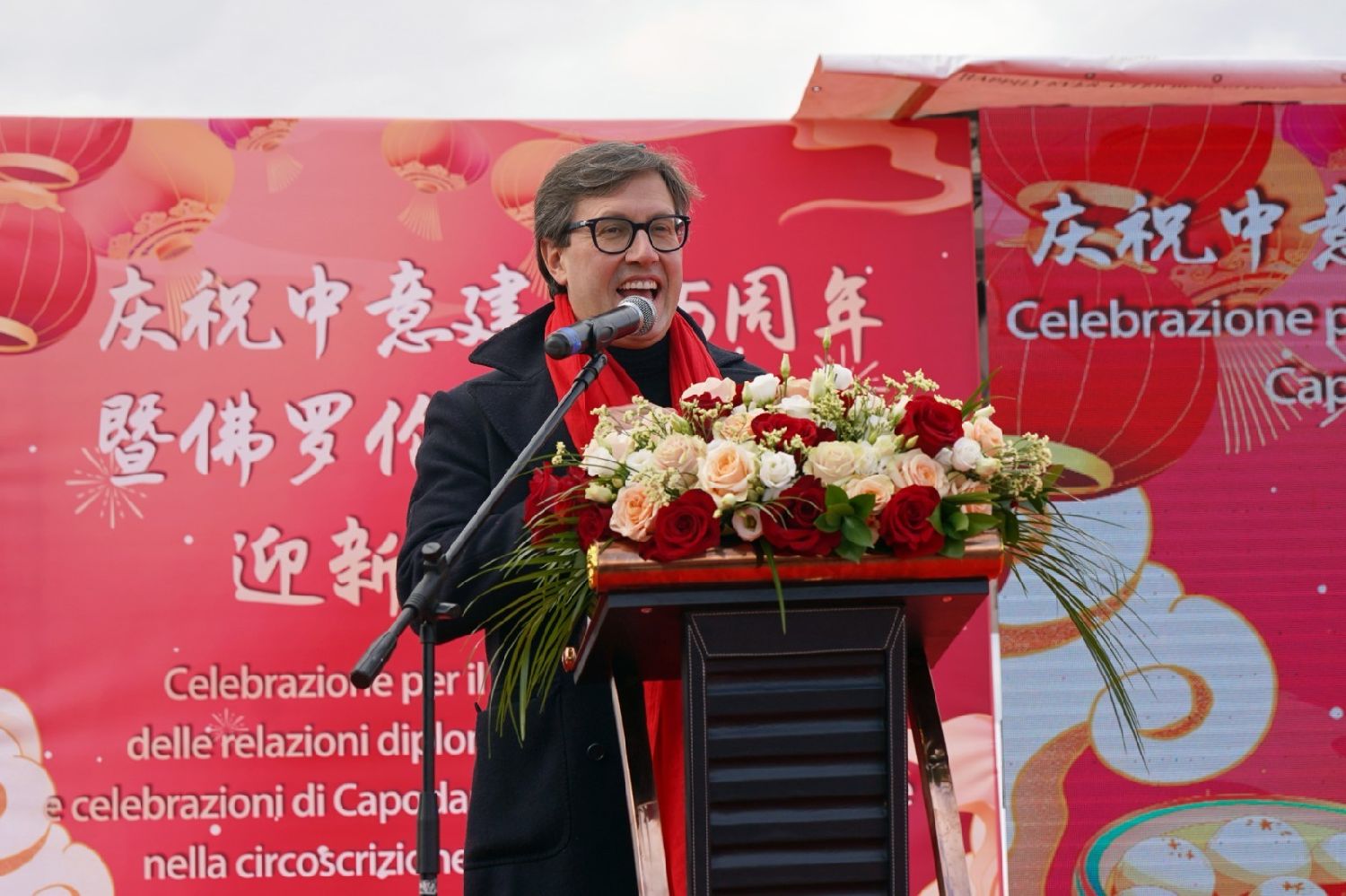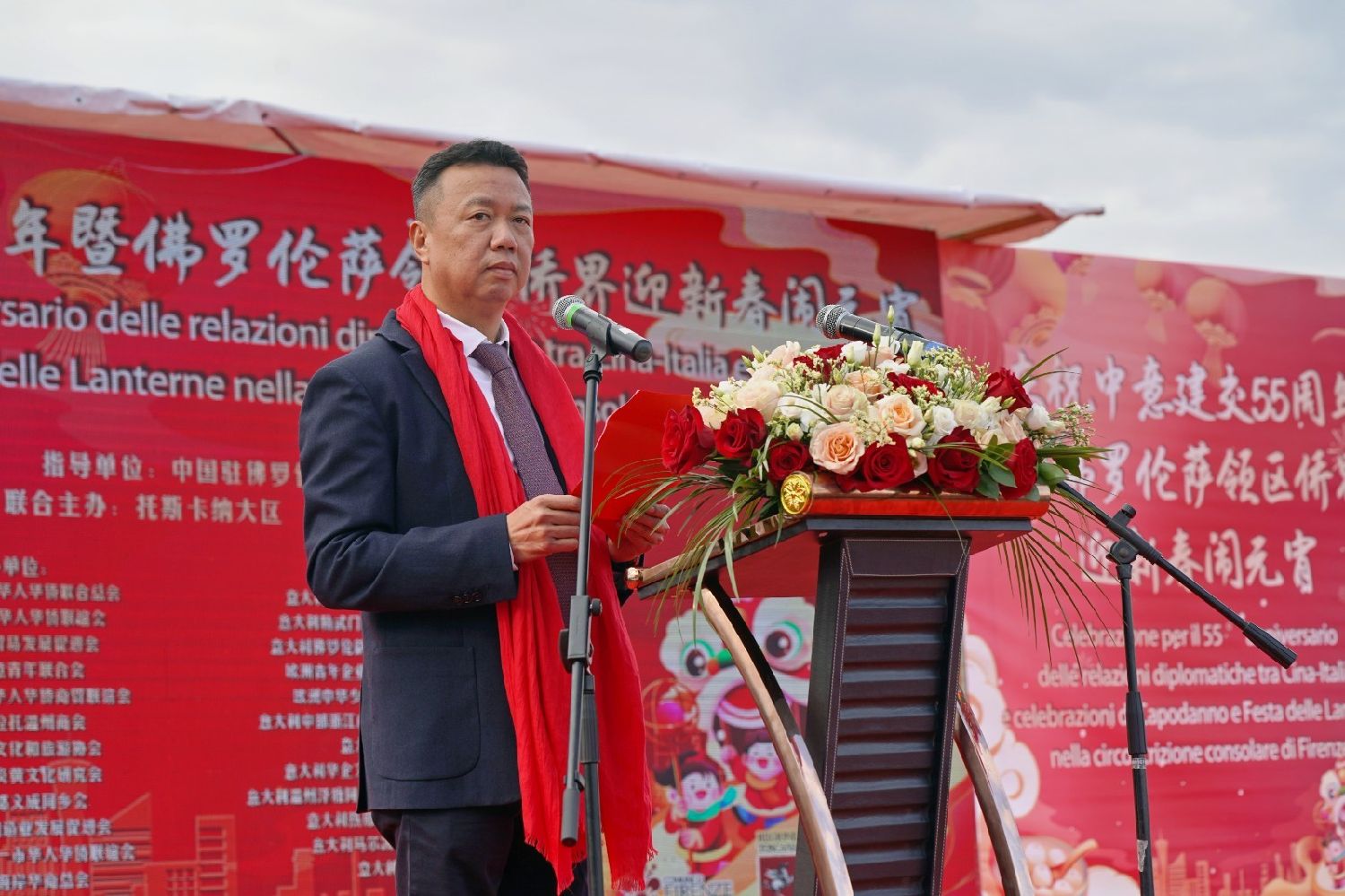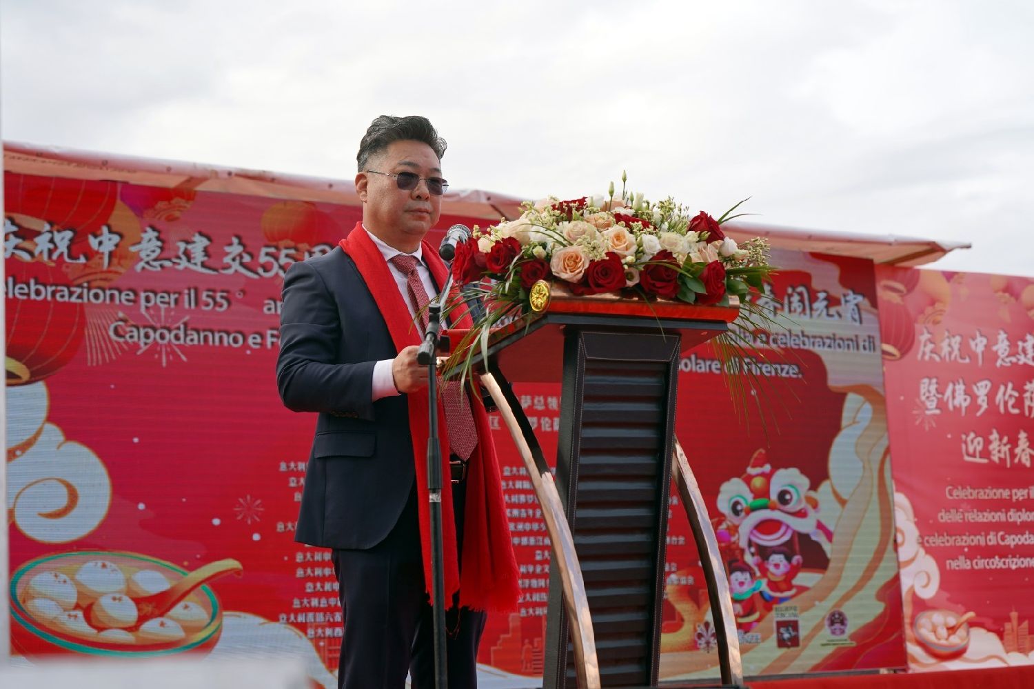 托斯卡纳大区主席Eugenio Gianni在讲话中表示,当天集聚佛罗伦萨的众多贵宾与华人华侨,共同庆祝春节和中意建交55周年,展现了托斯卡纳大区与中国互动的深厚情谊。米开朗基罗广场拥有逾500年的历史,如今在此举办春节庆典,是幸运与繁荣的象征,也代表着佛罗伦萨兼容并蓄的精神。贾尼主席向华人华侨致以新春祝福,期望他们在托斯卡纳大区收获更多幸福与成功。