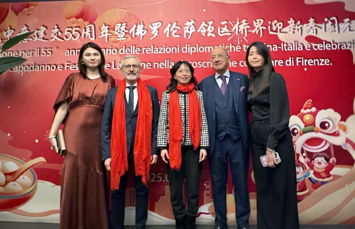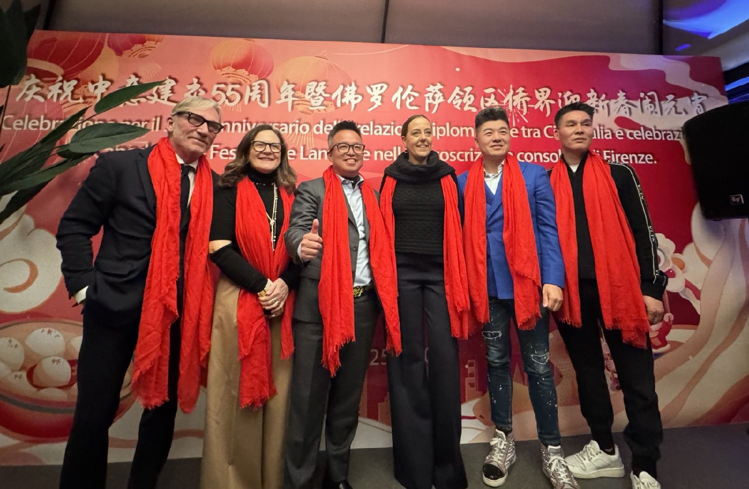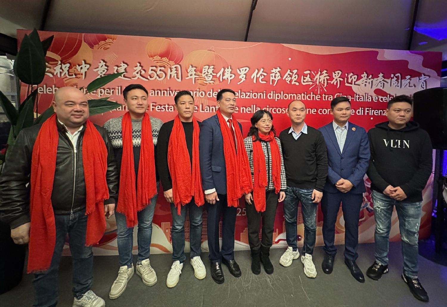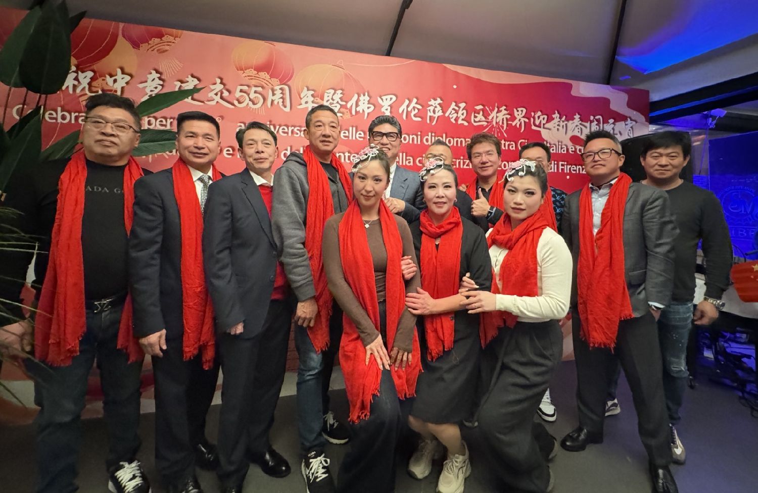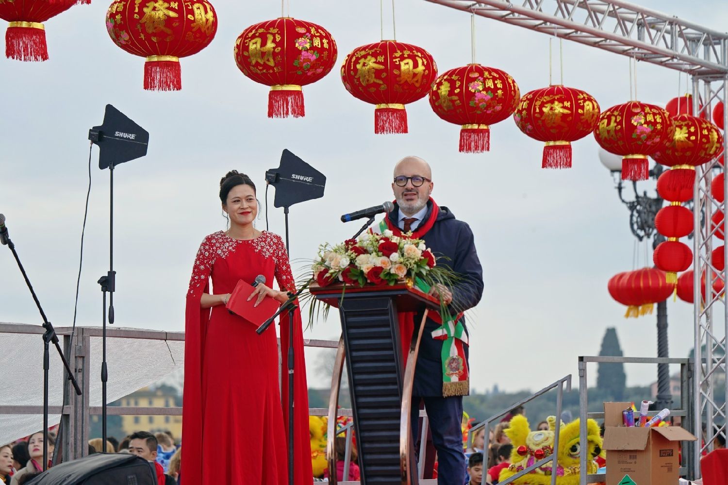 中国驻佛罗伦萨总领事尹琦、欧洲议会议员Dario Nardella、佛罗伦萨市长代表Giovanni Bettarini、意大利中国文化和旅游协会会长夏文华、意大利中部文成同乡会会长周建华、意大利西海岸华商总会会长蔡志敏、意大利西部六省一市华侨华人联谊会会长吴永忠、意大利普拉托温州商会监事长南松尧等共同登台,为舞狮点睛。