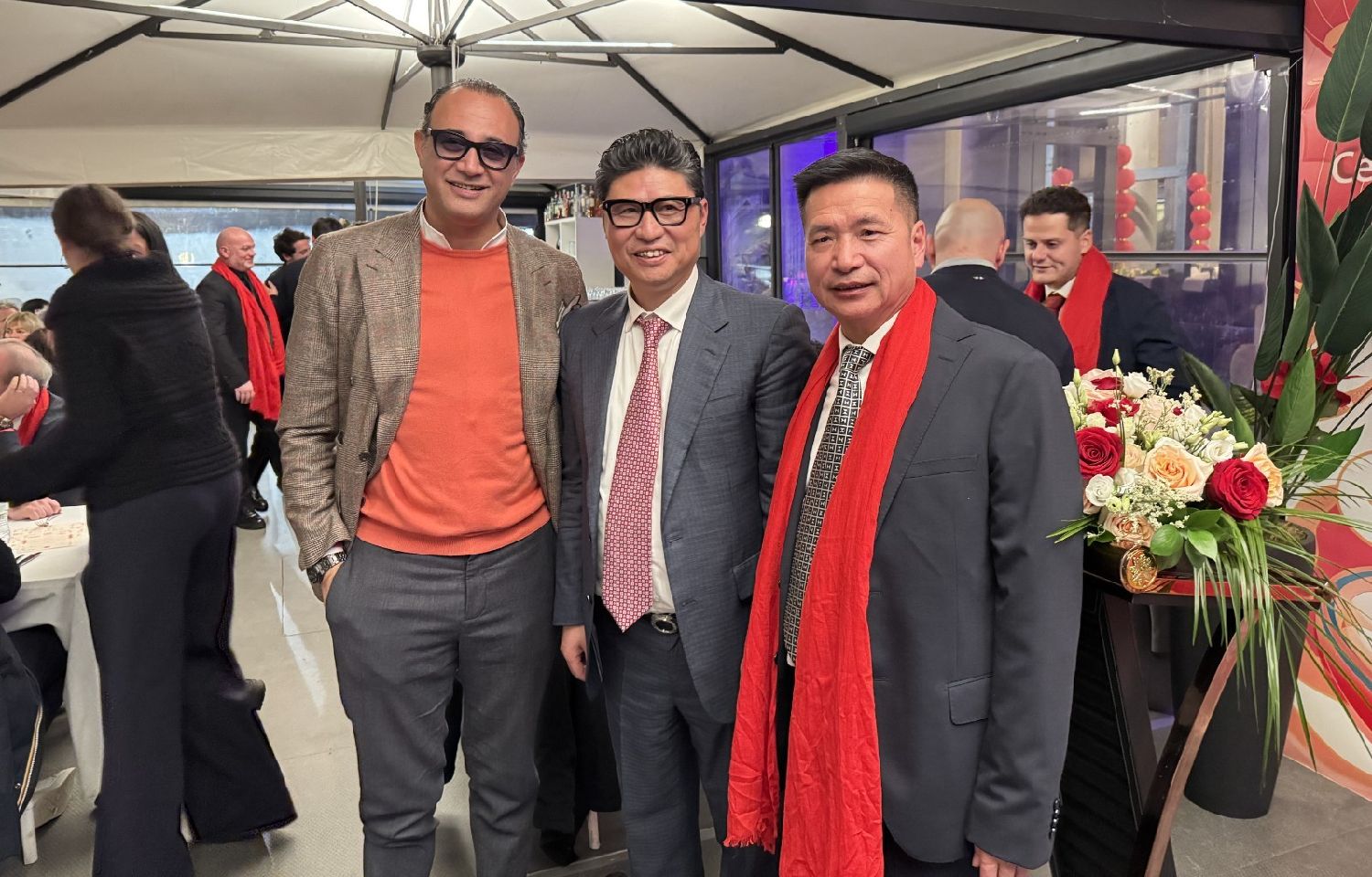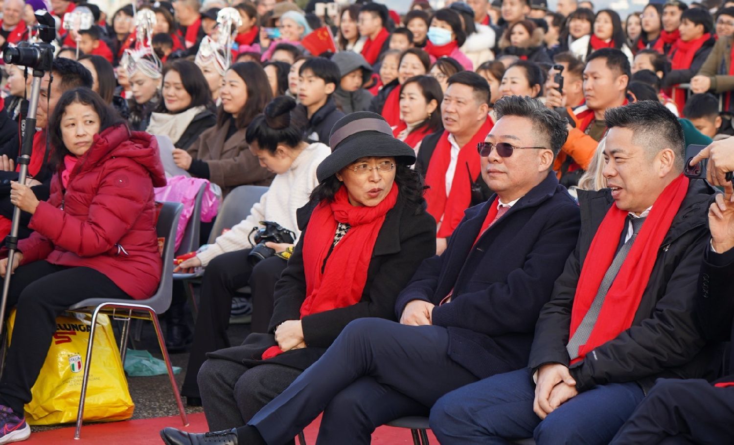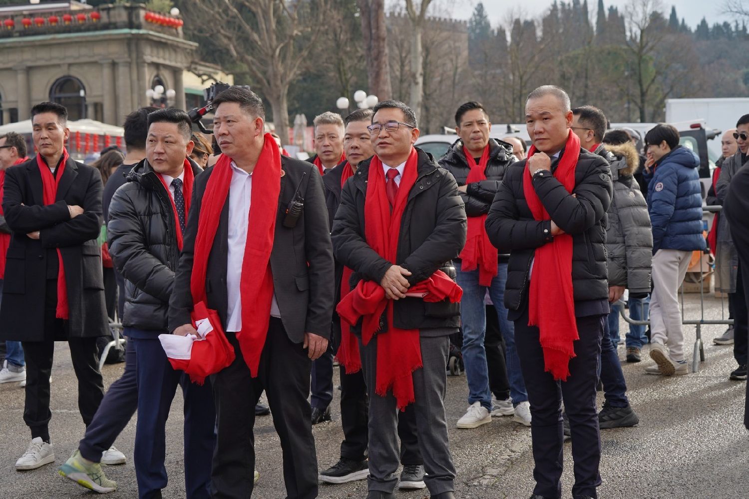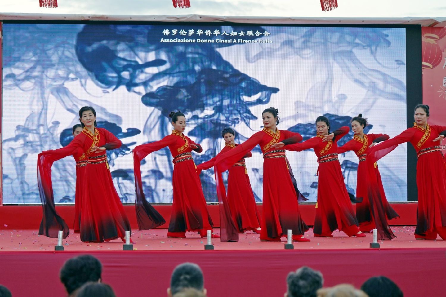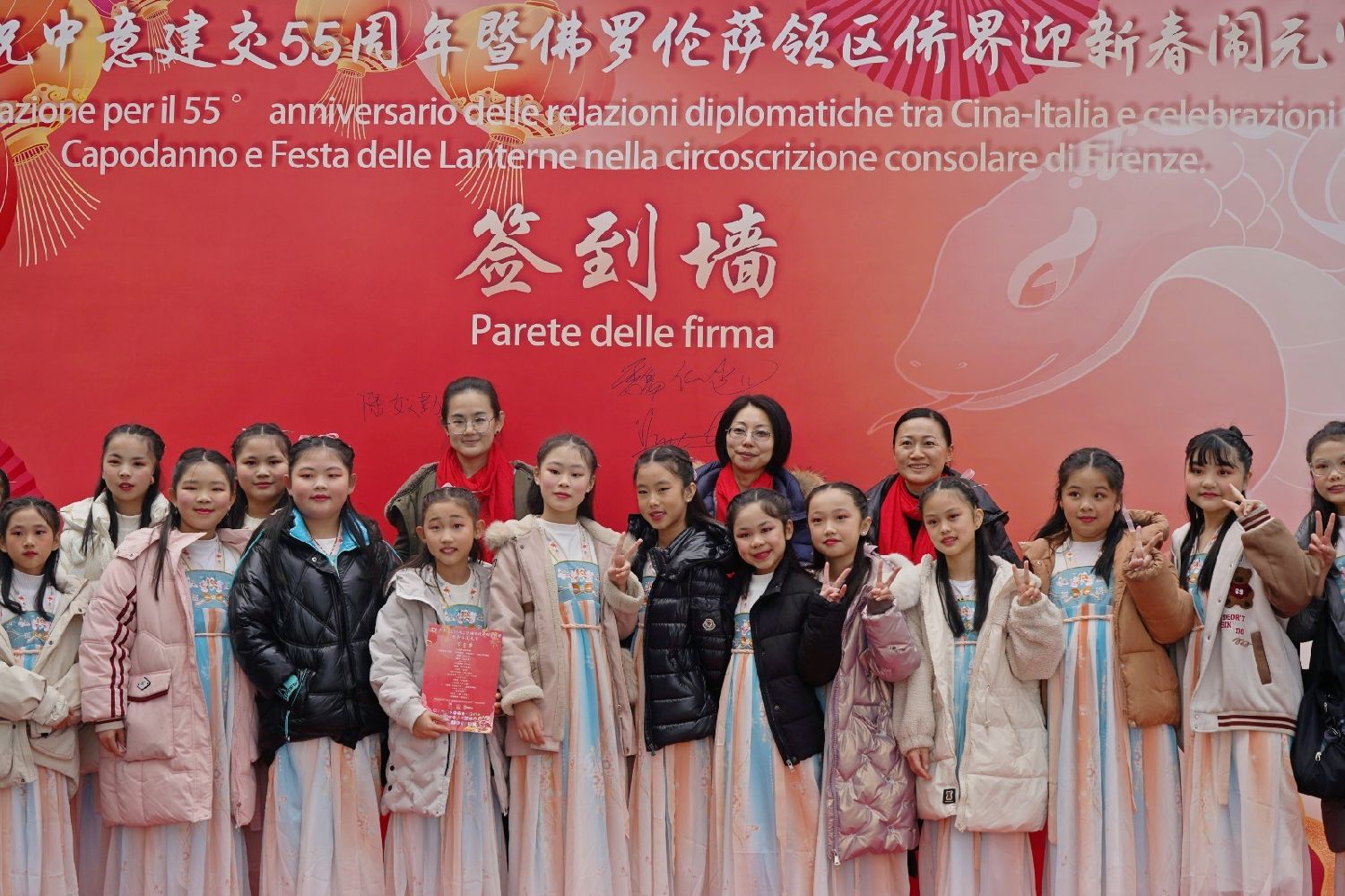 中国驻佛罗伦萨总领事尹琦、欧洲议会议员Dario Nardella、佛罗伦萨市长代表Giovanni Bettarini、意大利中国文化和旅游协会会长夏文华、意大利中部文成同乡会会长周建华、意大利西海岸华商总会会长蔡志敏、意大利西部六省一市华侨华人联谊会会长吴永忠、意大利普拉托温州商会监事长南松尧等共同登台,为舞狮点睛。