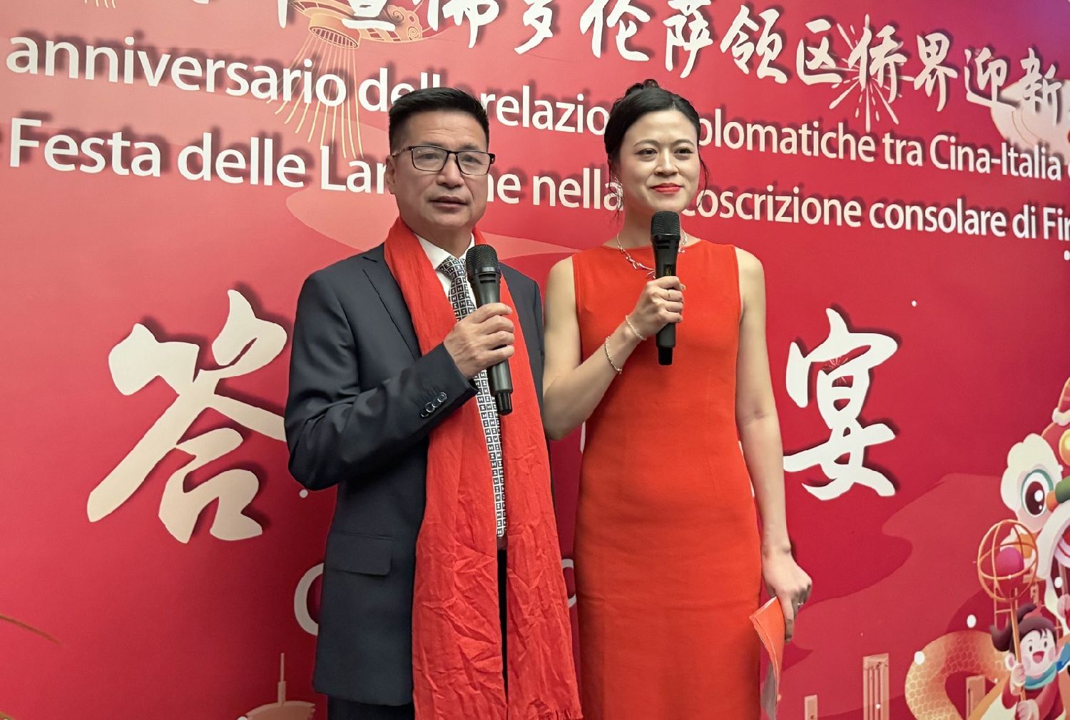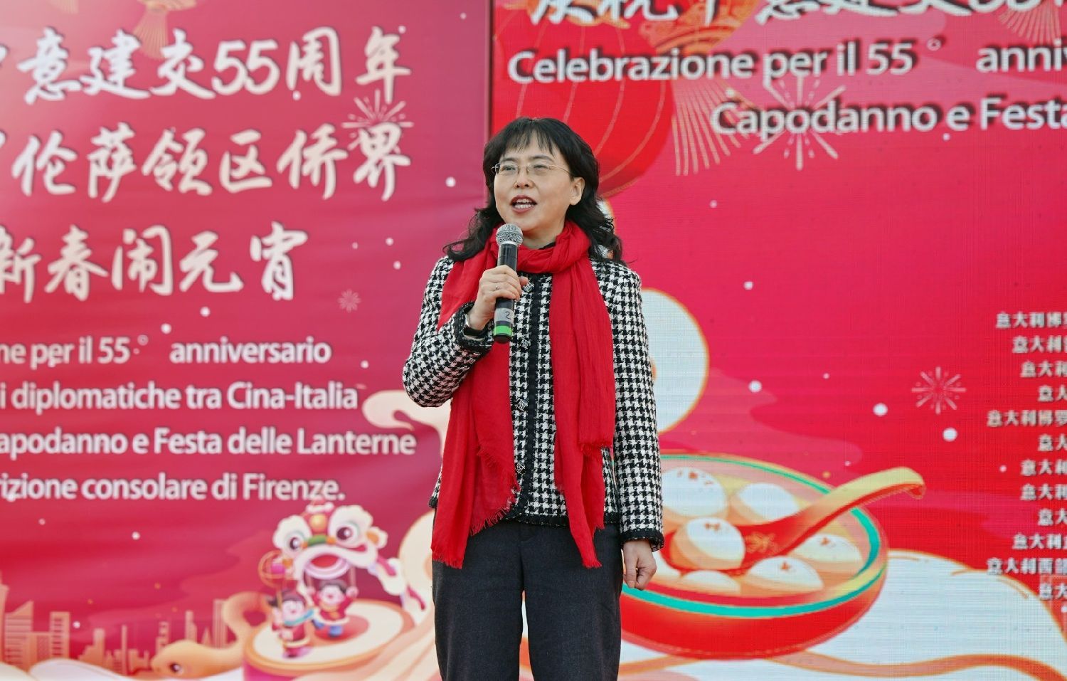最后,中国驻佛罗伦萨总领事尹琦用流利的英语向到场嘉宾表达感谢,并对活动的成功举办表示衷心祝贺。她高度肯定了托斯卡纳大区、佛罗伦萨市政府以及30多个侨社团体的通力合作。尹琦总领事强调,春节申遗成功标志着全球对中华文化理念的认可,同时,中意建交55周年为两国深化合作带来了新的契机。她热情邀请意大利友人赴华体验中华文化的独特魅力,并在致辞的最后,向所有人送上衷心的新春祝福,祝愿大家蛇年大吉、万事如意。