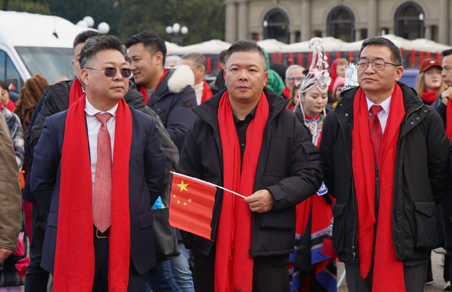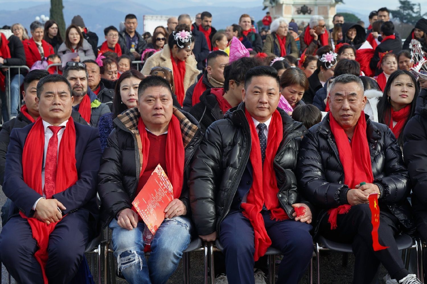 紧接着,中意两国国歌先后奏响,现场人群庄严肃立,共同高唱。在这激昂的旋律中,旅意华人华侨的爱国情怀被充分激发,也让在场的意大利友人感受到两国人民心手相连的深厚情谊。