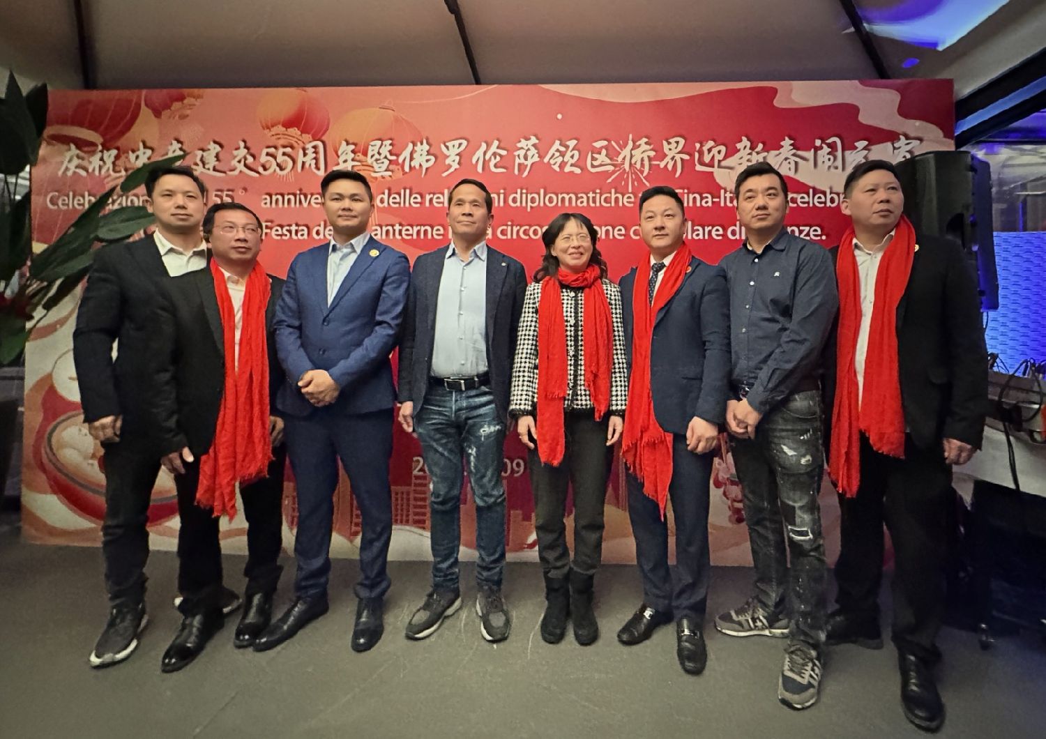 意大利-中国贸易发展促进会主席王增理上台介绍到场嘉宾,包括中国驻佛罗伦萨总领事尹琦、欧洲议会议员Dario Nardella、佛罗伦萨市长代表兼文化局局长Giovanni Bettarini,以及佛罗伦萨领区32家侨社的代表。各位嘉宾上台致谢,现场气氛热烈非凡。