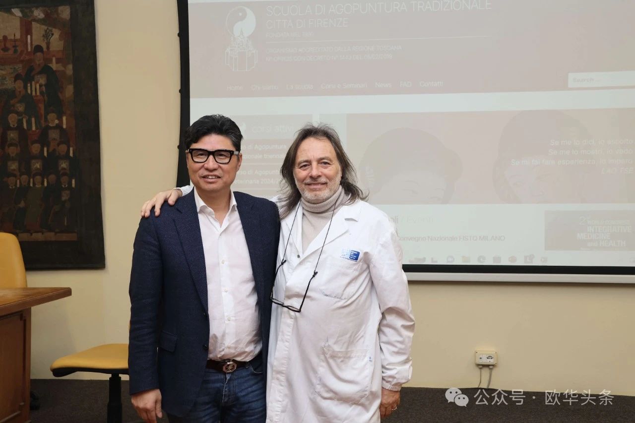 在学术交流环节,意大利佛罗伦萨针灸学院中医和针灸的主任和讲师弗朗科·克拉科利教授与中国欧洲人文交流协会健康顾问王胜强医生分别进行了主题分享,围绕针灸技术在欧洲的应用发展及现代医学结合等话题展开深入交流。两位专家结合临床实践,分享了针灸在慢性病管理、疼痛缓解及整体健康调理方面的案例分析,为现场嘉宾提供了重要的学术参考。