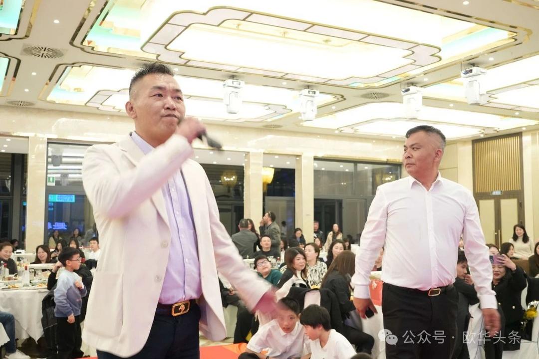 ▲当天的庆祝晚会由意大利华企文化交流协会秘书长吴育明与发展部部长沈显秋共同主持。