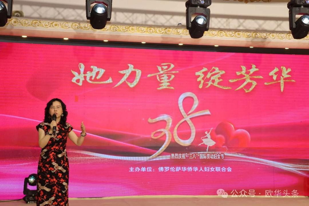 ▲当天的庆祝晚会由佛罗伦萨华侨华人妇女联合会郑晓群女士和秘书长谢群女士共同主持。