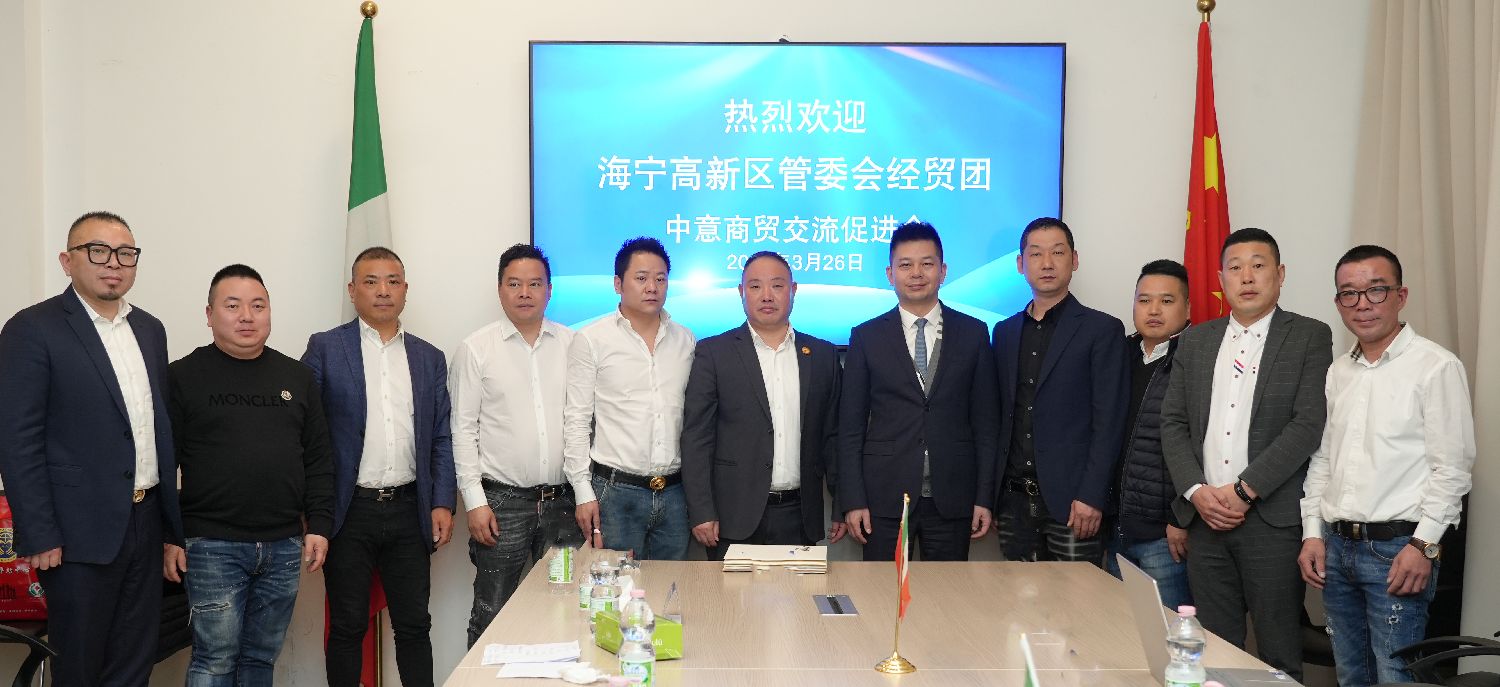 2025年3月26日,中意商贸交流促进会与到访的浙江海宁高新区经贸考察团在米兰华侨华人工商会会议室举行座谈,双方围绕产业对接、技术合作及文化互鉴等议题展开深入探讨。当晚,促进会在168大酒店设宴欢迎考察团一行,中国驻米兰总领事馆领侨处主任张岱晨、领事任武及多位米兰侨领出席欢迎仪式,共同见证中意合作的新篇章。