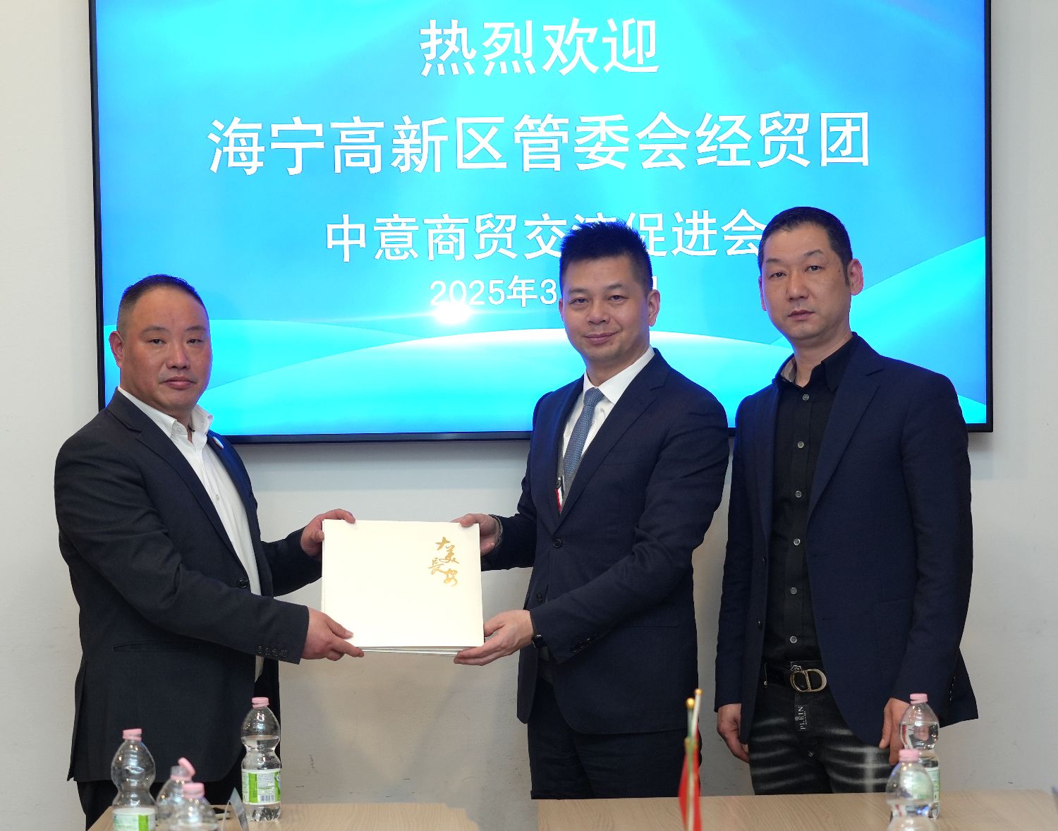 谈及海宁,刘晓春表示:“海宁不仅是海外华商投资的热土,更是温商争相布局的宝地。浙江杭州瑞安商会林小东先生的保罗彼得公司近期落户长安镇,正是两地合作的生动例证。”他指出,海宁高新区作为浙江改革开放的前沿阵地,与米兰在产业结构、技术创新等方面具有显著互补性,期待以此次考察为契机,深化双方在智能制造、时尚产业等领域的合作,推动中意友谊与经贸往来迈上新台阶。