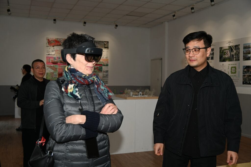 随后,郑州大学教师代表依次登台进行专题分享。美术学院高云老师讲解了展览的整体策划与主题表达,强调传统文化与AR技术的有机结合;建筑学院的陈琛老师通过翻译讲述了展览中对历史文化遗产进行现代转译的理念与路径;王宝珍老师分享了其对“根脉”与“共生”这一核心命题的设计思考;赵威老师则介绍了作品在教育、实践和国际交流中的应用与意义。