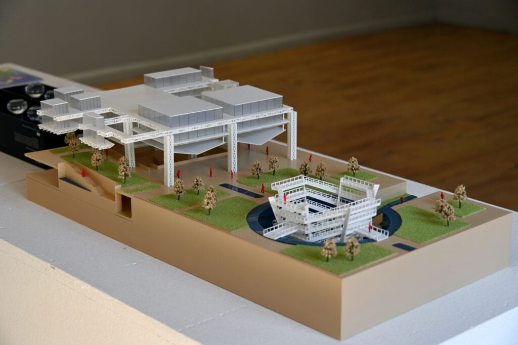 展览现场呈现了郑州大学学生与教师的系列原创作品,涵盖建筑设计、视觉艺术及文化创意等多个方向,体现了艺术教学改革的阶段性成果。其中,AR增强现实技术的运用带来了更具沉浸感的观展体验,也强化了展览在当代表达与技术融合上的实验性与前瞻性。