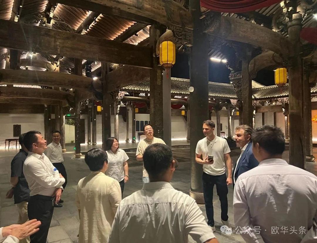 欢迎晚宴后,在建阳区区长王冲的陪同下,代表团一行还参观了“梦华录”文化景区。该景区以古风场景和沉浸式体验为特色,向嘉宾们生动展现了中华民族古文化的魅力与现代传承。意方嘉宾对中国优秀传统文化表达出浓厚兴趣,认为这是文化交流与旅游合作的重要契机。