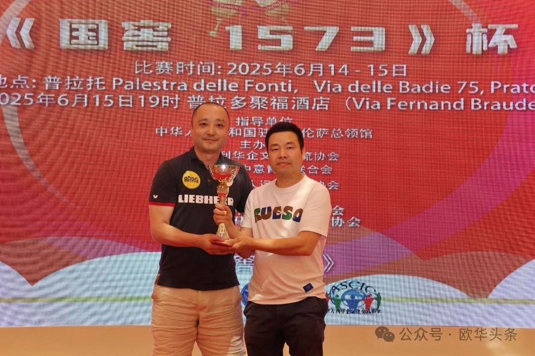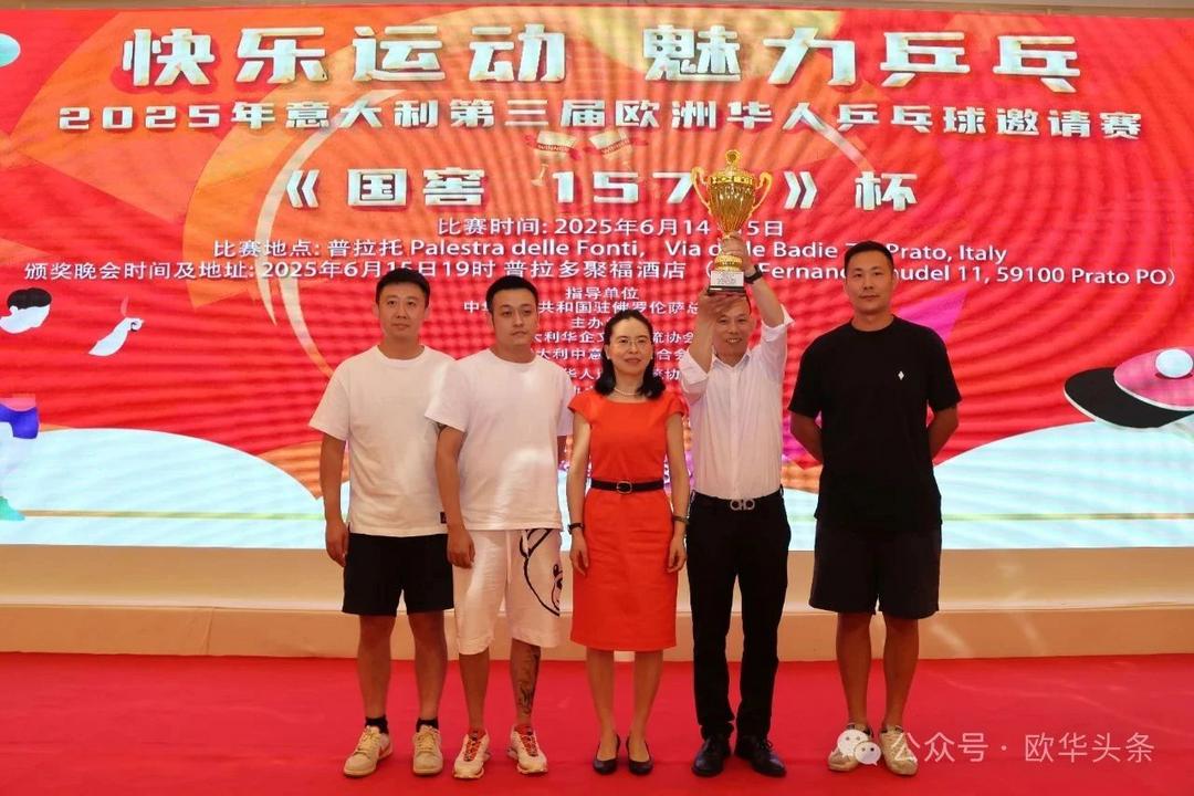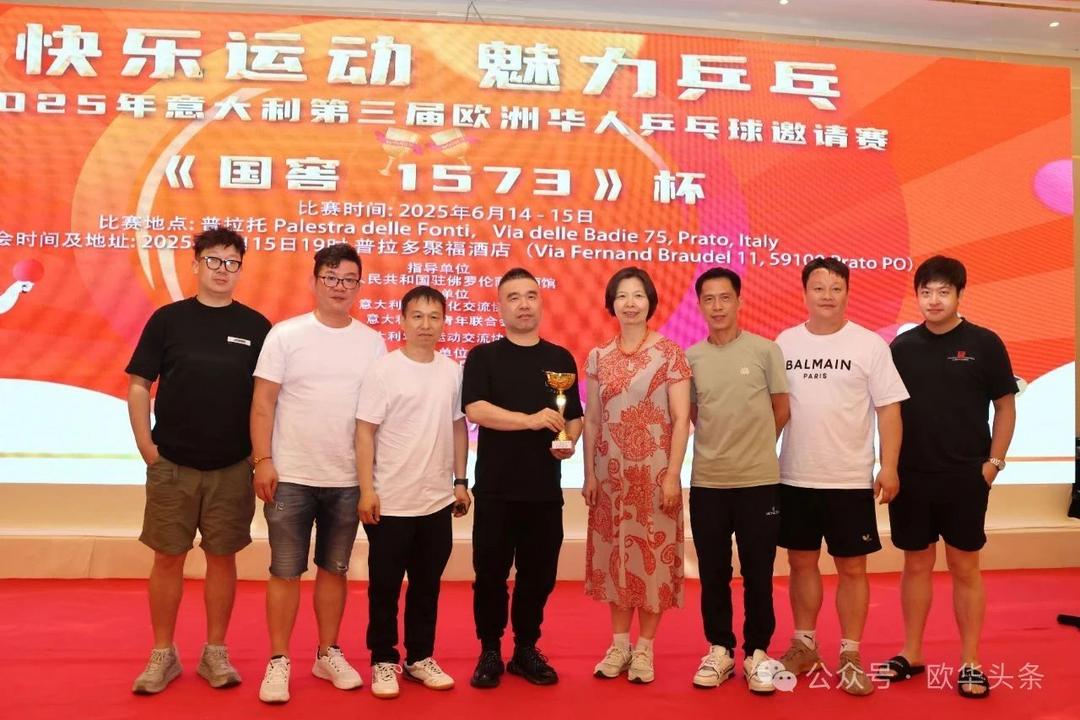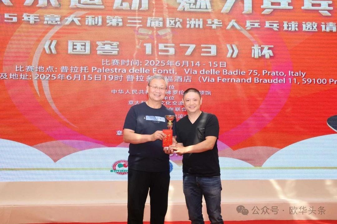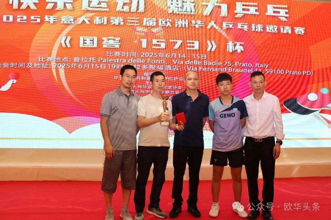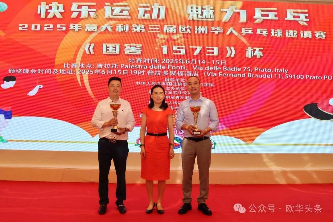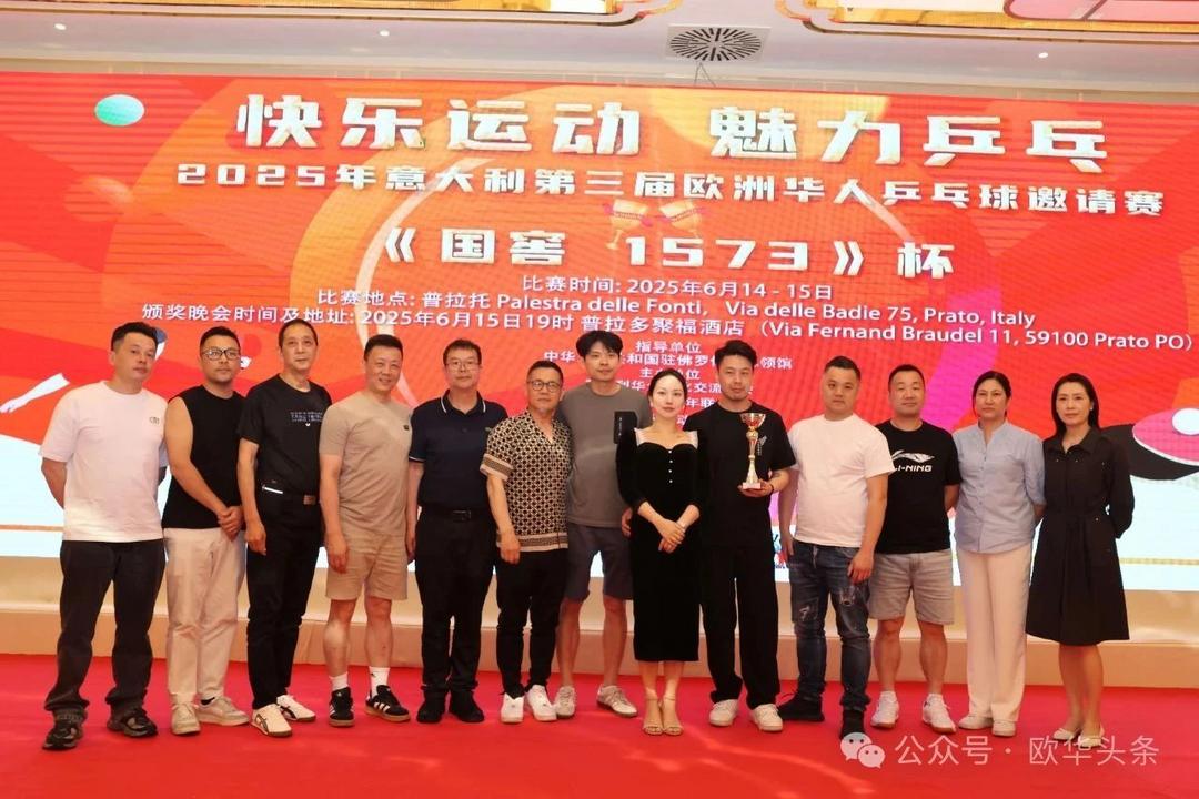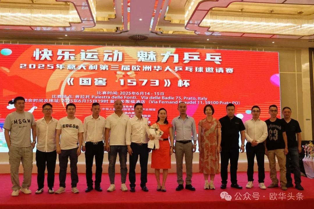 (陈静)2025年6月14日至15日,由意大利华企文化交流协会、意大利中意青年联合会、意大利华人运动交流协会联合主办,意大利华人乒乓球协会、意大利罗马华人乒乓球协会协办的“第三届《国窖1573》杯欧洲华人乒乓球邀请赛”在意大利普拉托市圆满举行。为期两天的赛事吸引了来自法国、西班牙、奥地利、匈牙利、德国及意大利等多个国家的24支代表队、百余名选手热情参赛,现场气氛高涨、精彩纷呈。