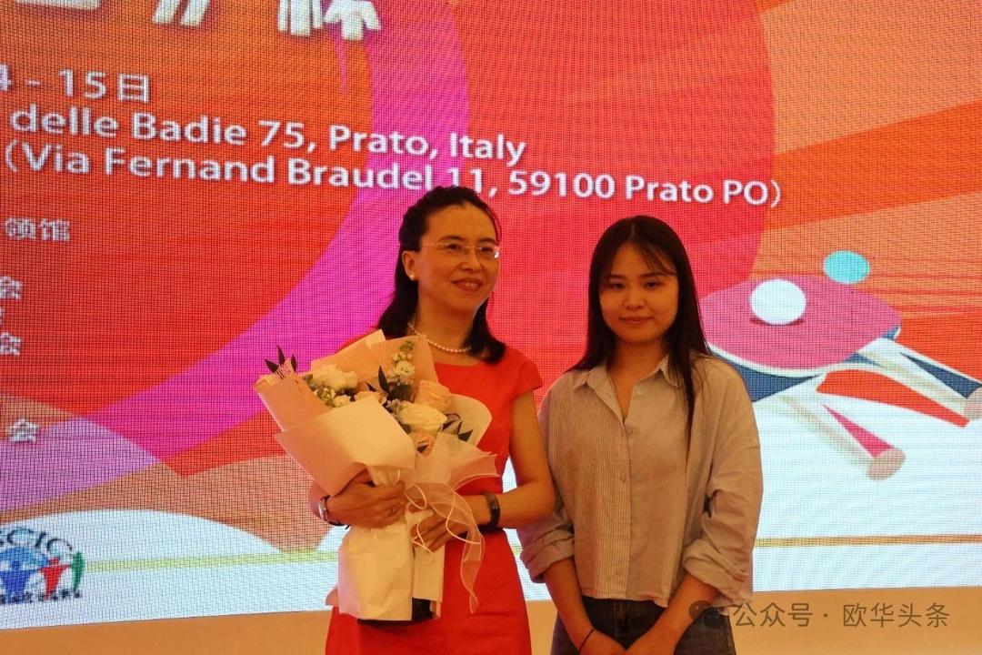 徐静媛领事向优秀奖的罗马华人乒乓球俱乐部颁奖。