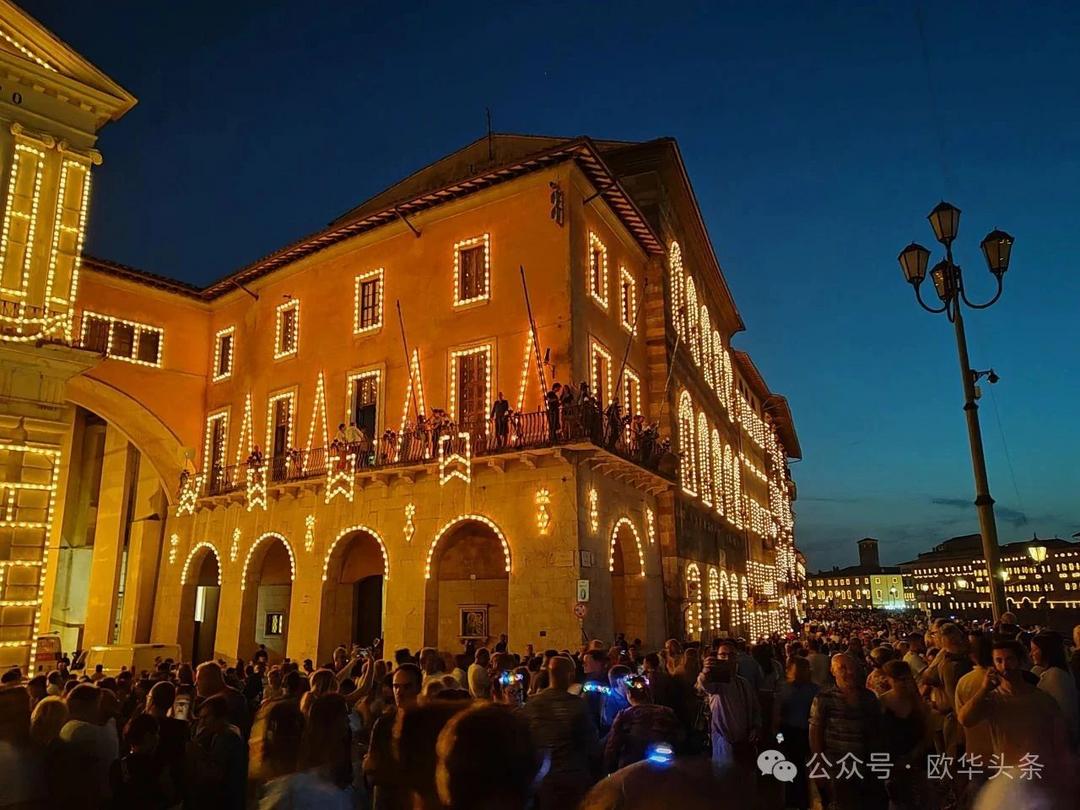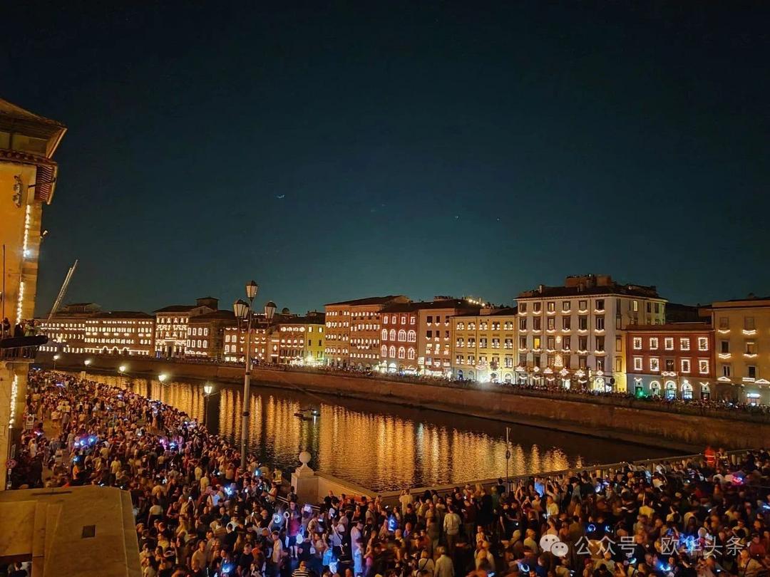 无论天气晴雨,每年6月16日,这一传统都会如期举行,吸引数以万计的游客和市民参与其中。今年的灯光节再次证明,比萨不仅有斜塔,还有令人叹为观止的文化魅力。