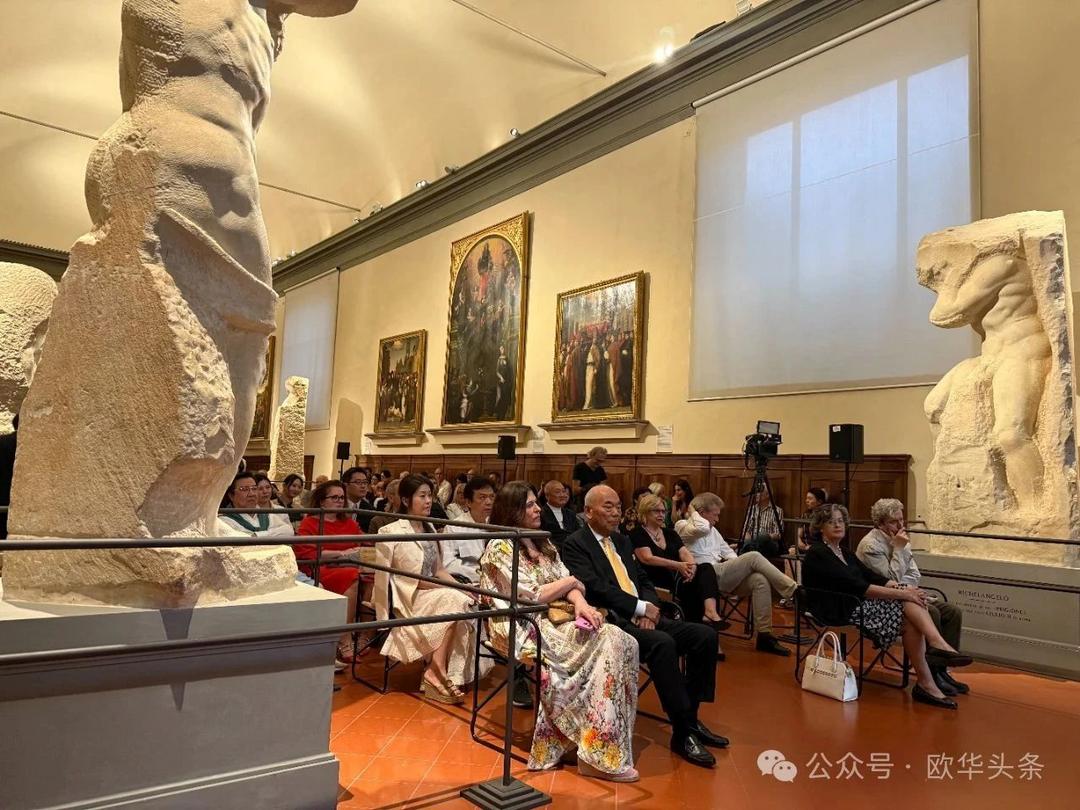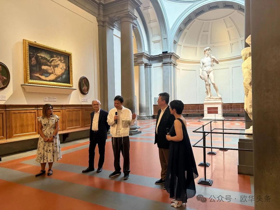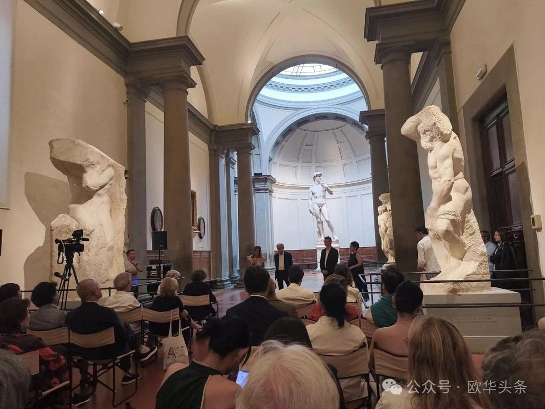 本次展览不仅在艺术史意义上具有突破性——这也是佛罗伦萨学院美术馆建馆以来首次为一位在世艺术家举办个展,并将展览置于馆藏米开朗基罗《大卫》雕像所在的同一空间,构成一场跨越时空的精神对话。开幕式当天盛况空前,不仅吸引了意大利文化部代表、佛罗伦萨学院美术馆馆长马西莫·奥萨纳(Massimo Osanna)、策展人加布里埃莱·西蒙吉尼(Gabriele Simongini)亲临现场,多位意大利国家级艺术与学术机构负责人从罗马、米兰等地专程赶来出席。国际艺术界代表亦踊跃参与,包括法国、日本多家重量级画廊主、日本东京国立美术馆馆长等前来支持。同时,来自中国的多位重要藏家及艺术机构代表也应邀出席,共同见证这场艺术盛事,彰显中国当代艺术在国际舞台上的强大影响力与文化穿透力。