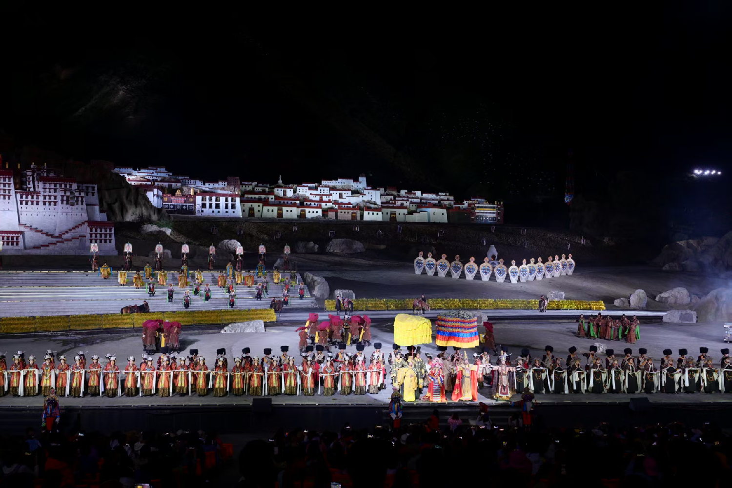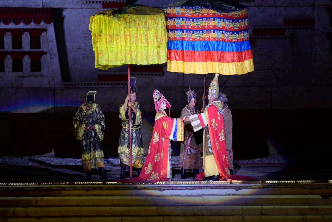当晚,代表团在实景剧场观看了大型藏文化史诗剧《文成公主》。该剧以宏大的场景、震撼的歌舞和藏戏元素,再现了文成公主历经艰险入藏和亲、促进唐蕃友好的历史故事。演出以星空雪山为背景,数百名演员共同演绎汉藏文化交流的壮丽篇章,令在场媒体人深受感动。