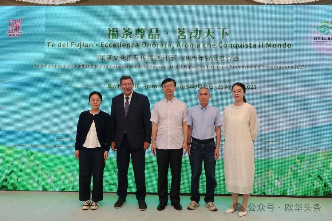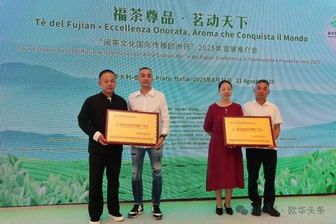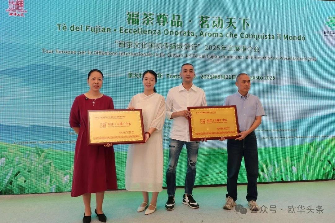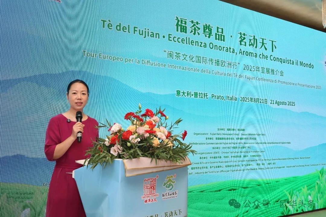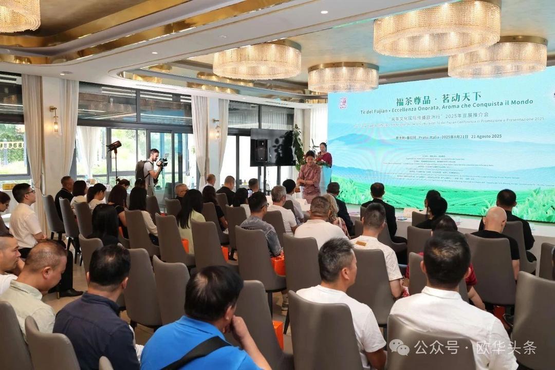 (陈静)2025年8月21日上午,“福茶尊品·茗动天下——闽茶文化国际传播欧洲行”2025年宣传推介会在意大利普拉托市(Prato)的聚福大酒店隆重举办。本次活动由福建日报社(报业集团)主办,英国福建商业联合总会、旅意福建华侨华人同乡总会支持,ZENTE知了中国茶文化运营推广中心协办,中共福安市委、市政府,中共柘荣县委、县政府及市场瞭望杂志社承办,福安市农业农村局、茶产业发展中心,柘荣县农业农村局、茶产业发展中心、《茶道》杂志、《闽声》杂志等单位的联合承办。