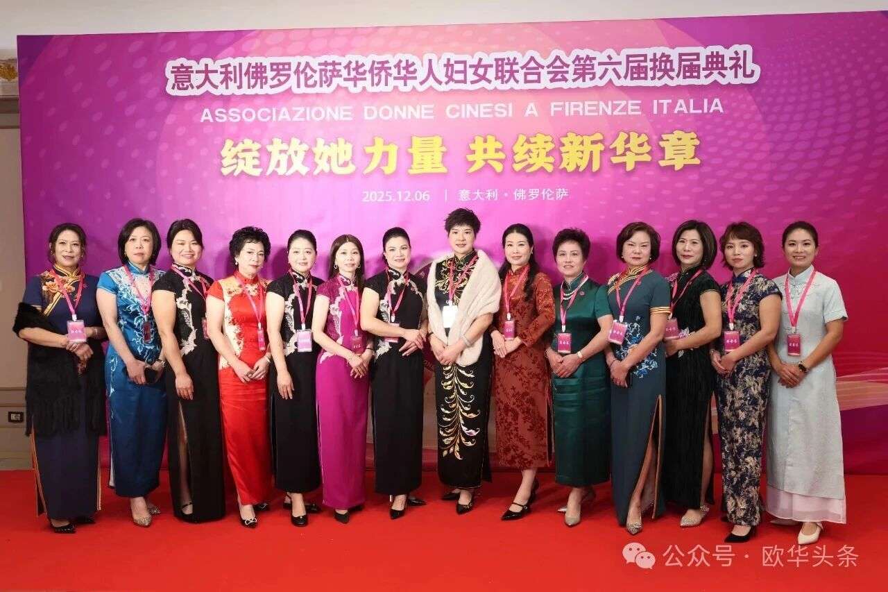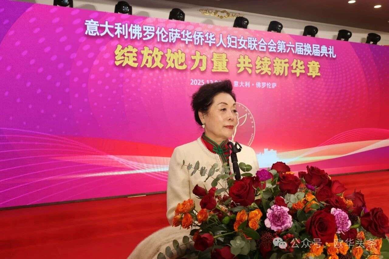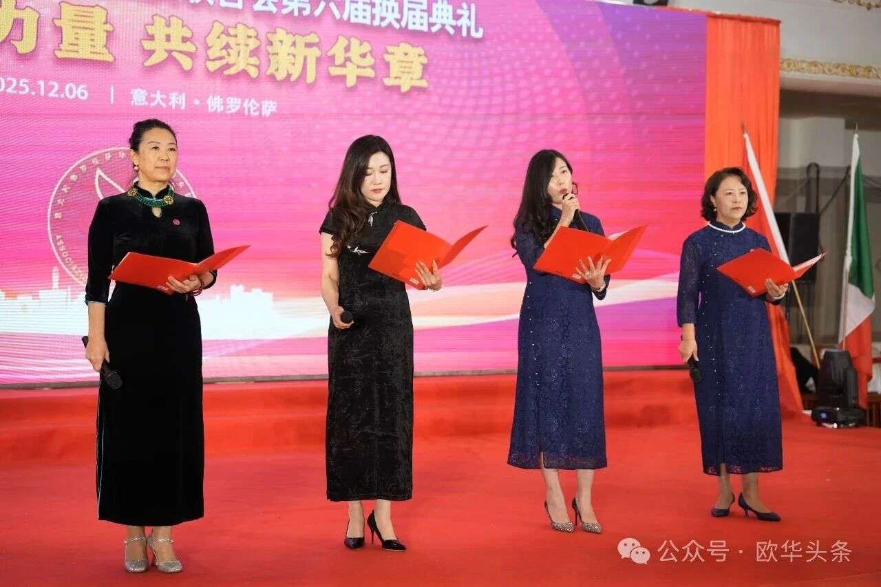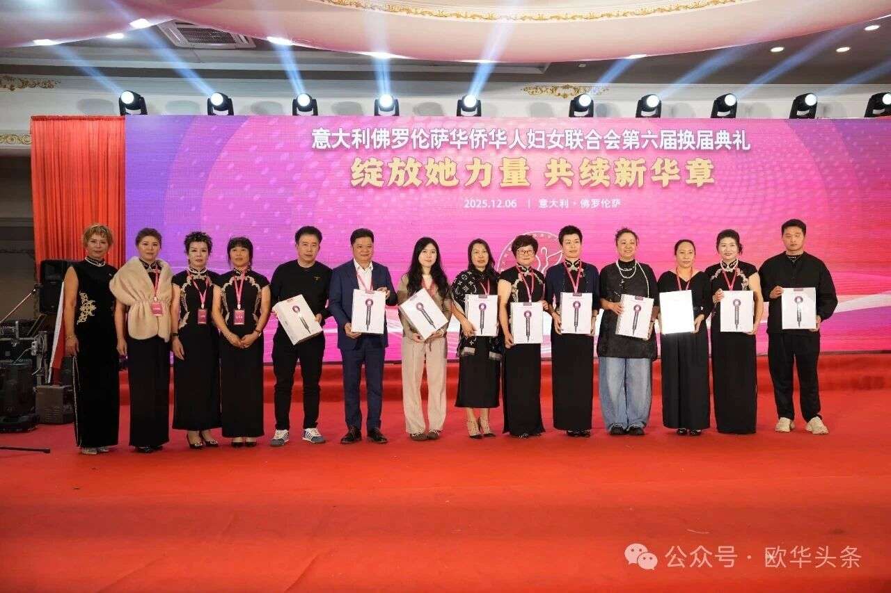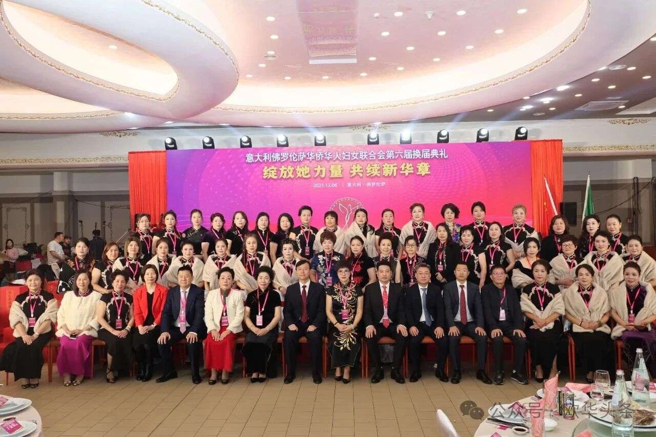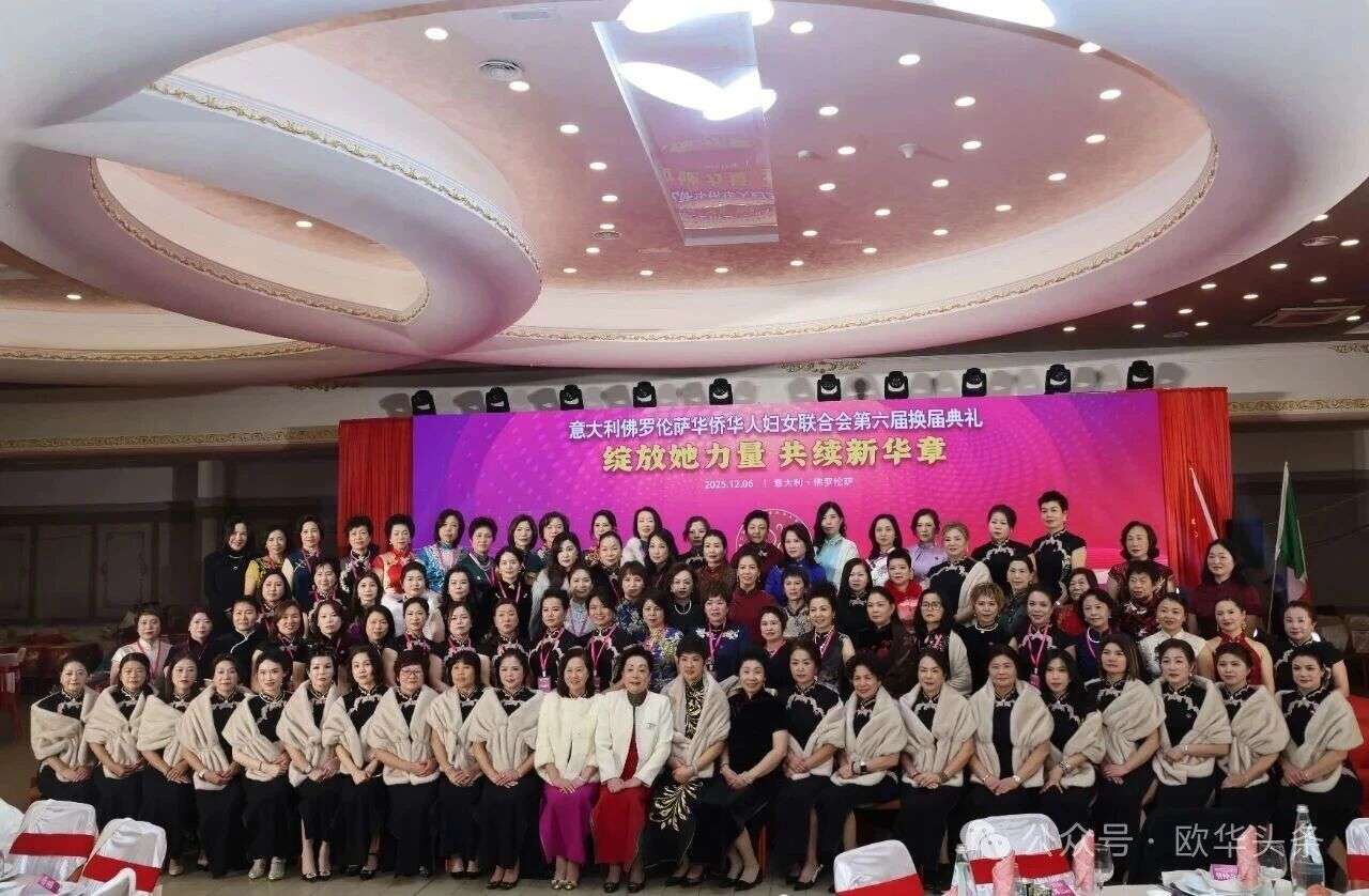 (陈静)2025年12月6日,意大利佛罗伦萨华侨华人妇女联合会第六届换届庆典大会在普拉托华侨饭店隆重举行。中国驻佛罗伦萨总领事馆管仲奇副总领事、周莅淼主任、徐静媛领事,Campi Bisenzio市长 Andrea Tagliaferri、Sesto Fiorentino市长 Claudia Pecchioli 及多位中意政要出席,来自欧洲与意大利各地的华侨华人和协会会员等400多名嘉宾齐聚一堂。当天,姐妹们提前数小时到场,统一着装旗袍,端庄而富有韵味;她们精神饱满、笑容灿烂,宛若一幅流动的东方画卷,为换届大会增添了浓厚的文化气息与节日氛围。