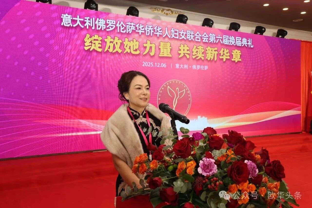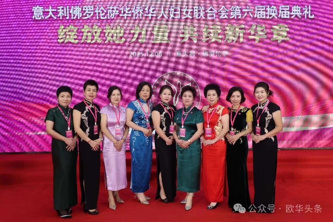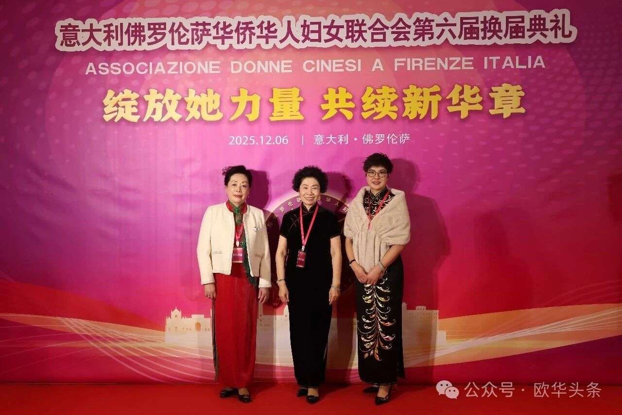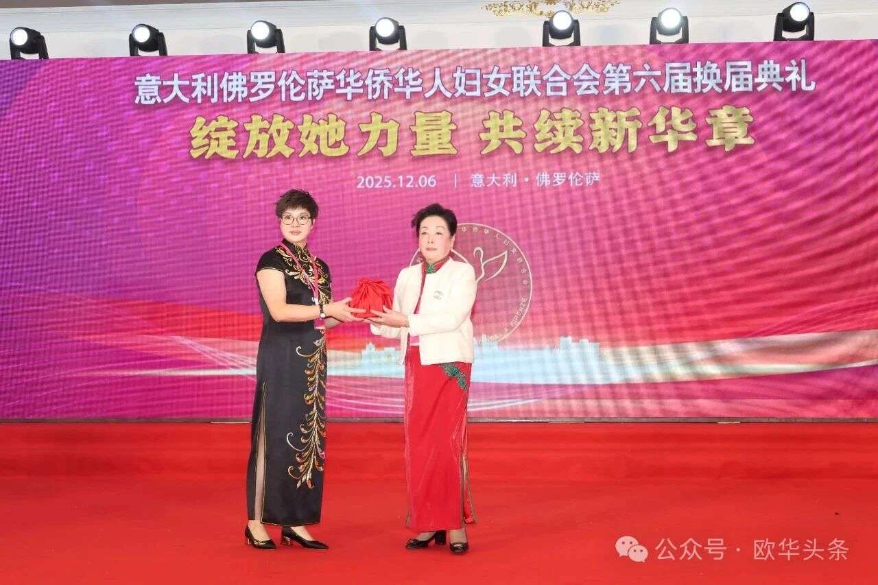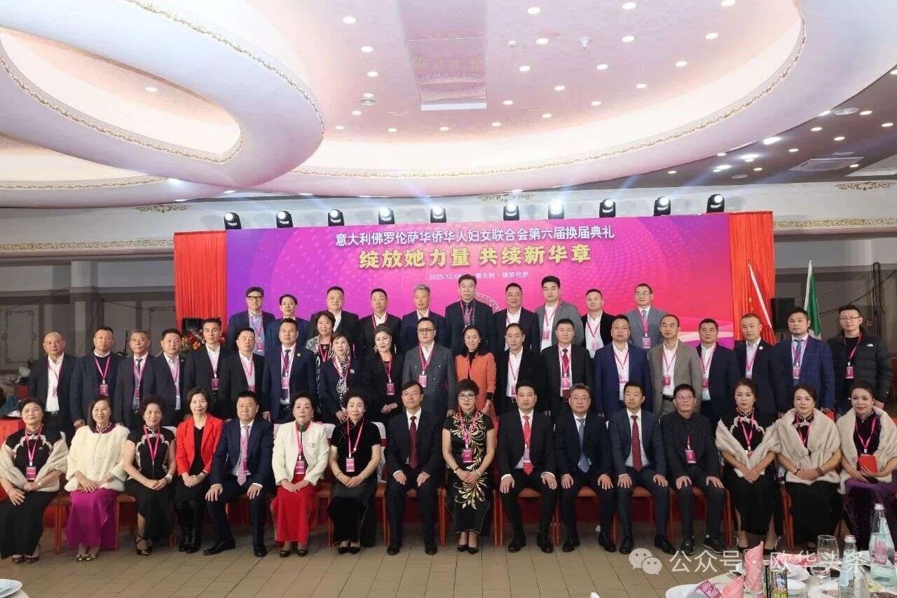(陈静)2025年12月6日,意大利佛罗伦萨华侨华人妇女联合会第六届换届庆典大会在普拉托华侨饭店隆重举行。中国驻佛罗伦萨总领事馆管仲奇副总领事、周莅淼主任、徐静媛领事,Campi Bisenzio市长 Andrea Tagliaferri、Sesto Fiorentino市长 Claudia Pecchioli 及多位中意政要出席,来自欧洲与意大利各地的华侨华人和协会会员等400多名嘉宾齐聚一堂。当天,姐妹们提前数小时到场,统一着装旗袍,端庄而富有韵味;她们精神饱满、笑容灿烂,宛若一幅流动的东方画卷,为换届大会增添了浓厚的文化气息与节日氛围。