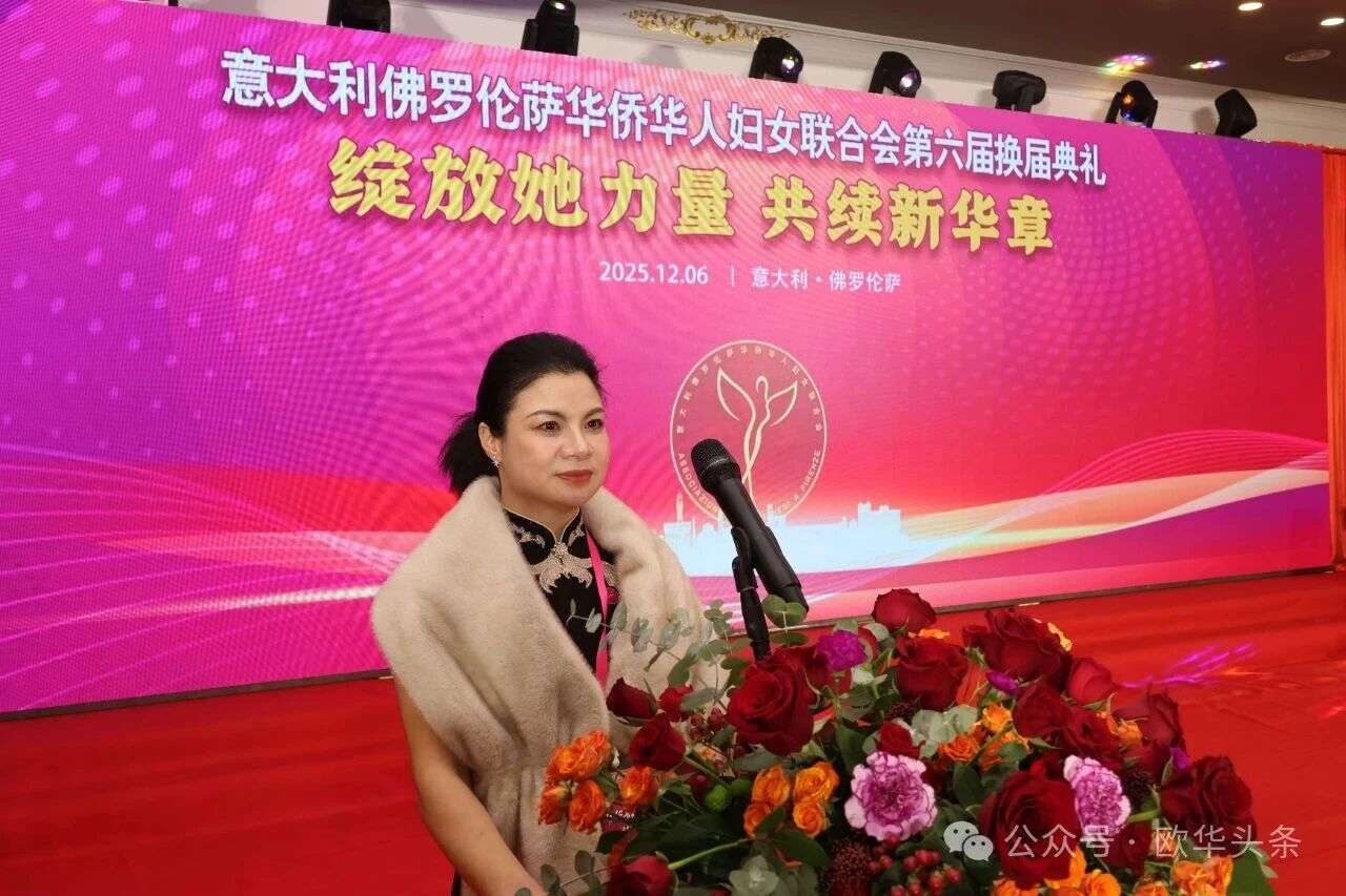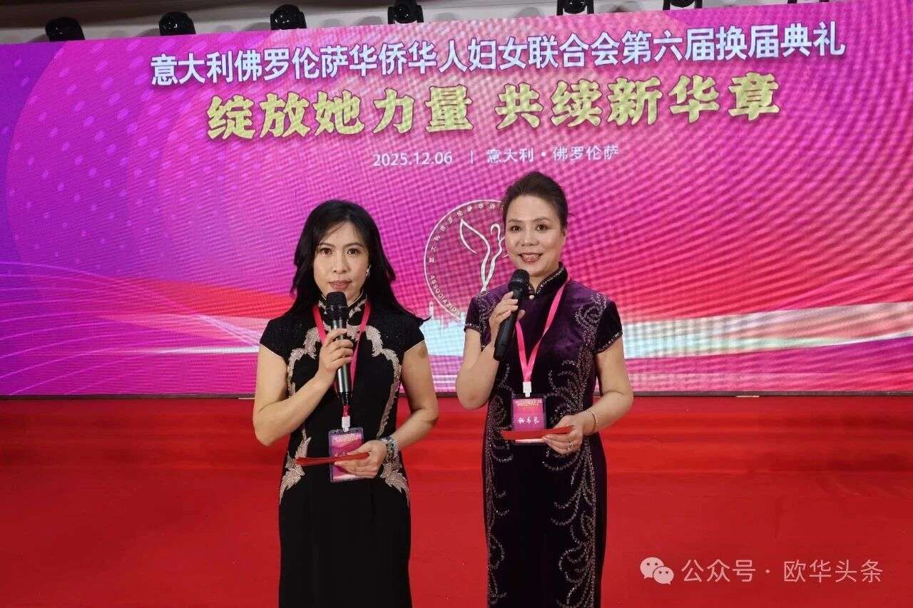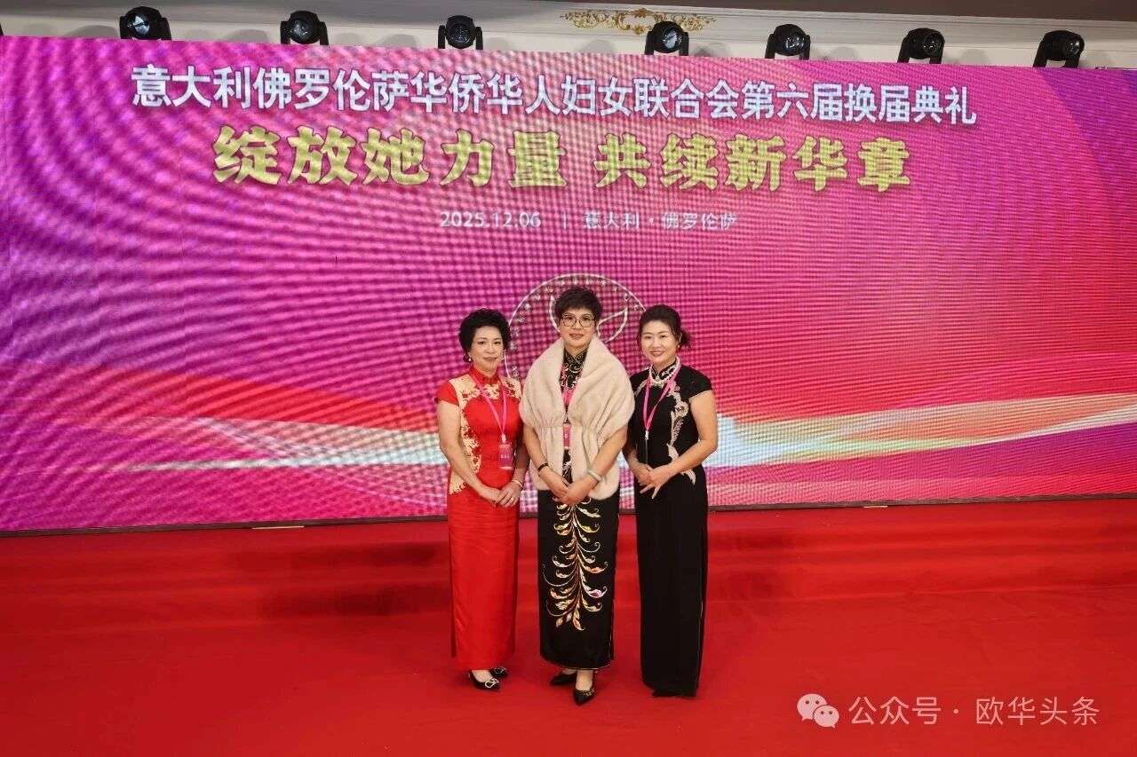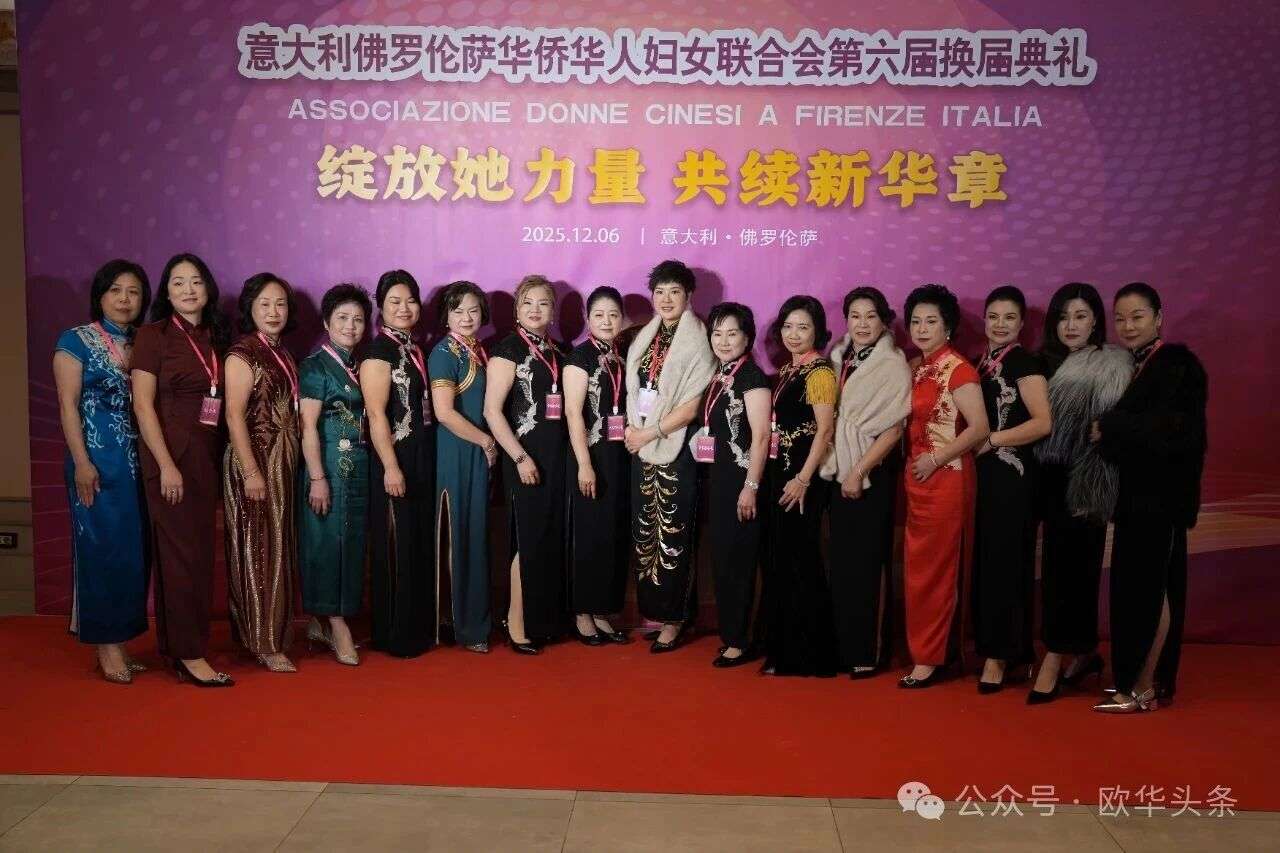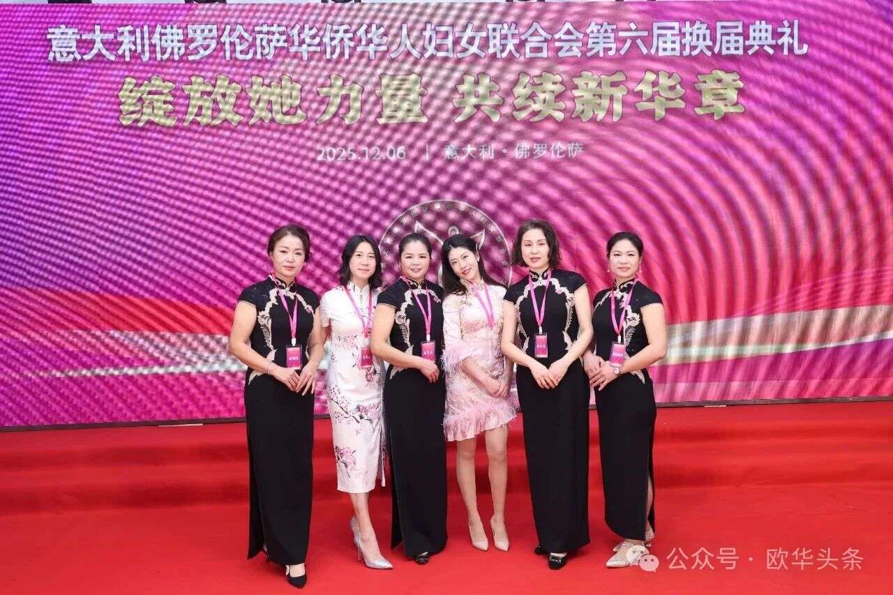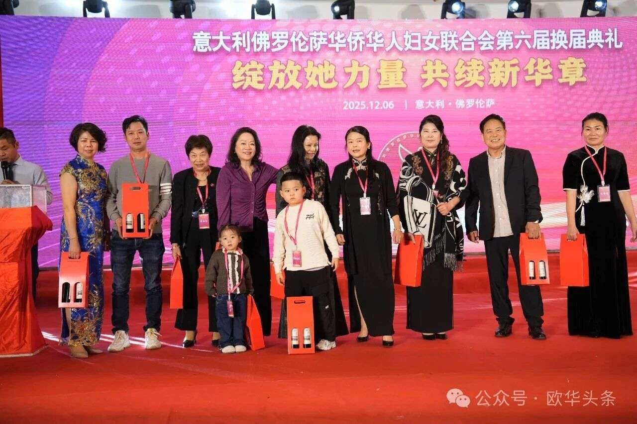 (陈静)2025年12月6日,意大利佛罗伦萨华侨华人妇女联合会第六届换届庆典大会在普拉托华侨饭店隆重举行。中国驻佛罗伦萨总领事馆管仲奇副总领事、周莅淼主任、徐静媛领事,Campi Bisenzio市长 Andrea Tagliaferri、Sesto Fiorentino市长 Claudia Pecchioli 及多位中意政要出席,来自欧洲与意大利各地的华侨华人和协会会员等400多名嘉宾齐聚一堂。当天,姐妹们提前数小时到场,统一着装旗袍,端庄而富有韵味;她们精神饱满、笑容灿烂,宛若一幅流动的东方画卷,为换届大会增添了浓厚的文化气息与节日氛围。