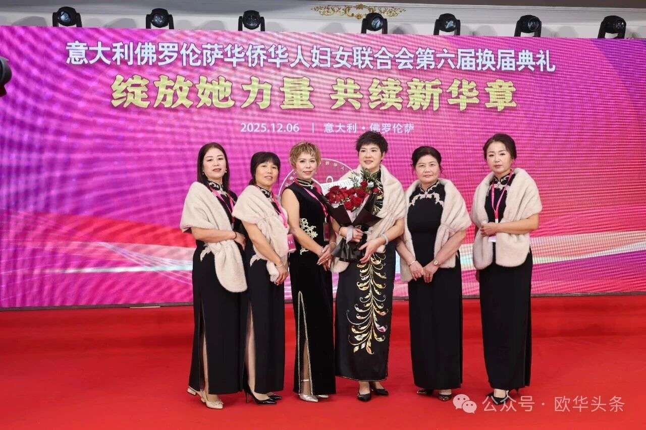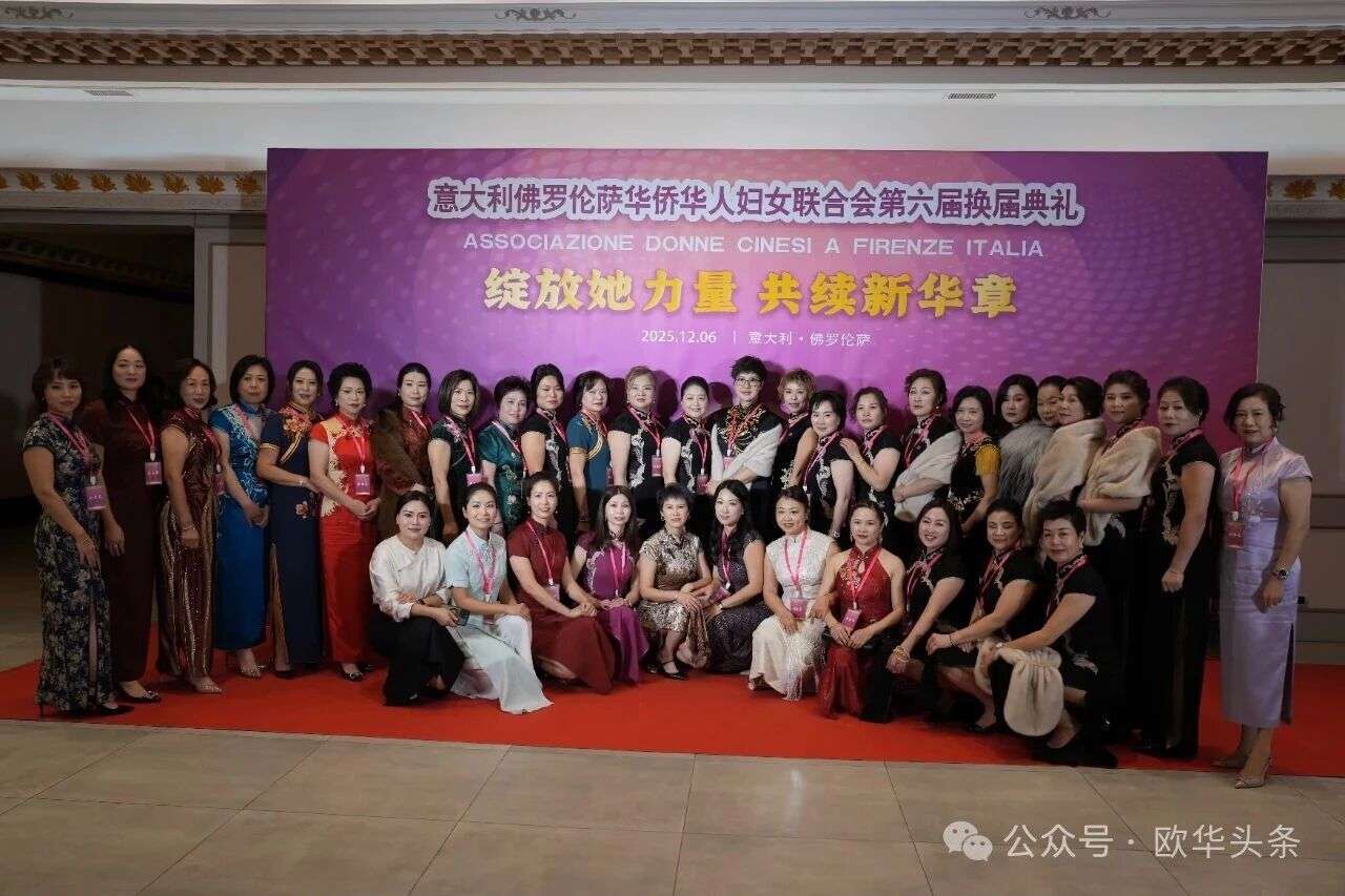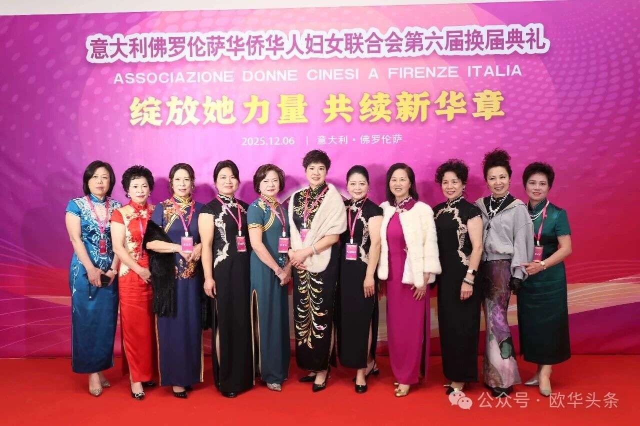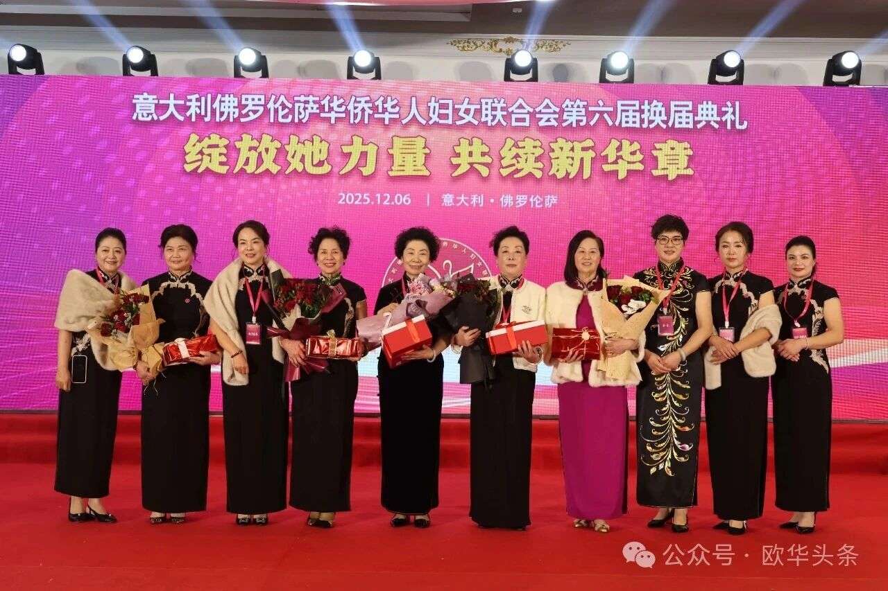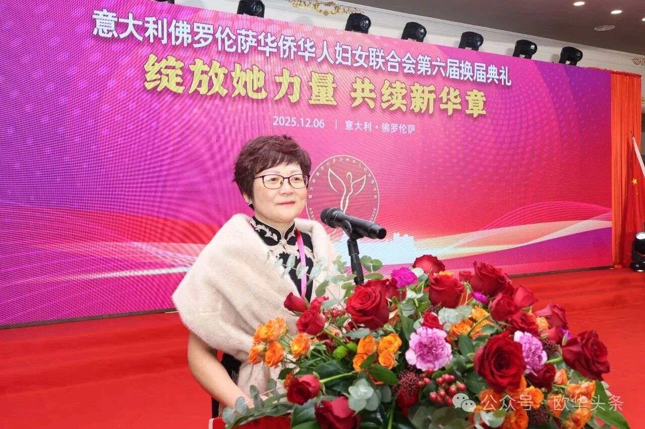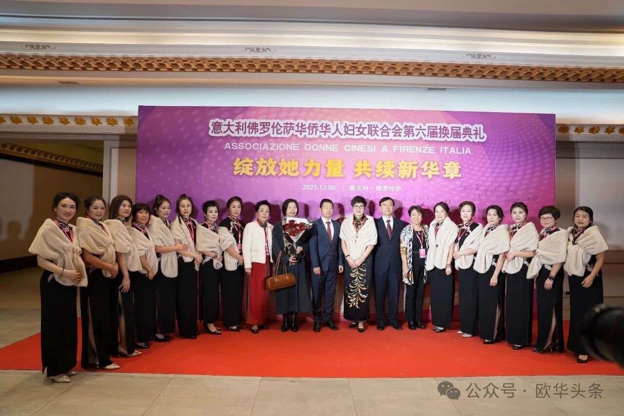 (陈静)2025年12月6日,意大利佛罗伦萨华侨华人妇女联合会第六届换届庆典大会在普拉托华侨饭店隆重举行。中国驻佛罗伦萨总领事馆管仲奇副总领事、周莅淼主任、徐静媛领事,Campi Bisenzio市长 Andrea Tagliaferri、Sesto Fiorentino市长 Claudia Pecchioli 及多位中意政要出席,来自欧洲与意大利各地的华侨华人和协会会员等400多名嘉宾齐聚一堂。当天,姐妹们提前数小时到场,统一着装旗袍,端庄而富有韵味;她们精神饱满、笑容灿烂,宛若一幅流动的东方画卷,为换届大会增添了浓厚的文化气息与节日氛围。
