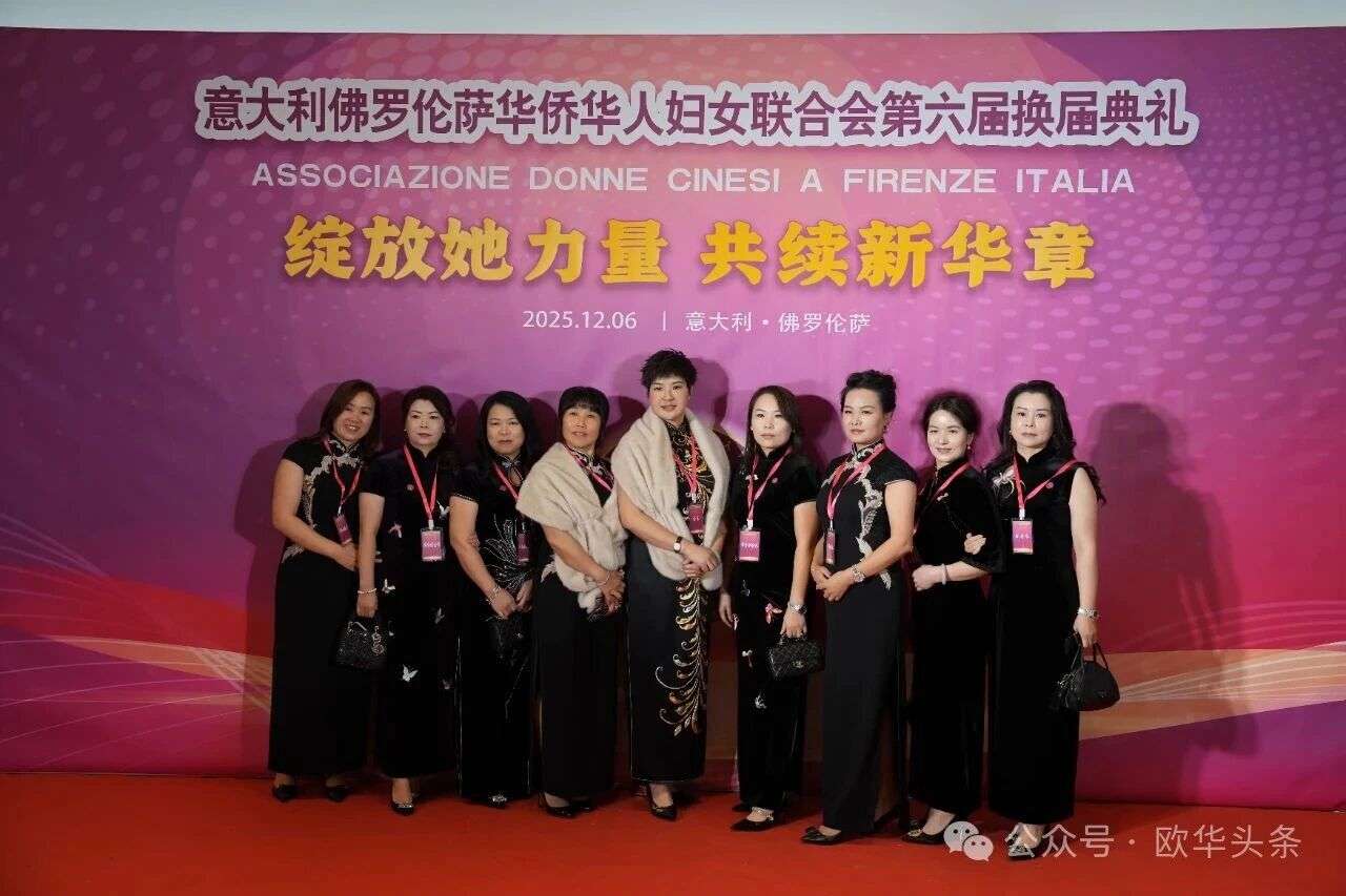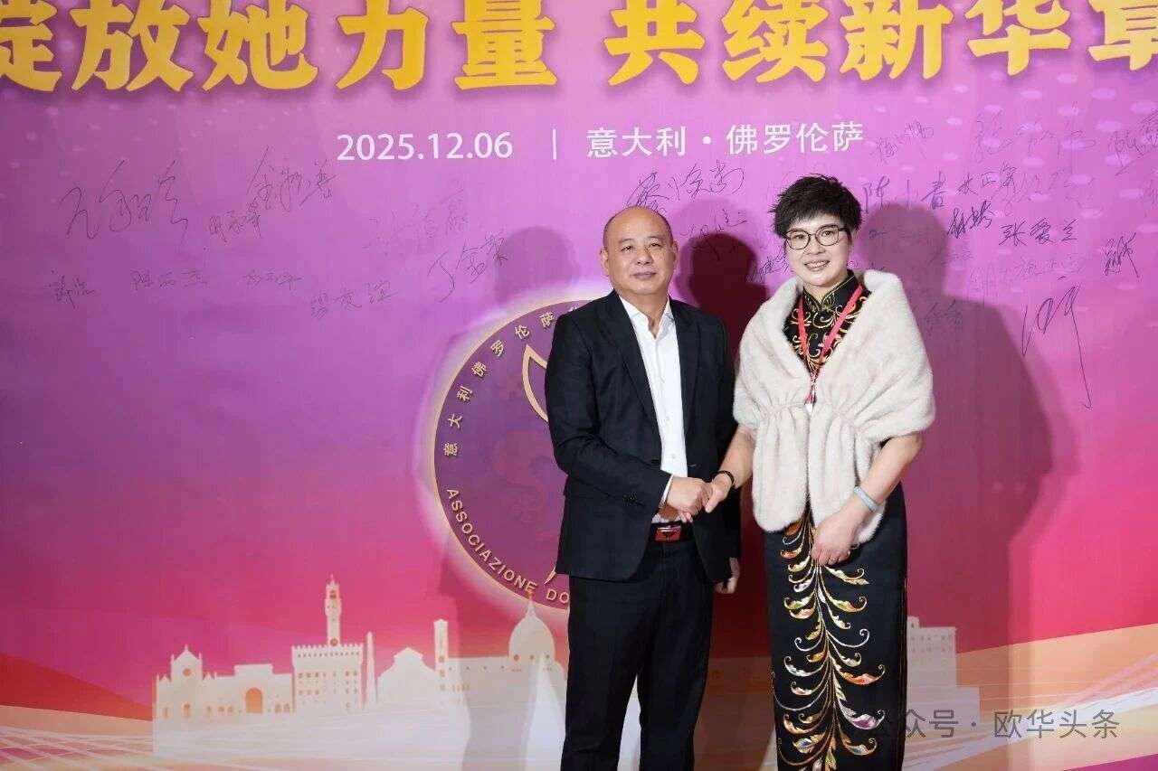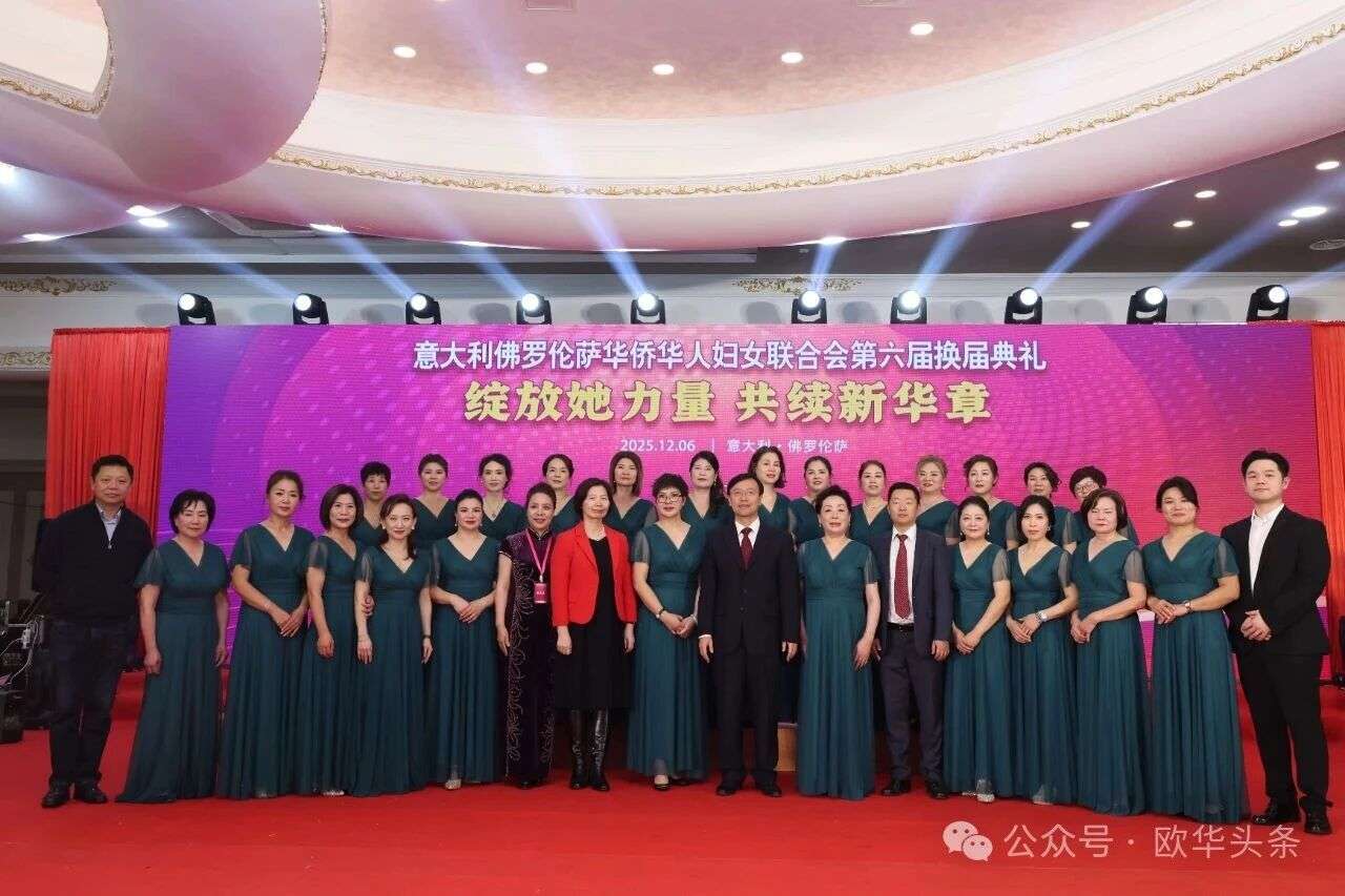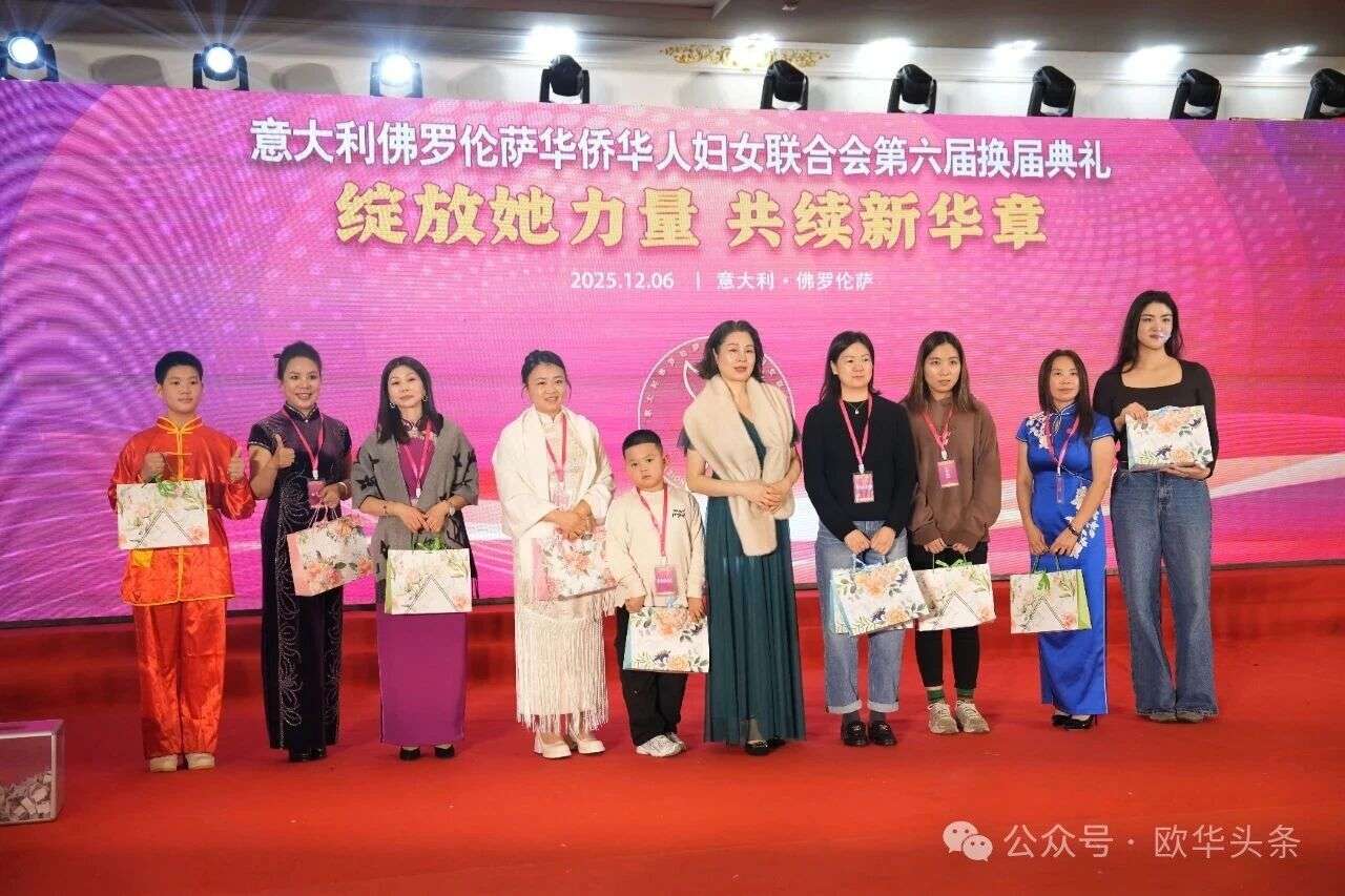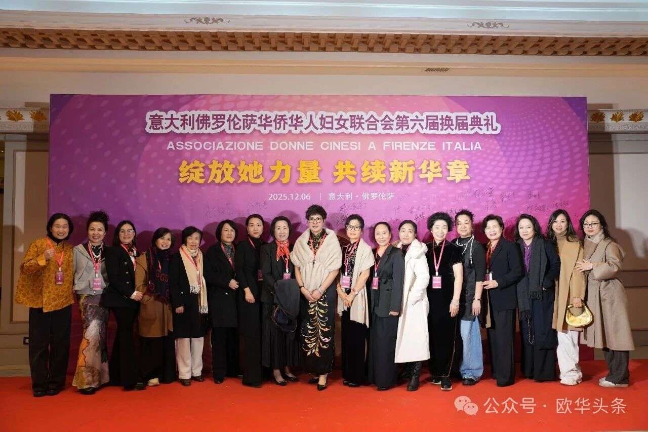 (陈静)2025年12月6日,意大利佛罗伦萨华侨华人妇女联合会第六届换届庆典大会在普拉托华侨饭店隆重举行。中国驻佛罗伦萨总领事馆管仲奇副总领事、周莅淼主任、徐静媛领事,Campi Bisenzio市长 Andrea Tagliaferri、Sesto Fiorentino市长 Claudia Pecchioli 及多位中意政要出席,来自欧洲与意大利各地的华侨华人和协会会员等400多名嘉宾齐聚一堂。当天,姐妹们提前数小时到场,统一着装旗袍,端庄而富有韵味;她们精神饱满、笑容灿烂,宛若一幅流动的东方画卷,为换届大会增添了浓厚的文化气息与节日氛围。