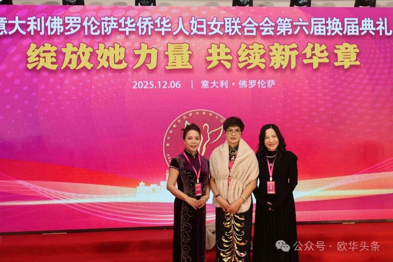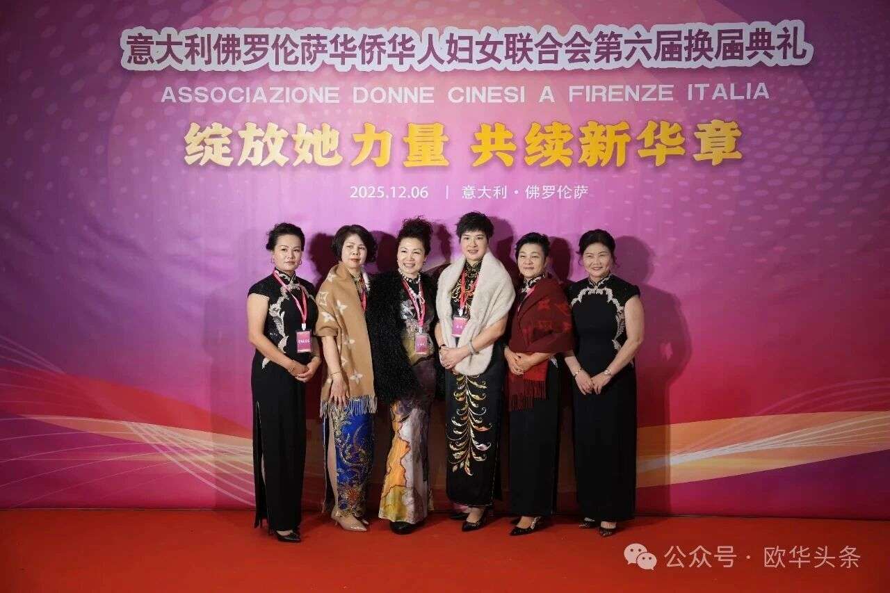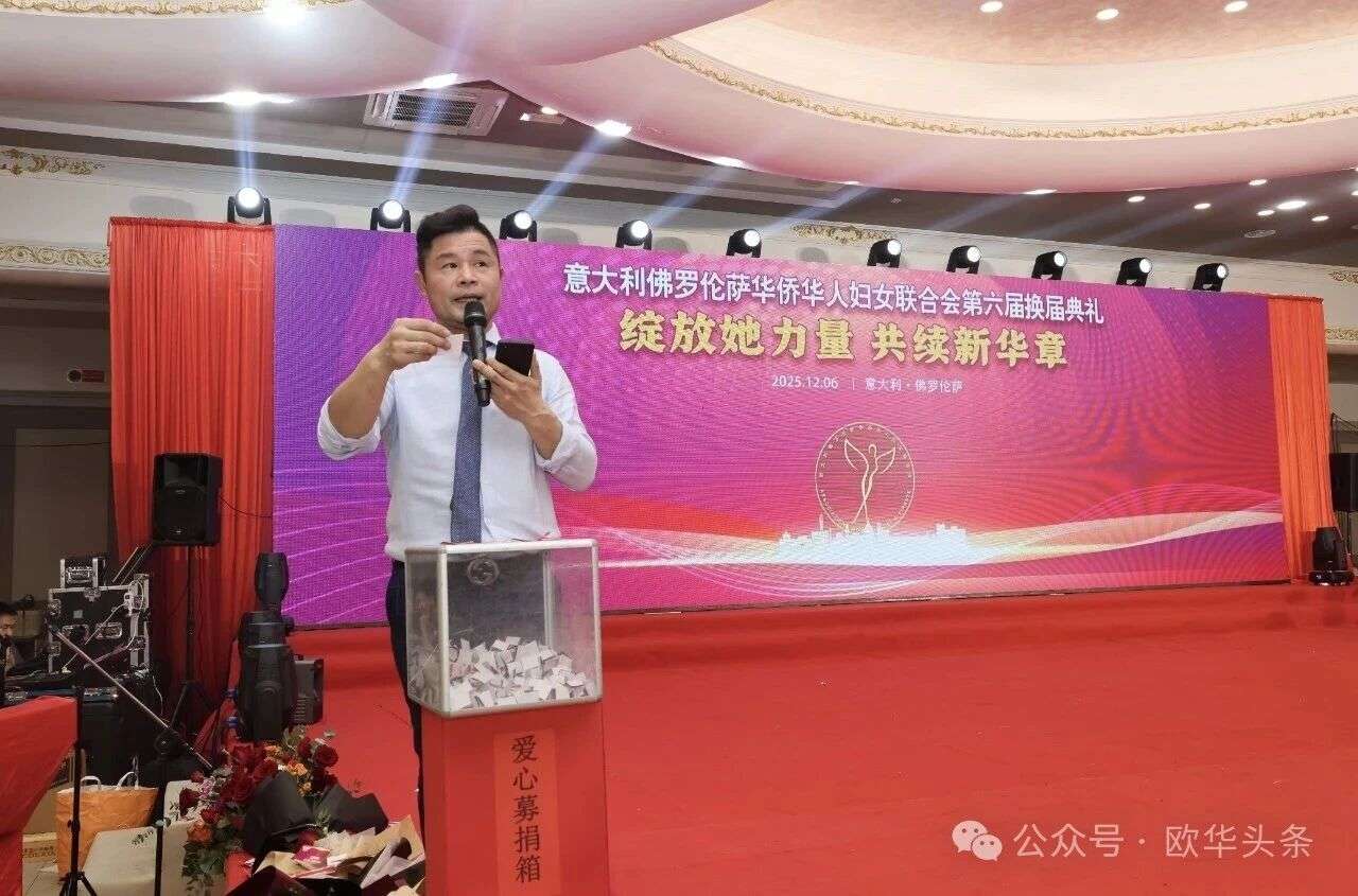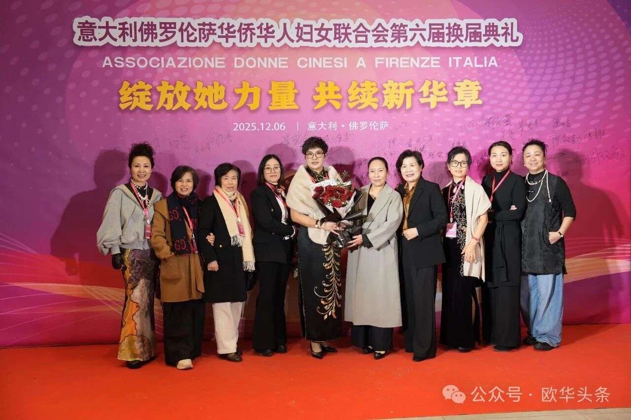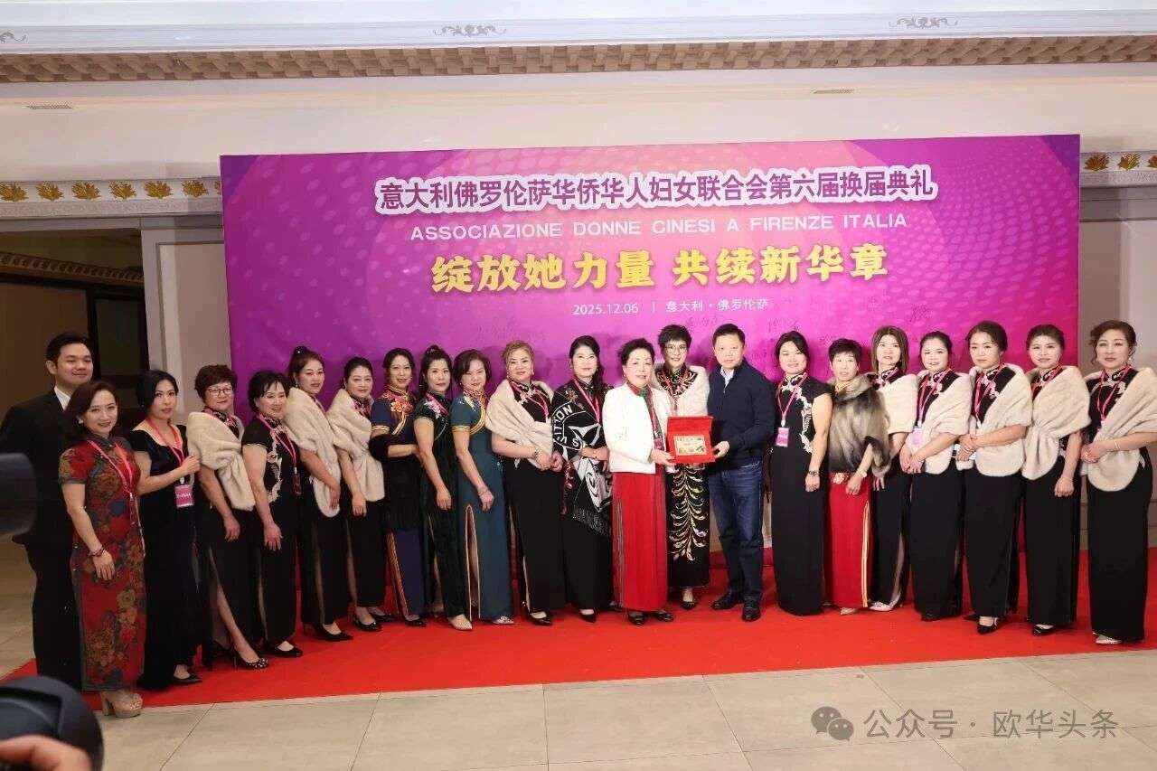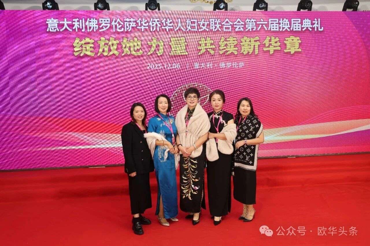 (陈静)2025年12月6日,意大利佛罗伦萨华侨华人妇女联合会第六届换届庆典大会在普拉托华侨饭店隆重举行。中国驻佛罗伦萨总领事馆管仲奇副总领事、周莅淼主任、徐静媛领事,Campi Bisenzio市长 Andrea Tagliaferri、Sesto Fiorentino市长 Claudia Pecchioli 及多位中意政要出席,来自欧洲与意大利各地的华侨华人和协会会员等400多名嘉宾齐聚一堂。当天,姐妹们提前数小时到场,统一着装旗袍,端庄而富有韵味;她们精神饱满、笑容灿烂,宛若一幅流动的东方画卷,为换届大会增添了浓厚的文化气息与节日氛围。