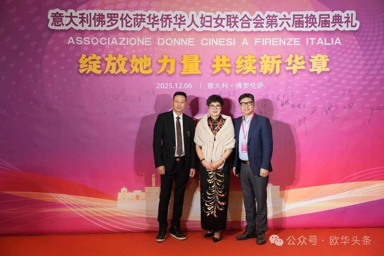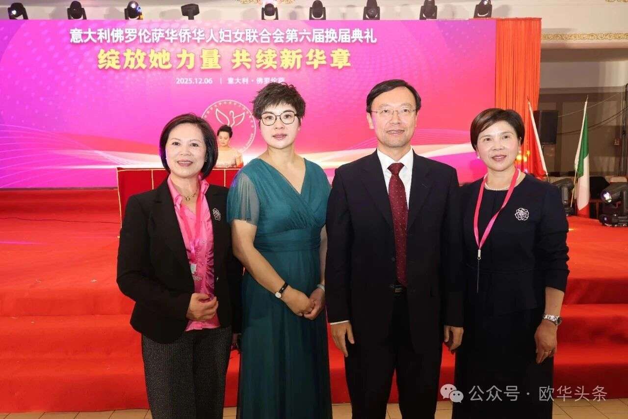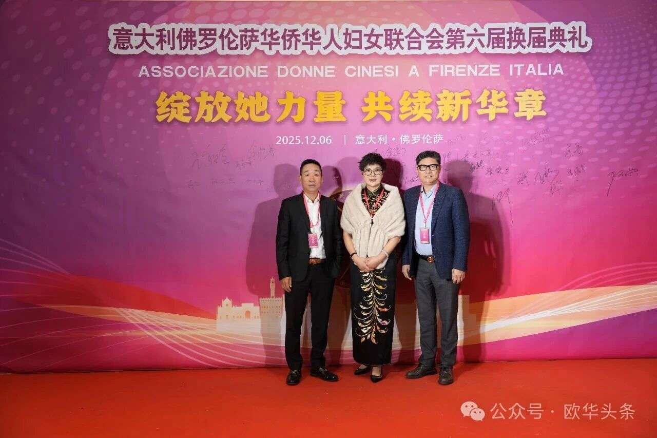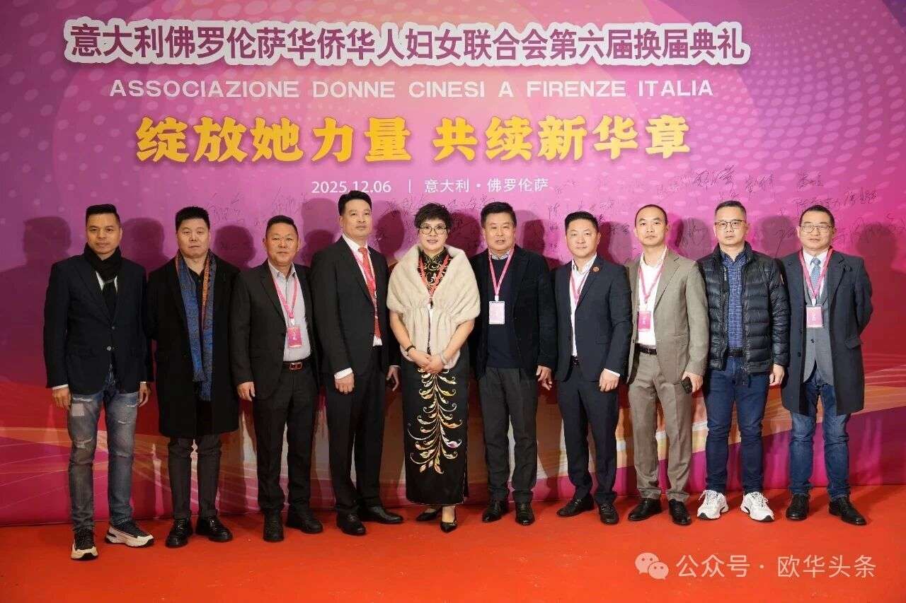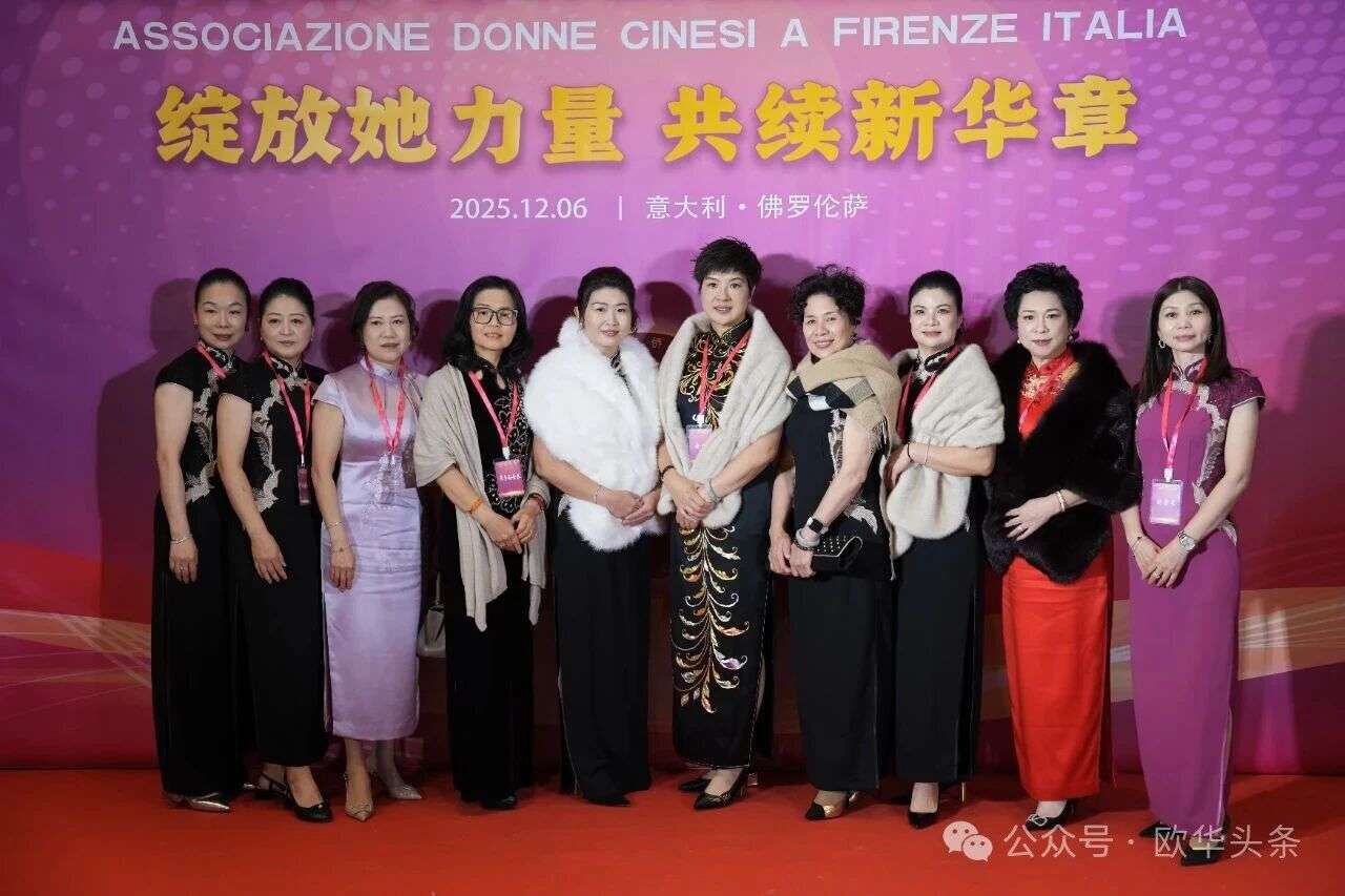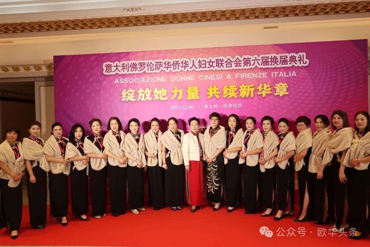 (陈静)2025年12月6日,意大利佛罗伦萨华侨华人妇女联合会第六届换届庆典大会在普拉托华侨饭店隆重举行。中国驻佛罗伦萨总领事馆管仲奇副总领事、周莅淼主任、徐静媛领事,Campi Bisenzio市长 Andrea Tagliaferri、Sesto Fiorentino市长 Claudia Pecchioli 及多位中意政要出席,来自欧洲与意大利各地的华侨华人和协会会员等400多名嘉宾齐聚一堂。当天,姐妹们提前数小时到场,统一着装旗袍,端庄而富有韵味;她们精神饱满、笑容灿烂,宛若一幅流动的东方画卷,为换届大会增添了浓厚的文化气息与节日氛围。
