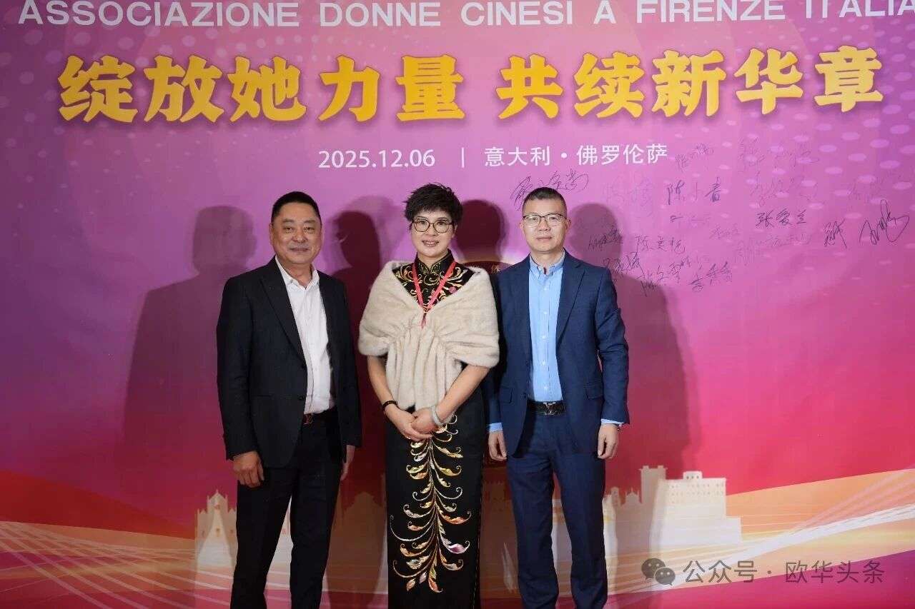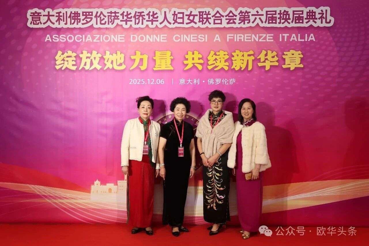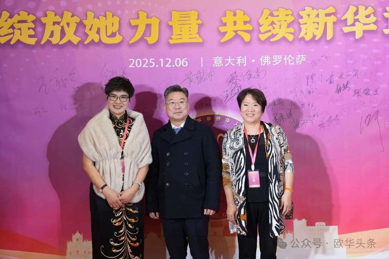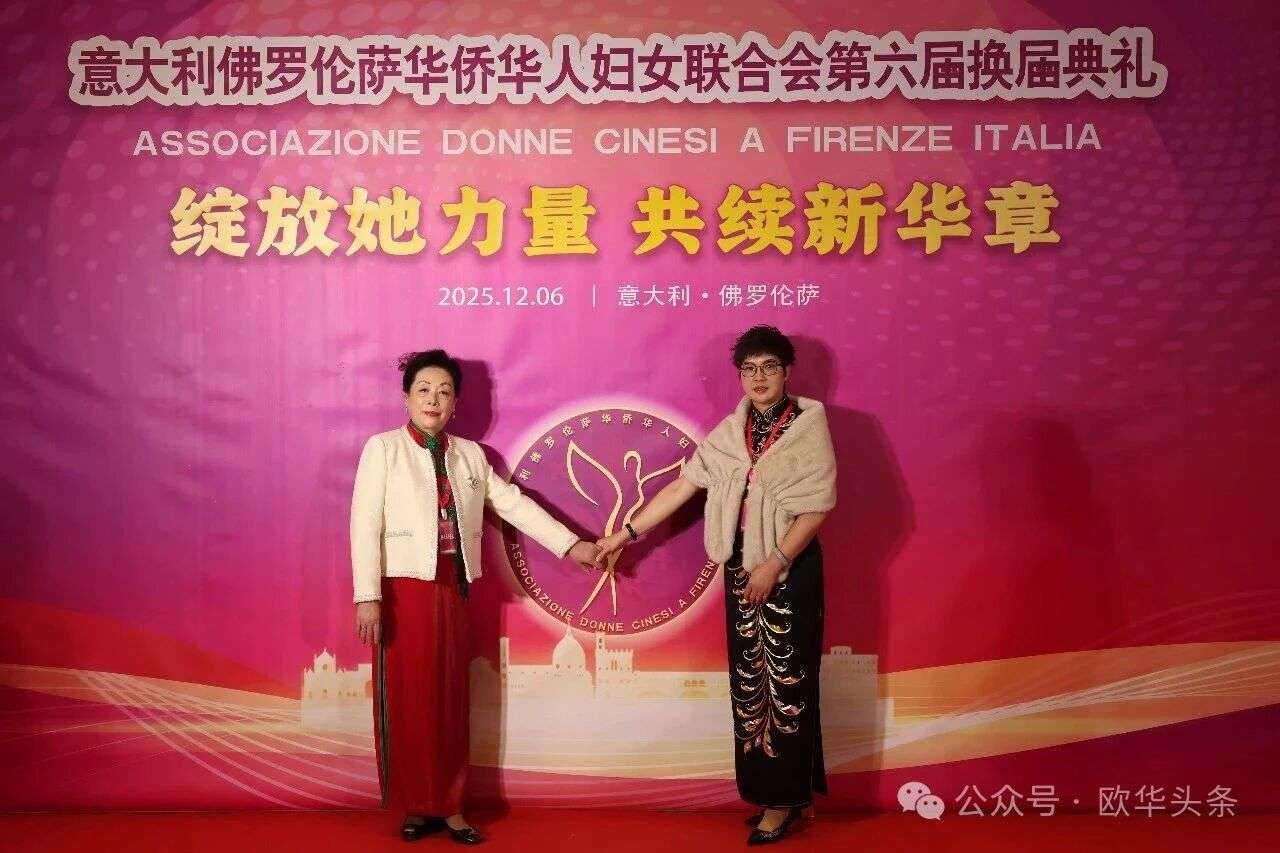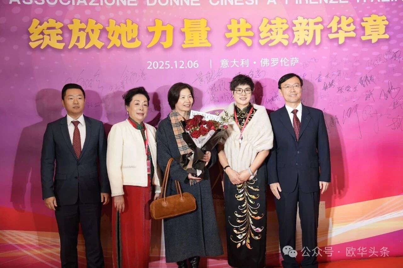 (陈静)2025年12月6日,意大利佛罗伦萨华侨华人妇女联合会第六届换届庆典大会在普拉托华侨饭店隆重举行。中国驻佛罗伦萨总领事馆管仲奇副总领事、周莅淼主任、徐静媛领事,Campi Bisenzio市长 Andrea Tagliaferri、Sesto Fiorentino市长 Claudia Pecchioli 及多位中意政要出席,来自欧洲与意大利各地的华侨华人和协会会员等400多名嘉宾齐聚一堂。当天,姐妹们提前数小时到场,统一着装旗袍,端庄而富有韵味;她们精神饱满、笑容灿烂,宛若一幅流动的东方画卷,为换届大会增添了浓厚的文化气息与节日氛围。