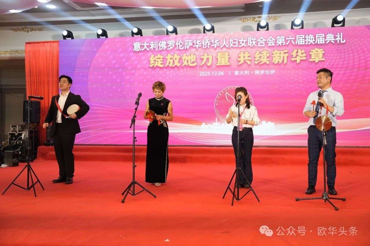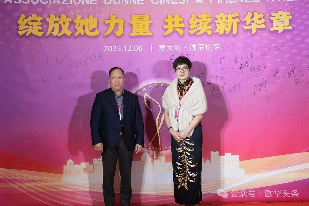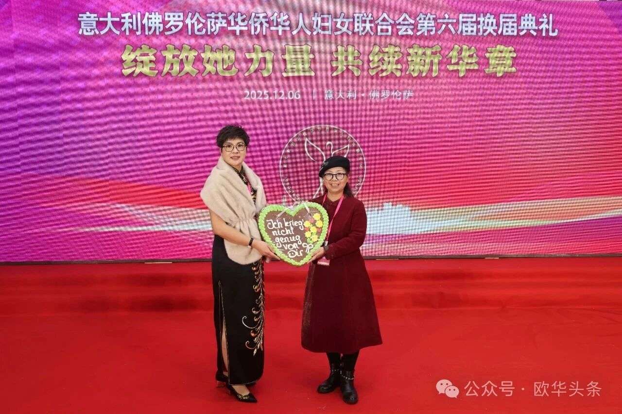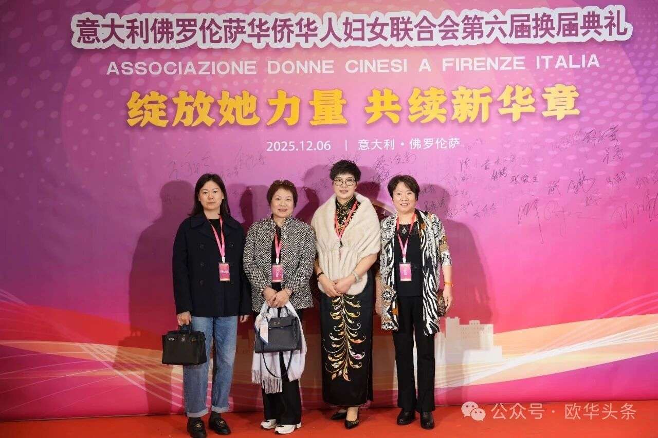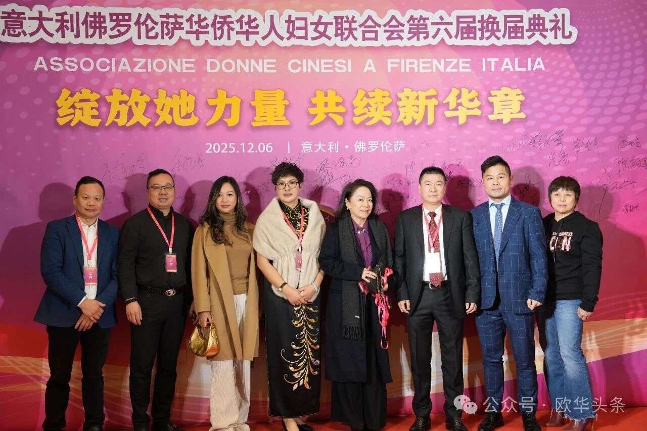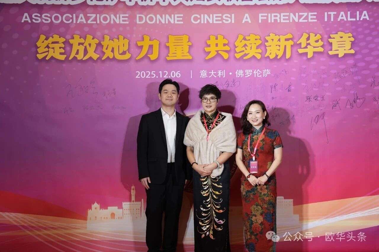 (陈静)2025年12月6日,意大利佛罗伦萨华侨华人妇女联合会第六届换届庆典大会在普拉托华侨饭店隆重举行。中国驻佛罗伦萨总领事馆管仲奇副总领事、周莅淼主任、徐静媛领事,Campi Bisenzio市长 Andrea Tagliaferri、Sesto Fiorentino市长 Claudia Pecchioli 及多位中意政要出席,来自欧洲与意大利各地的华侨华人和协会会员等400多名嘉宾齐聚一堂。当天,姐妹们提前数小时到场,统一着装旗袍,端庄而富有韵味;她们精神饱满、笑容灿烂,宛若一幅流动的东方画卷,为换届大会增添了浓厚的文化气息与节日氛围。