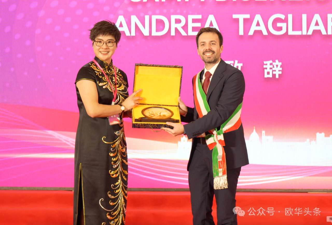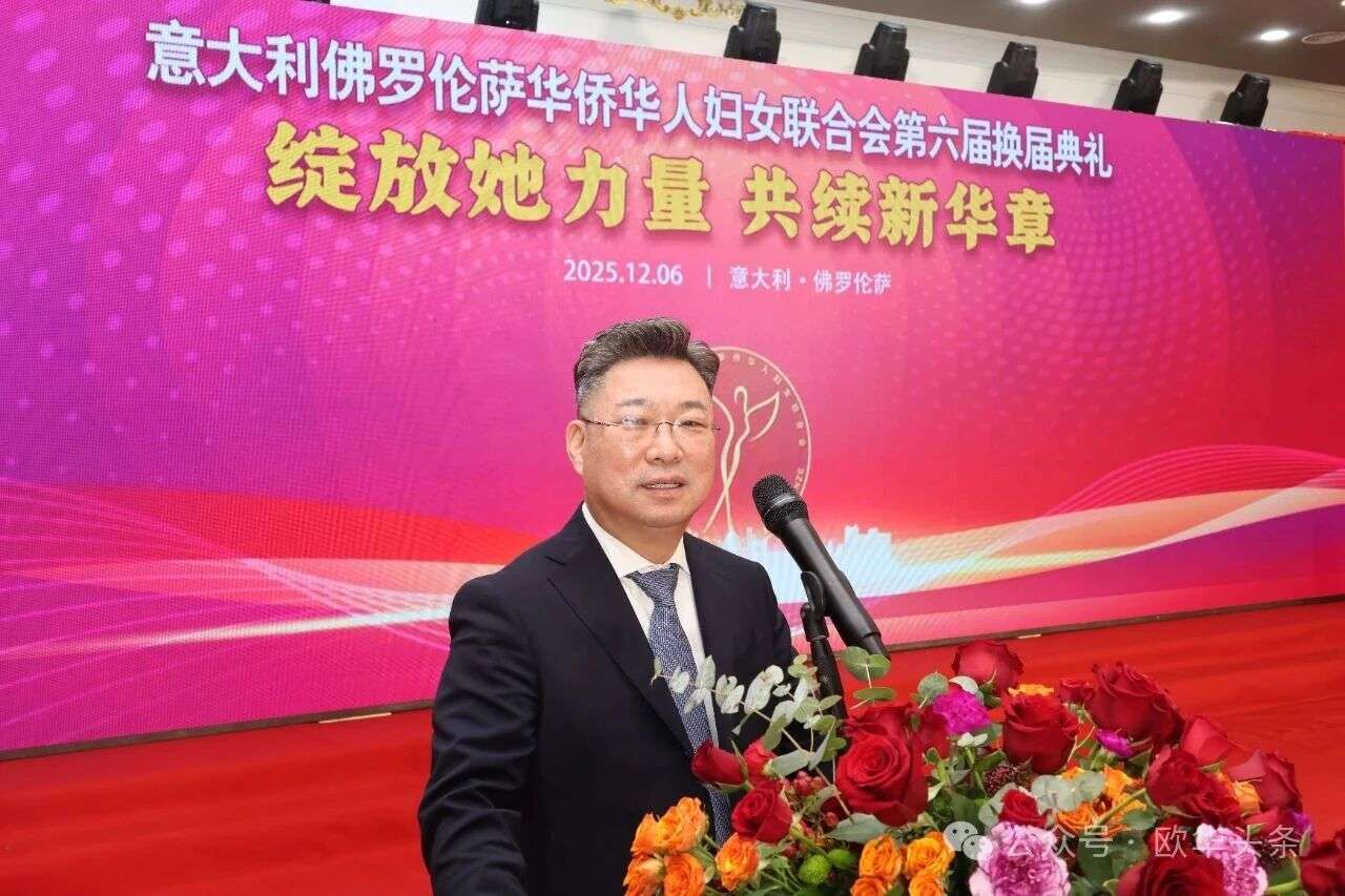 Andrea Tagliaferri 市长在致辞中表示,非常高兴受邀出席佛罗伦萨华侨华人妇女联合会第六届换届庆典。他强调,华人社区长期以来为当地社会发展作出了重要贡献,而妇女联合会更以其团结、奉献与组织能力,为推动跨文化交流、参与公益事业、促进社区和谐发挥了不可替代的作用。