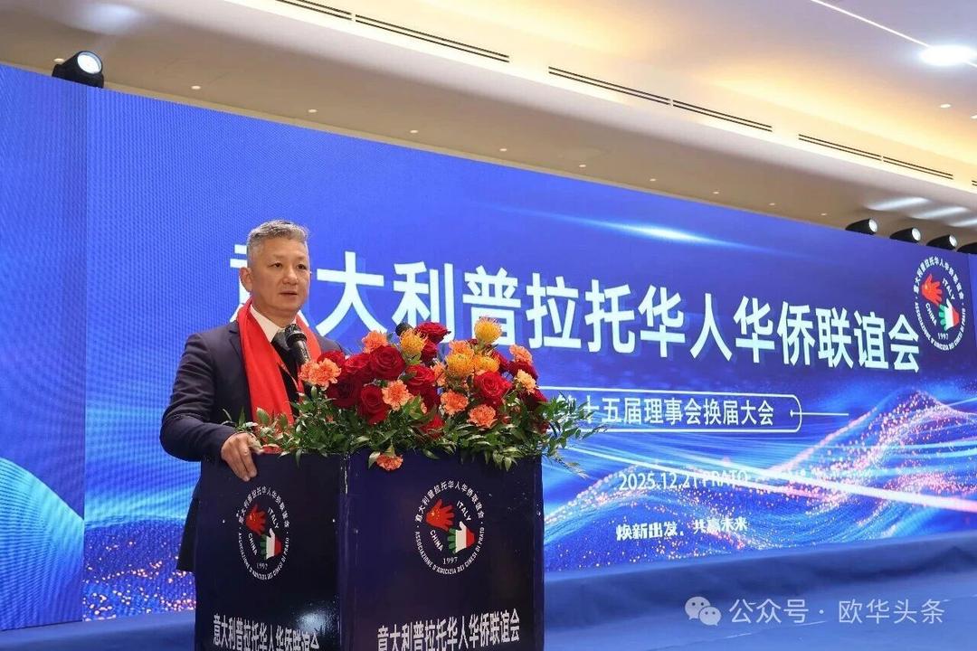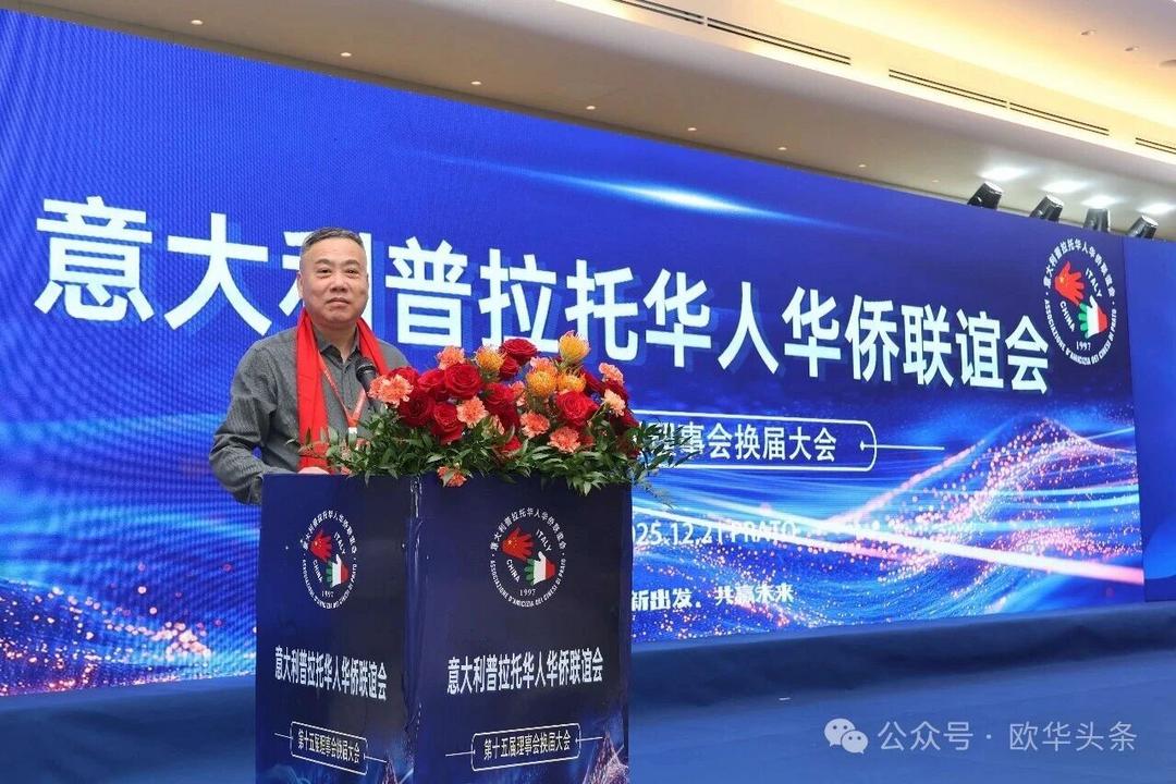 程鹏会长在讲话中高度评价了普拉托华人华侨联谊会在凝聚侨心、传承文化、促进中意友好方面作出的积极贡献。他表示,旅意各地侨团应持续加强沟通协作,深化资源共享,在更高层次、更广领域推动侨界合作,共同书写旅意华人华侨团结奋进的新篇章。