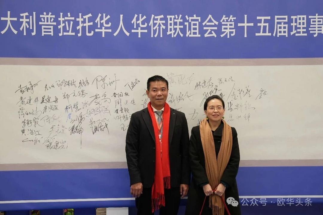 在回顾普拉托华人社区发展现状时,陈洲指出,普拉托已从传统纺织重镇发展成为欧洲新华侨聚集的重要城市。面对新时代背景,他强调华人社区不仅是创业发展的平台,更是共同生活的家园,应以主人翁姿态尊重当地规则、维护社会秩序,积极参与城市治理与发展,让“华人力量”成为普拉托繁荣与文明的重要组成部分。新一届理事会将坚持以服务侨胞为根本,切实回应侨胞关切,重点关注医疗健康、信息沟通与资源对接等民生问题,帮助侨胞更好地了解和融入当地社会,提升整体生活质量。同时,针对日益专业化、规范化的市场环境,联谊会将加强在财务、税务、法律及安全生产等方面的宣介和辅导,推动华人经济由规模扩张向高质量、可持续发展转型。