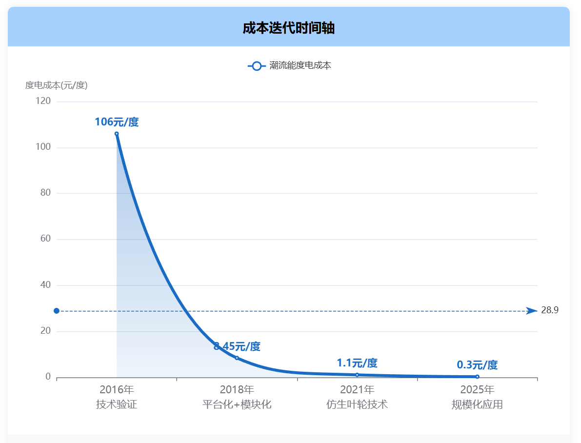 2016年8月,林东团队研发的LHD首期1兆瓦机组在舟山下海并网,填补我国潮流能规模化并网发电空白,这一时刻被载入《中国能源发展报告》。但喜悦很快被现实泼了冷水:初代机组度电成本高达106元,是当时火电成本的20倍,“技术能成,但市场不接受”。