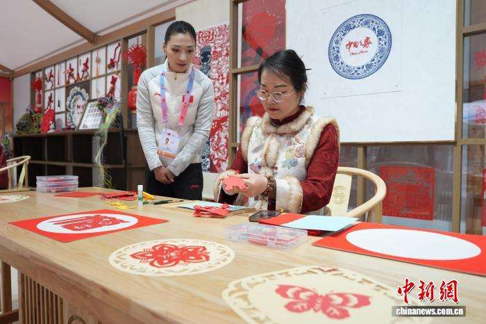 当地时间2月4日,适逢“立春”,米兰冬奥会“中国之家”在意大利米兰克莱里西庄园正式敞开大门。图为非遗传承人在非遗体验区展示剪纸。 中新社记者蒋启明摄