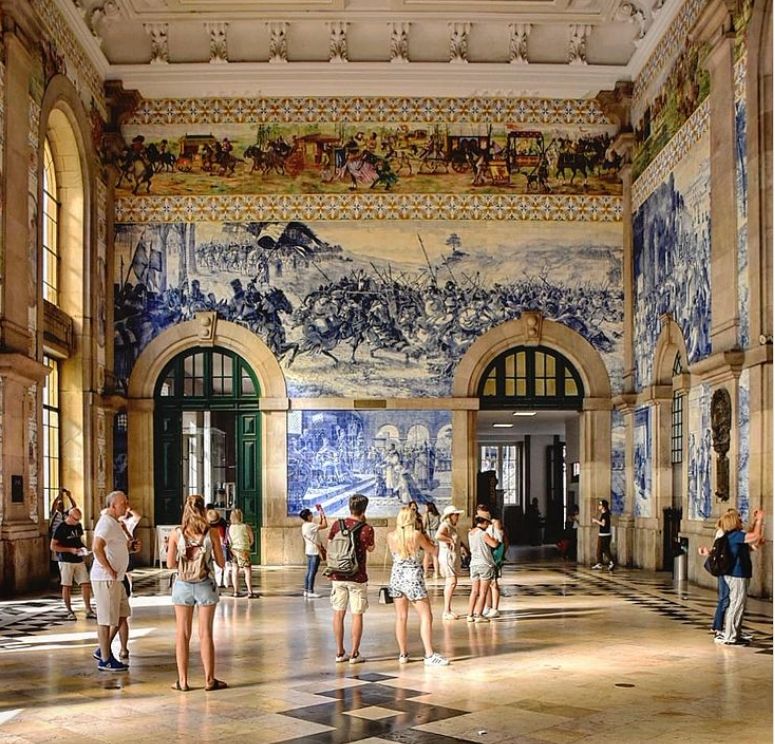布鲁西斯塔火车站(Estação de São Bento)是波尔图热门的网红打卡地。该火车站建于20世纪初,以其壮观的蓝色瓷砖墙壁而闻名。墙壁上的蓝色瓷砖描绘了葡萄牙的历史和传统场景,讲述了葡萄牙的重大历史事件、文化习俗和日常生活。这些瓷砖画由著名的瓷砖艺术家Jorge Colaço设计,共使用了超过两万片手工绘制的瓷砖。无数游客来到这里,不仅为了搭乘火车,更是为了欣赏这座充满艺术和历史氛围的建筑。车站的大厅也成为了人们拍照打卡的热门地点。
