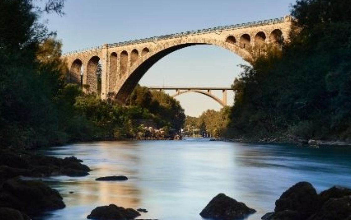这座工程杰作建于上世纪初,是著名的Transalpina铁路线的一部分,至今仍在使用。它作为背景衬托着另外两座更现代的桥梁:一座是公路桥,夏天可以体验蹦极的刺激;另一座是现代化的自行车和行人天桥,连接边界两侧现有的道路。城市及其周边地区,现代主义建筑俯瞰着作为市政厅广场的大草坪,拥有丰富多样的自然和文化遗产,包括Kromberk和Rihemberk城堡、Sveta Gora(圣山)大教堂、Sabotino的和平公园、Panovec森林以及其他许多自然和文化美景。