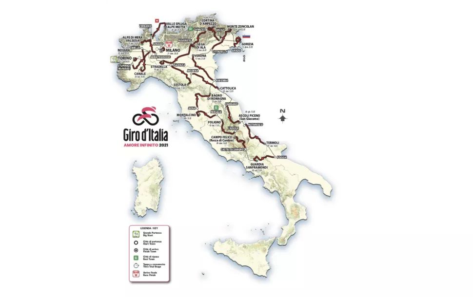 2021年环意赛路线图。(图片来源:公路自行车网站cyclingnews截图)