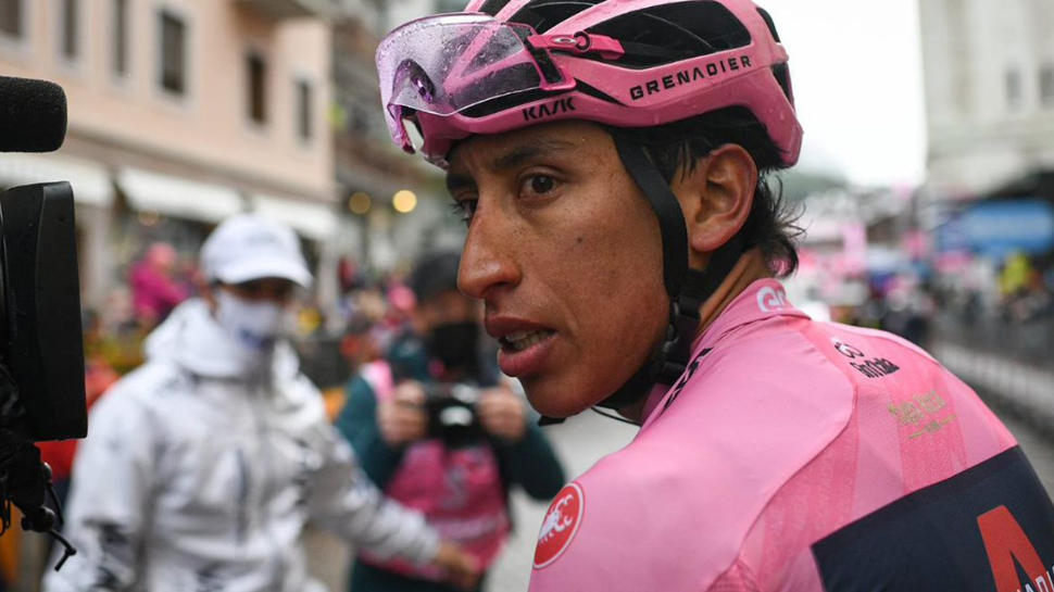 粉色是环意自行车赛的象征。图为第九赛段的胜者,来自哥伦比亚的车手伊根·贝纳尔(Egan Bernal)身着粉衫。(图片来源:2021年环意赛官网截图)